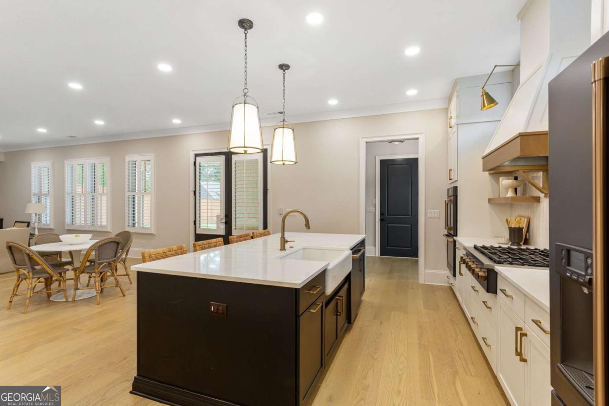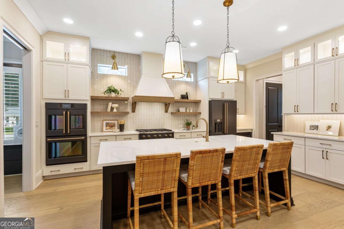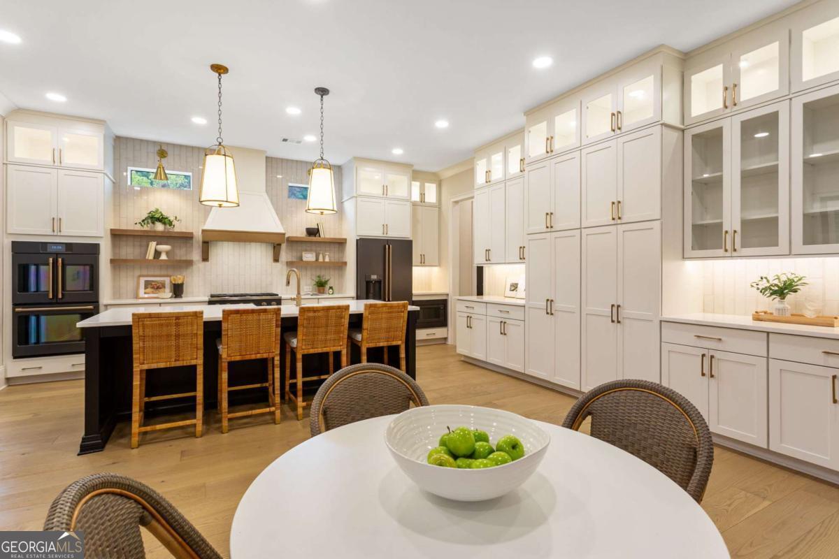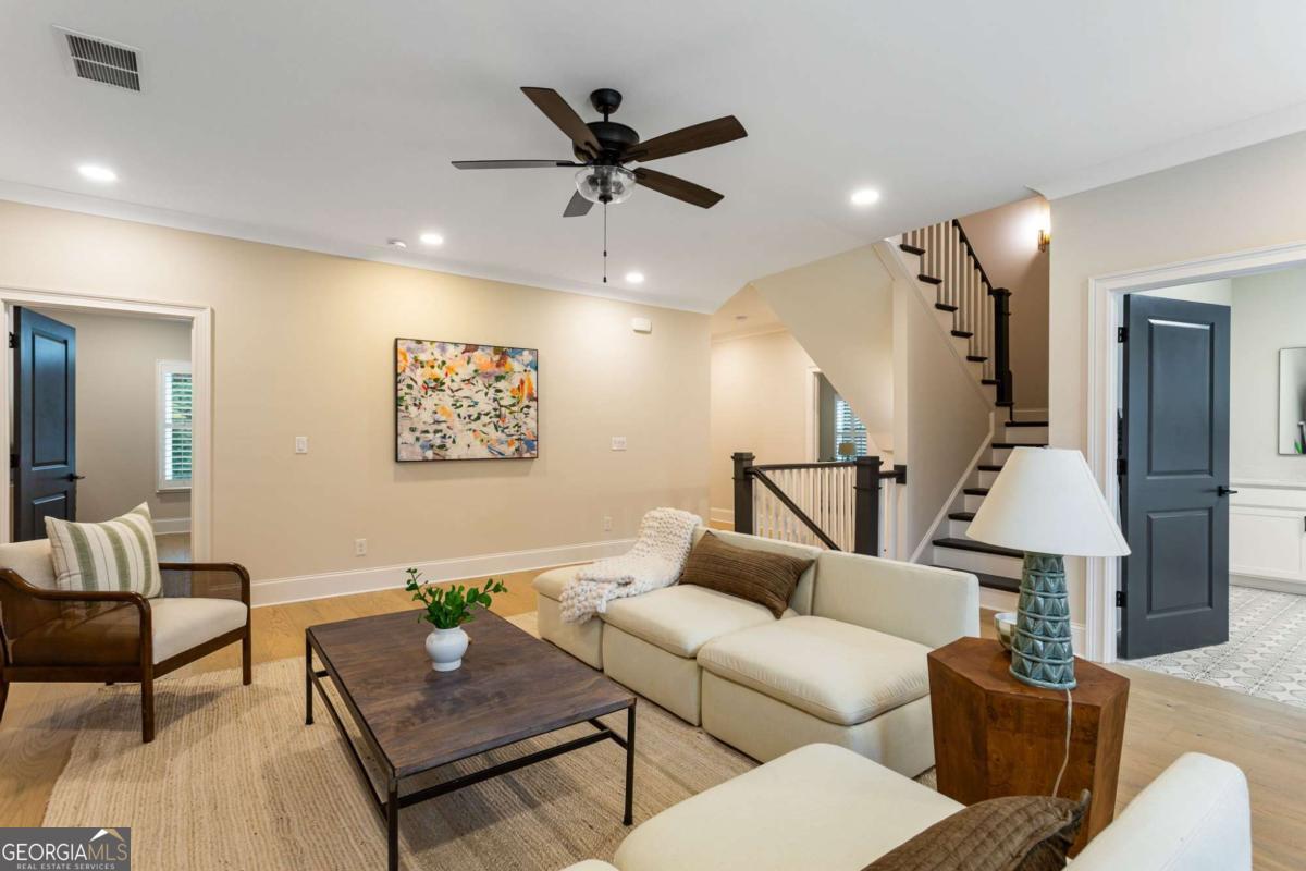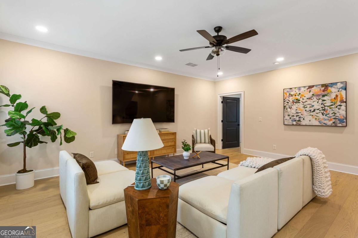Welcome to 1460 Memory Lane SE, a dazzling executive residence in the heart of Smyrna's coveted Forest Hills community. With 5 bedrooms, 4.5 baths, and over 4,450 sq ft of elegant living space, this is a home that balances grand scale with thoughtful details. Set on a manicured corner lot with a fenced backyard and covered patio, this property is made for both entertaining and quiet enjoyment. Inside, you'll find exquisite finishes at every turn: crown molding, coffered ceilings, wainscoting accents, gleaming hardwoods, upgraded lighting, and plantation shutters. On the main level: - A gracious home office perfect for remote work or study. - A formal dining room and elegant living room with fireplace and custom built-in cabinetry. - A gourmet kitchen boasting abundant cabinetry, double ovens, a central island with seating, and room for a coffee bar. - A downstairs suite perfect for in-law, teen, or guest quarters. - A mudroom connecting the home to a 3-car garage. Upstairs, a central loft / family room offers flexible space for play, media, or relaxation. The primary suite is oversized and serene, featuring dual vanities, a stand-alone soaking tub, glass-enclosed step-in shower, and a custom closet system. Additional bedrooms are generously sized, each connecting to full baths. A spacious laundry room, complete with sink, is ideally located near the bedrooms. Don't overlook the 545 sq ft insulated attic, ready to serve as storage or even a future expansion opportunity. This is more than a house - it's a refined lifestyle in Smyrna's most desirable enclave. Easy access to local shopping, dining, parks, and highways make this both a retreat and a hub. Don't miss your chance to call it home.