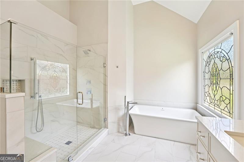 Welcome to your dream home in one of South Forsyth's most vibrant and sought-after communities...Olde Atlanta Club... where you can enjoy country club living combined with resort style amenities all in the coveted Lambert High School District! Located on the 5th Fairway and Green, this stunning EXECUTIVE RANCH home has been recently renovated and upgraded throughout combining designer colors and high end finishes sure to attract the most discerning of buyers. Showcasing striking architectural design, this home features three sides of brick with a BRAND NEW architectural shingle roof (2025), built for both timeless style and lasting investment. Step inside to find a sleek, open interior with high ceilings, rich, newly refinished hardwood floors and Brand New neutral toned luxurious carpeting flowing throughout. This exquisite home offers a magnificent Primary Suite on Main, along with an in-law suite on main featuring a bedroom and adjoining living space/interior bedroom overlooking the golf course with private bath. There are 2 additional secondary bedrooms up...one with walk in attic access for additional storage needs and open loft area perfect for a reading nook or exercise equipment overlooking the 2 story Great Room. Full Bath both in the Guest Suite on Main and Upstairs have Beautiful new Quartz Countertops and new plumbing fixtures and lighting. The open-concept design features a spacious dining room with striking chandelier, living room, study, and 10 x 20 home office. Sunlit 2 story Great Room is anchored by a stunning floor-to-ceiling stone fireplace, for a warm and stylish centerpiece. The gourmet kitchen is a SHOWSTOPPER, complete with GORGEOUS WHITE RHINO stone countertops and backsplash, center island, spacious walk in pantry, statement vent hood, and BRAND NEW stainless steel appliances including a glass cooktop and wall ovens. Several BRAND NEW light fixtures and ceiling fans have been carefully selected to elevate the atmosphere and create the perfect ambiance for entertaining or relaxing. The primary Bath has been completely remodeled and upgraded in 2025... incorporating sophisticated tile, modern lighting, a beautiful freestanding soaking tub with a handheld rinsing fixture, spa-style walk in shower and oversized walk in closet. Powder room has also been completely updated with new vanity cabinet with marble top, new lighting, and fixture. The laundry room is as stylish as it is functional, featuring storage cabinets and brand new tile floors. Step outside to your spacious deck with access from both the family room and primary suite overlooking the golf course. Grab a glass of wine and relax and unwind after a long day for the ultimate indoor-outdoor living experience. FULL UNFINISHED DAYLIGHT TERRACE LEVEL with 9' ceilings offers endless potential for the next owners to finish some or all of it already stubbed for a bath. BRAND NEW Water Heater (2025). From its abundance of space and luxury finishes to its unbeatable location in the heart of South Forsyth, this EXECUTIVE RANCH truly has it all. Schedule your private showing today!