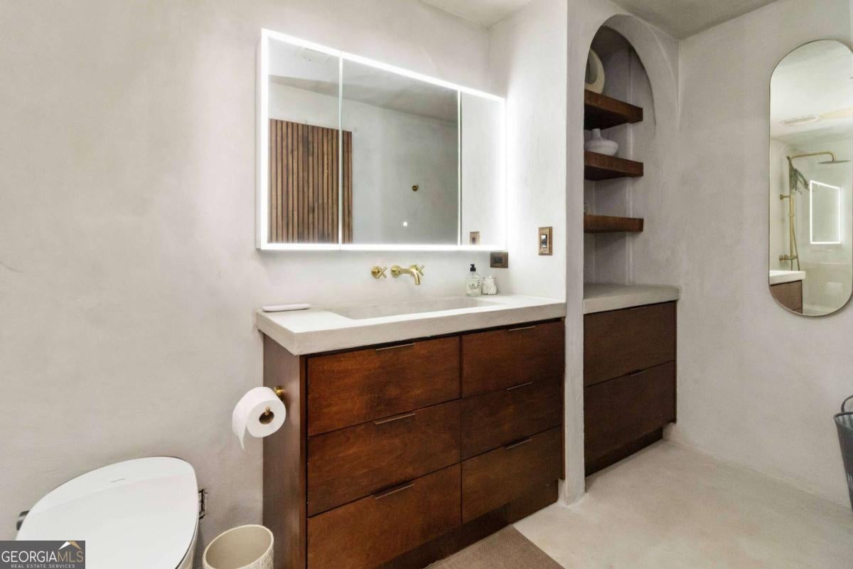 Welcome to your modern retreat in one of Buckhead's most coveted high-rise communities The Realm. This stylish 1-bedroom, 1-bathroom condo offers the perfect blend of location, luxury, and lifestyle, all within walking distance to Lenox Square, Phipps Plaza, MARTA, and the vibrant Buckhead Village. Step inside and be greeted by an open-concept living space with built-in cabinetry for smart, seamless storage. The spacious living area flows onto a massive private balcony ideal for morning coffee or evening wine with immaculate views of the city skyline. Unique features continue throughout, including a custom-built wardrobe nook conveniently located next to the sleeping area, offering functionality without sacrificing style. The bathroom is a true sanctuary, designed with tropical vibes that transport you straight to Tulum complete with a modern bidet and spa-inspired finishes. Located on the same level as all the luxury amenities, you'll have effortless access to the resort-style pool, fully equipped fitness center, and lounge areas. No elevator needed. Whether you're looking for a sleek city home or a smart investment in one of Atlanta's prime locations, this condo checks all the boxes