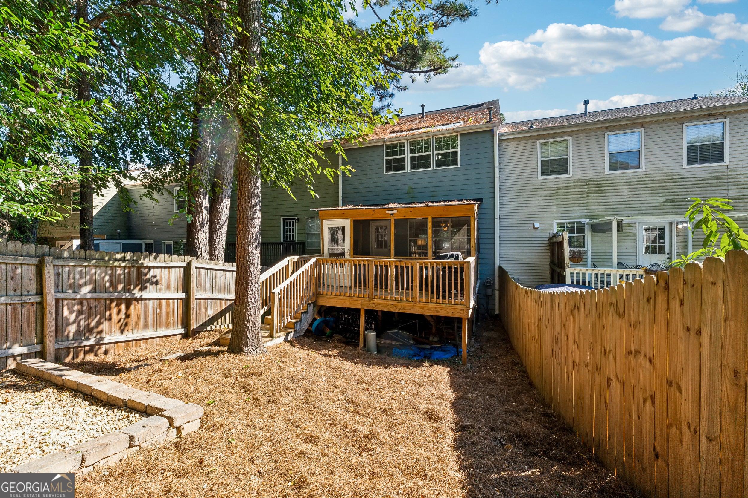 LOCATION! LOCATION! LOCATION! Location, lifestyle and low maintenance living all come together in this updated Smyrna townhouse! Just a short stroll to Truist Park and The Battery Atlanta, you'll enjoy easy access to dining, shopping, and year round entertainment. Inside, the home has been freshly painted including the kitchen and bathroom cabinets. This two bedroom three bathroom townhome offers an open layout featuring a cozy fireplace in the living room, creating a warm and inviting space to relax or entertain. Step outside to a brand new screened in porch perfect for morning coffee or evening unwinding, along with additional exterior deck space perfect for grilling and gatherings. The private, level backyard offers space rarely found in townhome living. Additional highlights include durable Trex steps leading to the entry, two spacious bedrooms with en-suite bathrooms, and a convenient half bathroom for guests. The home also includes an unfinished basement offering potential for additional living space, home office, gym, income or media room. This move in ready townhouse is a rare find in one of Smyrna's most sought after locations, don't miss it! The neighborhood offers a $25.00 per year voluntary HOA fee should you choose to join.