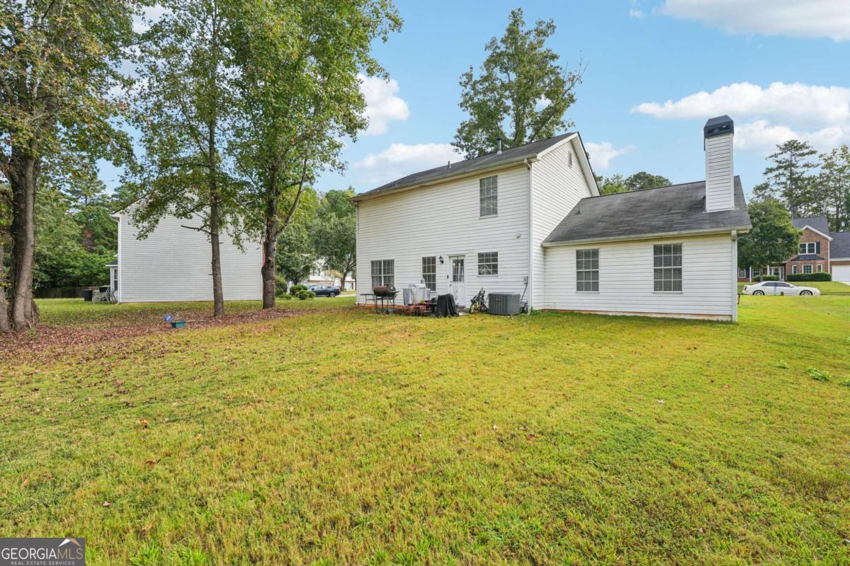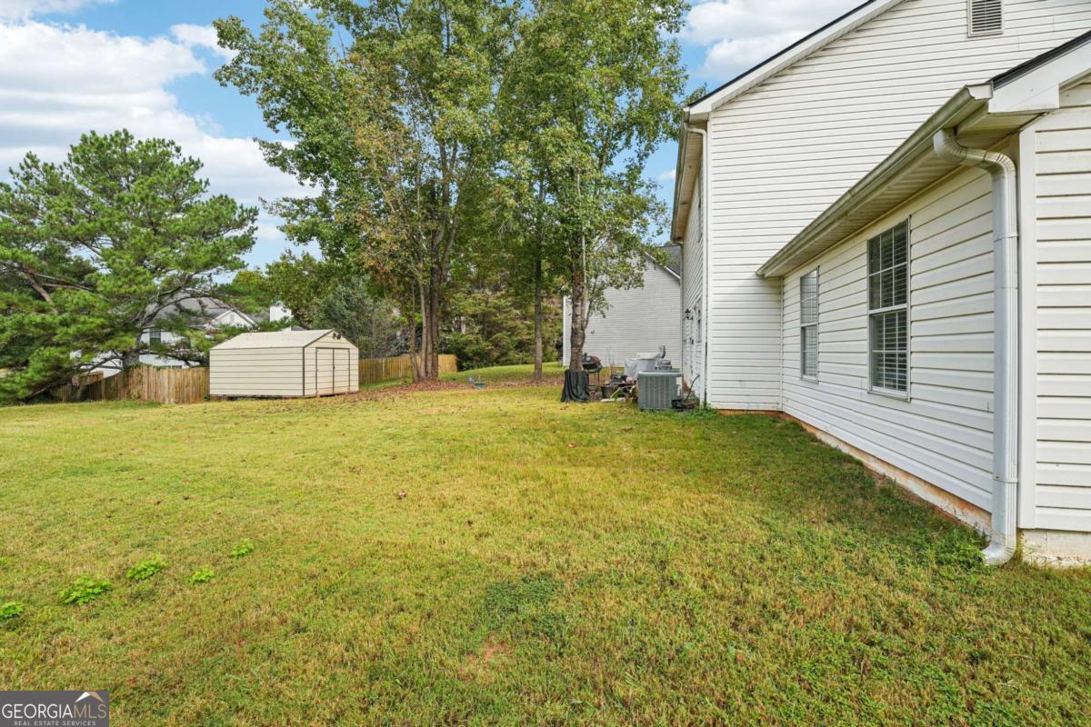 Lovely home on a large lot with mature trees! Step inside to updated beautiful, easy-to-maintain laminate wood floors that flow throughout the main level. The formal living room is bright and spacious, while the formal dining room features a dramatic ceiling and chandelier-perfect for entertaining. The family room offers a cozy fireplace, and the updated kitchen features new stainless steel appliances, white cabinets, granite countertops, and a sunny breakfast room. A convenient half bath and laundry room complete the first floor. Upstairs, the primary suite is a relaxing retreat with a tray ceiling and plenty of natural light. The en-suite bath includes dual sinks with granite counters, a soaking tub, and a separate shower. Two additional spacious bedrooms and a full bath provide room for everyone! The large backyard offers ample green space, a storage shed, and a patio ideal for grilling. Community amenities include a sparkling pool for summer enjoyment. Conveniently located close to schools and shopping. Don't miss your opportunity to tour this home today!