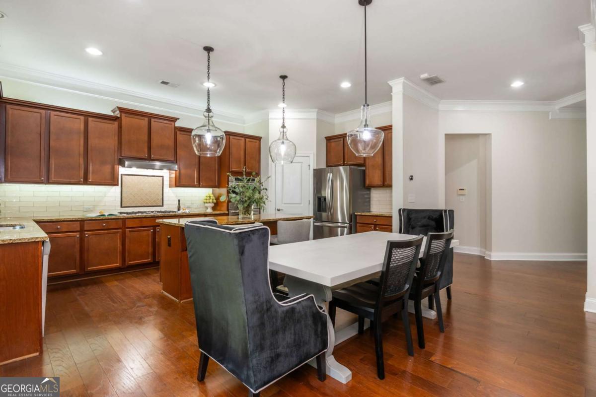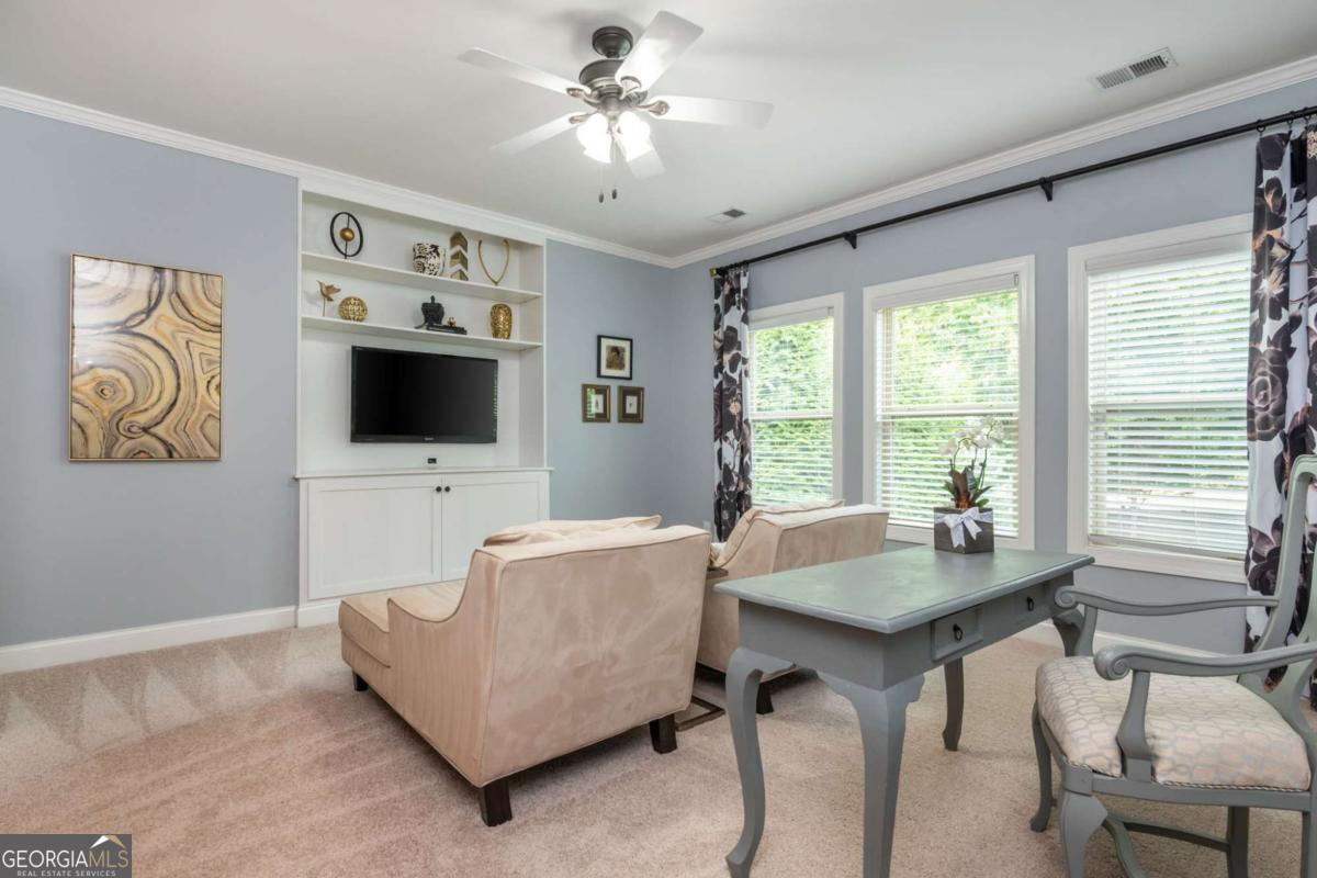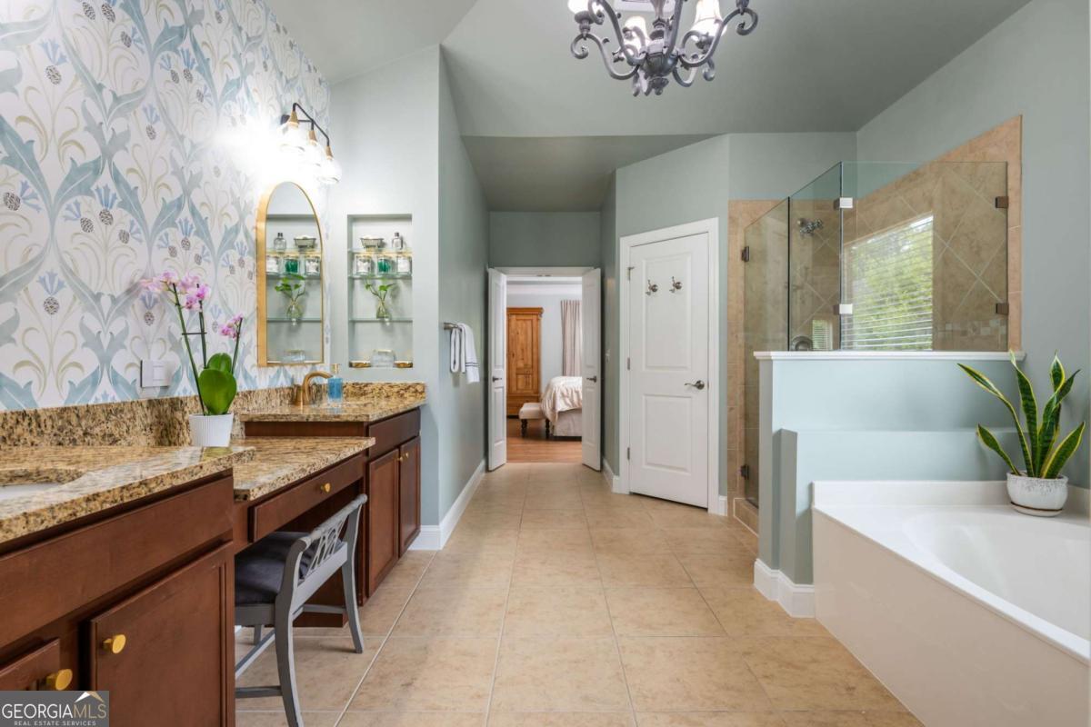 Imagine a meticulously maintained brick Estate Home, with soaring ceilings and Open Floor Plan, so convenient to everything you can't imagine being located on a quiet street with a sprawling yard that suits all lifestyles. Welcome to 2571 Walden Estates, located in one of our favorite Luxury Communities in East Cobb. A symphony of space and style, this 5 Bed, 4 Bath home unfolds across nearly 3,800 Square Feet promising a uniquely curated space for everyone in your family, including your fur baby! Enter through the stained solid wood door into the foyer with a barrel-vault ceiling. Your office with coffered ceilings & french doors is located to the left and the perfect quiet setup with tons of light so you don't have to go to that lifeless office at corporate headquarters. Formal Dining Room features trey ceiling, board & batten feature wall & is large enough for 12 person gatherings. Straight ahead, the Family Room awaits you; however, wait a minute. Don't forget to look to your right & notice the custom built & curated residence located 2571-1/2, awaiting your furry friends (or your spouse's new residence when he inevitably ends up in the literal dog house). Family Room flows seamlessly into the Kitchen, forming the heart of the home, & features coffered ceilings & stone fireplace flanked by built-ins. Kitchen features stained cabinets, granite counters, large single bowl sink, full suite of stainless appliances including gas cooktop & large island with seating. Did someone call Southern Living because your dream pantry includes custom built-ins, butcher block counter, undermount lighting & room for wine/beverage fridge. Rounding the corner is a Mudroom with built-ins, to store all the things, and your 3 garages. Single Garage is equipped with EV Charger. Main Floor also features a Bed & Full Bath that would be ideal for Multi-Gen Living / Lounge / Playroom. Upstairs, the expansive Primary Suite is perfect for the King & Queen of the home & boasts a tray ceiling, sitting area & spa-like bath complete with double vanity, soaking tub & shower. TV above the tub, so you don't miss your favorite game or episode of Bridgerton while relaxing (hiding) from rest of the family! At the end of the Upstairs Hall, you will find 2 additional Beds (Jack-N-Jill) that share a Bath. Additional Secondary Bed & Bath perfect for larger families or additional Guest Room. Sorry boys, the final Secondary Bed & Ensuite Bath was specially curated for the Princess. Upstairs features large Media Room / Flex Room w/custom built-ins. Laundry Room is located just off the Primary Suite. Freshly painted Exterior with Pro House & Landscape Lighting. Outside, enjoy a sprawling private fenced backyard ideal for kiddos or fur babies to burn off some energy. Covered Patio with Ceiling Fan & TV perfect for relaxing evenings, outdoor dining / entertaining. For the gardeners, metal framed beds to grow herbs, flowers & fresh vegetables (for some of us, place to prove we can't grow anything). Stone patio adjacent to garden under magnolia tree for al fresco dining under the stars. Irrigation, Security Cameras & Exterior Doors controlled by Smart Phone. You are about to own a gorgeous home in the trifecta of School Districts. If you head East on Post Oak Tritt & walk, ride or roll to Tritt ES (or as us locals like to call it... the "Disney" of elementary schools). You can head West & in minutes pull up to Hightower MS. Travel a little further West & arrive at Pope HS where Academics & Athletics soar higher than the US National Debt & are ranked as some of the best in all of Georgia. Estates of Walden is a single cul-de-sac street of Luxury Homes, adjacent to Walden Subdivision, a vibrant Swim & Tennis Community all included in your Annual HOA Dues. Need groceries? You have 5 options within 2 miles! Shopping, Restaurants, Gas & Historic Roswell all minutes away. The convenient Location, amazing schools & gorgeous upgrades are hard to beat!
