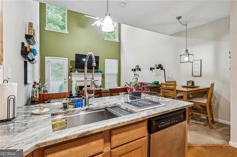 New Price! Affordability is found here in this beautiful 3 Bedroom, 2 full Bathroom Townhouse. You will fall in love the minute you step inside. Ideal floorplan for entertaining with the Kitchen and Dining Area overseeing the two-story fireside Great Room. The Kitchen offers granite countertops and stainless steel appliances. You'll find a French Door entry from the Great Room to the Primary Bedroom and Bathroom so your primary living space is on the main floor, including the laundry room. Venture upstairs where you will find a spacious loft area, an ideal place for a home office and remote workers. There are also two large Bedrooms, connected by a shared bathroom that offers a dual sink vanity. Enjoy peaceful evenings or morning coffee on your private backyard patio. A perfect setting to unwind or entertain friends and/or family. The Parc at Wiley Bridge provides an excellent location, conveniently located between the thriving nightlife of downtown Roswell and the active lifestyle of downtown Woodstock. Walk to the hardware store. Nearby grocery stores, other retail shops and parks. Make your home dreams a reality and book your viewing today!