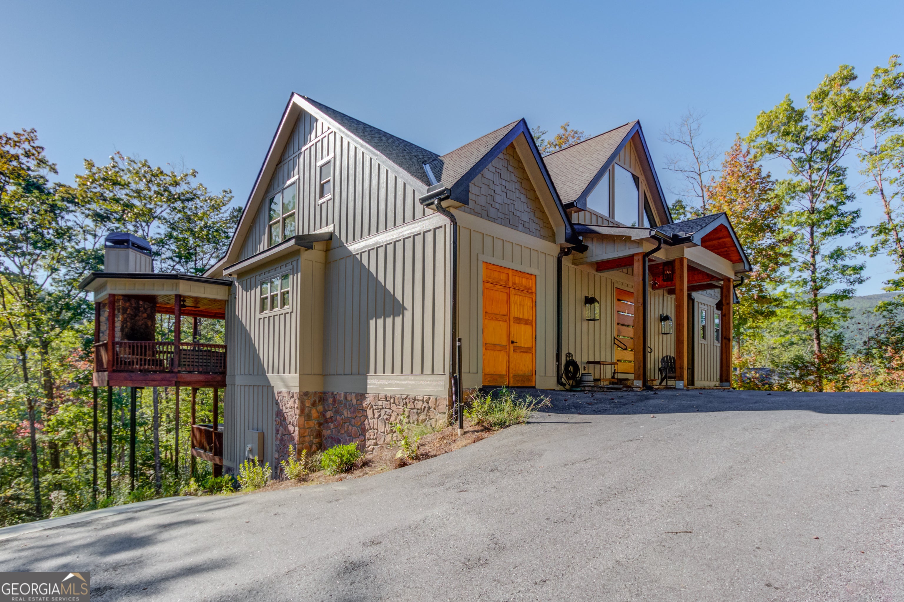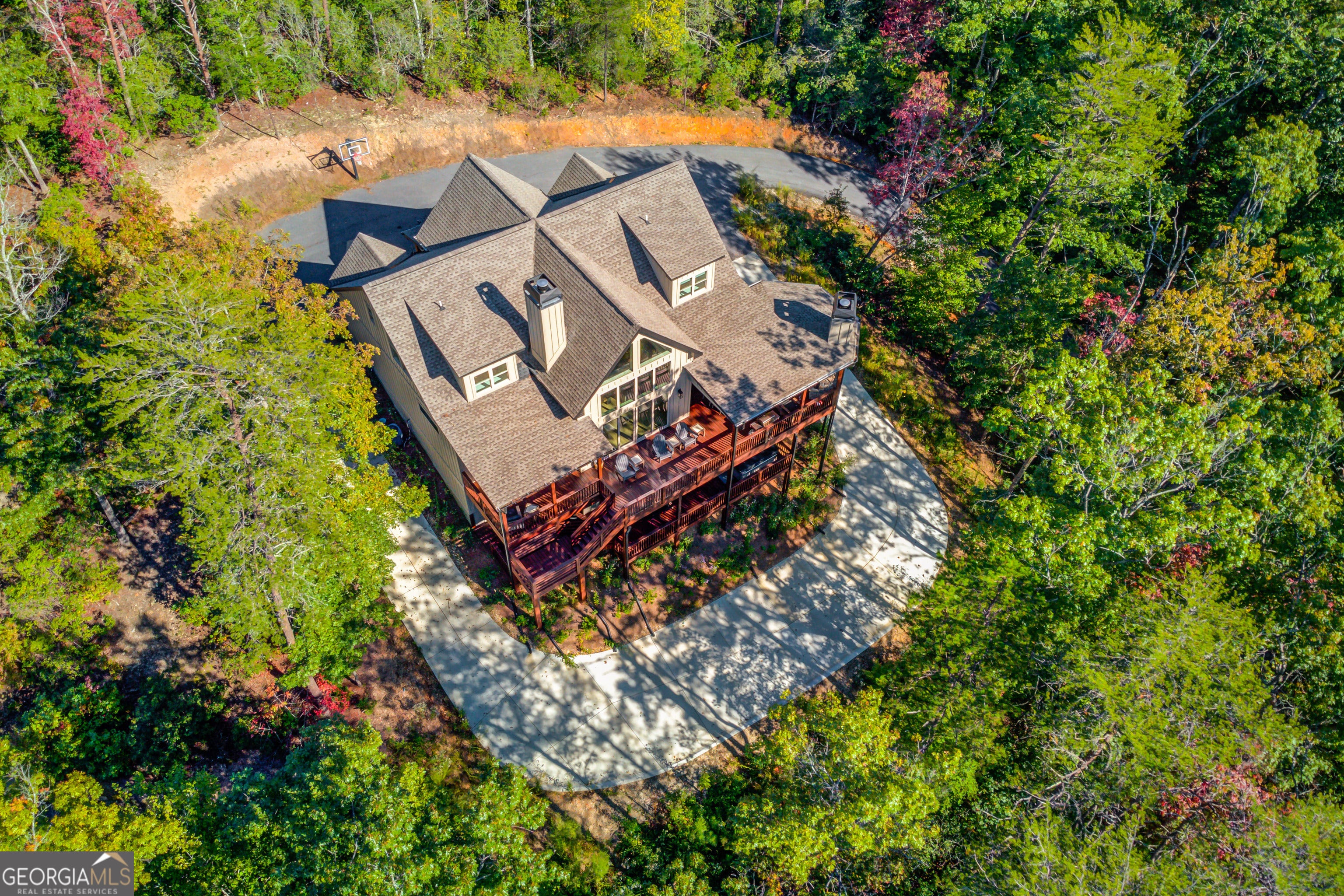 Nestled at the end of a cul-de-sac on a serene street sits the ultimate mountain lover's dream - 136 Unicoi Hills Trail. This custom built, move-in ready sanctuary features 4 bedrooms, 5.5 bathrooms, with panoramic mountain views and is situated on 1.2 acres. The main level features a unique and custom pivot door that invites you into the living room boasting a 35-foot vaulted ceiling, floor to ceiling windows, floor to ceiling stone fireplace, and solid oak flooring throughout. The open concept, eat-in chef's kitchen/dining area features an oversized Princess white quartzite island, dry bar with a built-in wine fridge, custom cabinetry, stainless steel appliances, and a custom walk-in pantry. The primary suite is also situated on the main level and features a spa like bathroom with honed porcelain tiles, a separate water closet, double-sized trough sink with a custom vanity, soaking tub, separate shower, custom closet and a private covered deck. There are also a half bath, laundry room, and small garage on the main level. The upper level features a bright and light loft area and 2 secondary bedrooms with ensuite bathrooms and custom closets with attic storage access. The lower level is an open concept "bunk house" and features a kitchenette (sink, under counter refrigerator and freezer drawers, and a built-in microwave), dining area, game/bonus/secondary living room and sauna. The bunk room contains 2 custom built-in bunk beds for a total of 4 beds (2 twins and 2 queens), built-in cubby storage and a custom closet system. Across from the bunk room is a locker style bathroom with 2 separate water closets, 2 separate and massive private showers/changing areas, and 2 separate vanities. There is also a second laundry/mechanical room on the lower level. Enjoy the covered deck areas on both the main and lower levels that span the length of the home. The main level deck features an outdoor fireplace with built-in wood storage, outdoor dining area and multiple sitting areas. The lower-level deck features a large hot tub, dining area and sitting area. This home has been meticulously maintained and is equipped with everything you need. Whether you're seeking a private retreat, a shared getaway, or an investment opportunity, this property embodies the essence of luxurious living, promising unforgettable experiences and memories for years to come.