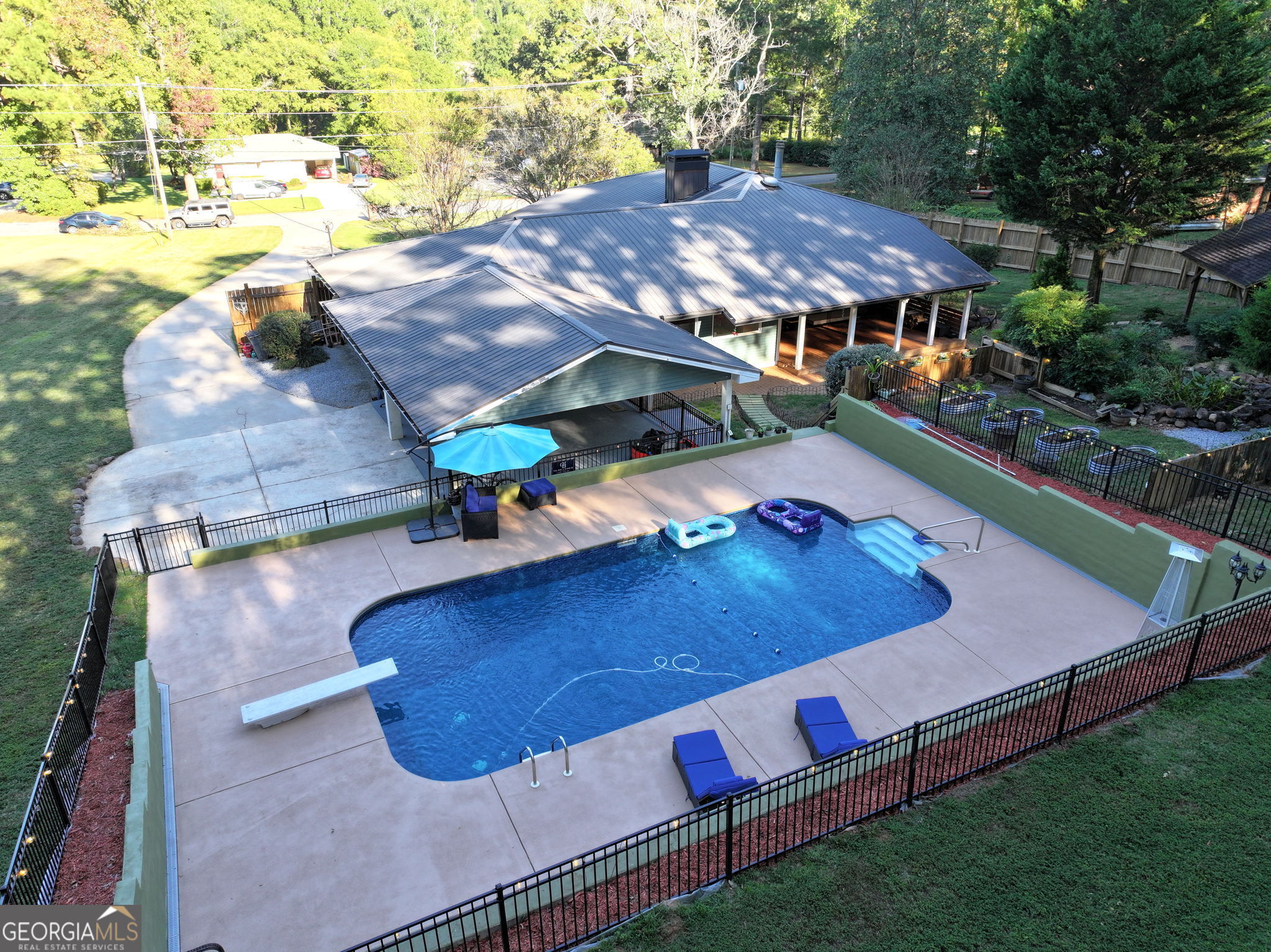 Your dream home, located in an exceptional school district and just minutes from everything, is nestled on 1.63 acres of beautifully landscaped grounds. Featuring a sparkling pool, delicate water features, indoor and outdoor living, and over 3,100 square feet of space ready for you to call home. This spacious tri-level residence blends comfort, convenience, and outdoor living in a truly one-of-a-kind setting. With four bedrooms, three full bathrooms, and a thoughtful layout, it offers room to relax, entertain, and enjoy every season. As you step through the front door, gleaming hardwood floors invite you to explore the home's many unique spaces. Designed to support everything from everyday meals to holiday feasts, the kitchen features butcher block countertops that provide a warm, functional work surface, complemented by a breakfast bar that doubles as a prep area. Cooking enthusiasts will appreciate the gas cooktop and the rare bonus of a second stove, ensuring there's plenty of space for preparing large meals. A generous walk-in pantry connects the kitchen and family room, keeping essentials close at hand and making it easy to move between cooking and entertaining. The dining room rises dramatically with a two-story ceiling, creating an airy, open atmosphere filled with natural light. Along one wall, a built-in window seat invites you to relax and take in expansive views of the backyard. The tall windows stretch upward, emphasizing the room's height and allowing sunlight to pour in throughout the day, while a classic brick fireplace, updated with gas logs, adds warmth and character. The space feels both grand and welcoming-perfect for gatherings that flow effortlessly between the indoors and the peaceful outdoor setting. A flexible floor plan provides multiple gathering spaces, including a bright sunroom or playroom off the kitchen with windows looking out to the pool on one side and built-in storage on the other. Upstairs, you'll find three of the four bedrooms, including the primary suite, two additional bedrooms, and a second full bath. Downstairs, the fourth bedroom functions as a comfortable secondary suite, complete with a wood-burning fireplace, large walk-in closet, private bath, and a versatile bonus room. An optional private entrance from the backyard adds flexibility for guests, extended family, or independent living. Step outside to your private haven. A sparkling 18x36 vinyl in-ground swimming pool, installed in 2023 with a new pool pump in 2025, invites you to unwind or host summer gatherings, while the expansive covered deck and backyard pavilion offer shaded spots for dining and entertaining. The fenced backyard provides privacy and security, making it ideal for both family living and entertaining guests. For moments of peace, explore the landscaped grounds where a pond with a cascading waterfall is home to lotus flowers and surrounded by pollinator-friendly plantings. Fruit trees, herbs, vegetables, and berry bushes offer seasonal harvests and add to the property's natural beauty. Every detail of the landscape has been designed to create visual appeal and harmony with nature. Additional highlights include a welcoming front porch, a spacious carport and 2 additional parking pads offer room for multiple vehicles or even a boat, and ample storage. This property is more than just a house-it's a way of life. Imagine mornings with coffee on the porch, afternoons by the pool, evenings gathered under the pavilion or covered deck, and weekends enjoying fresh fruit or vegetables from your own trees and plants while listening to the soothing sounds of the waterfall pond. With its rare combination of updated interiors, expansive outdoor living, and over an acre and a half of land in the middle of town, this home is truly special. Conveniently located yet offering the feel of a private getaway, it's ready to welcome you home. Schedule your private showing today and experience everything this property has to offer.