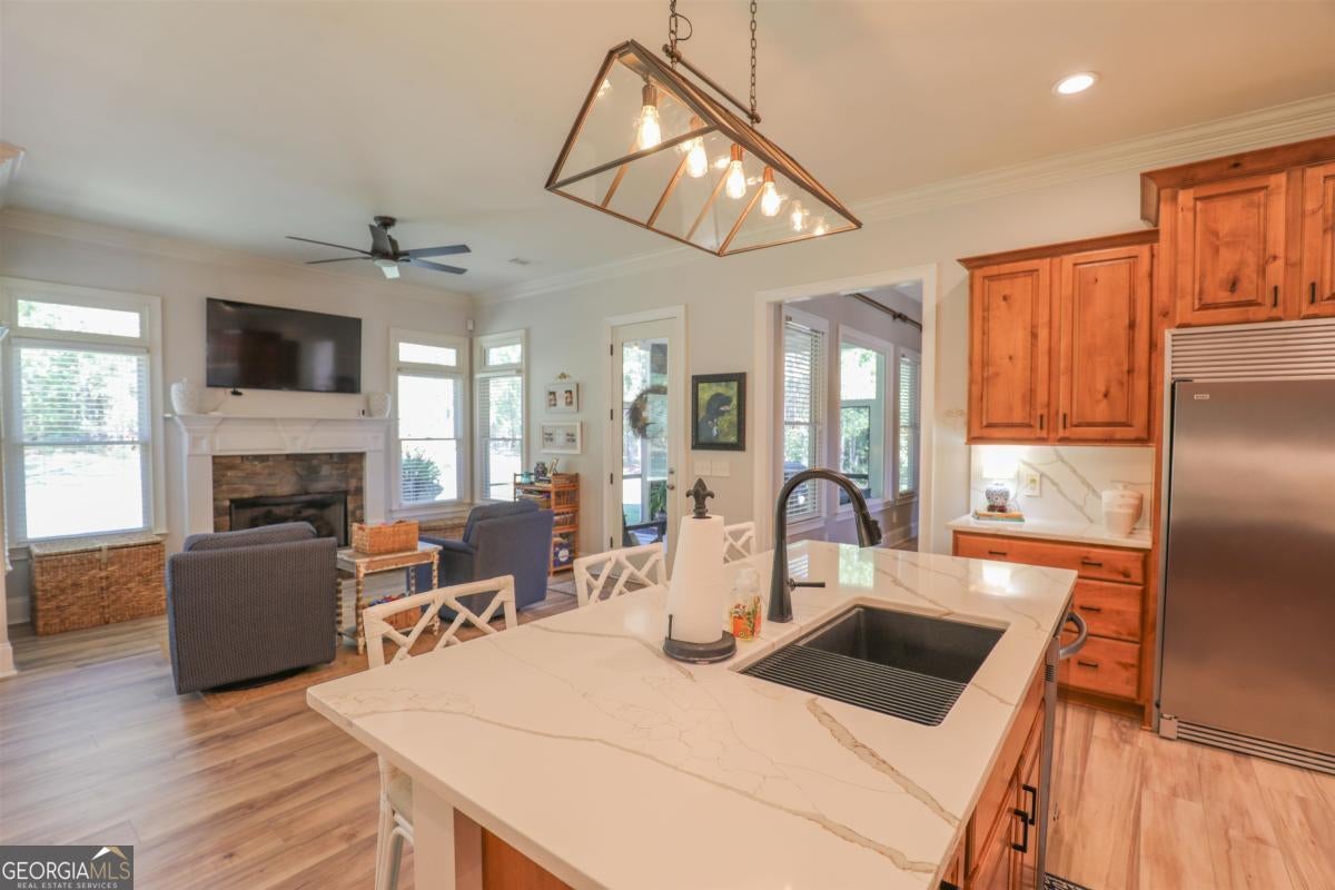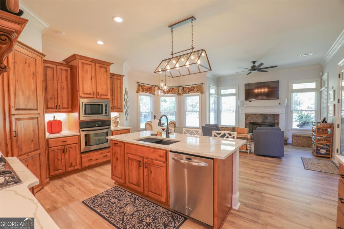 Welcome to 211 Arbor Way, a 4-bedroom, 4-bath home in beautiful Greystone Arbor. This home has custom touches from start to finish. The vaulted ceilings in the living room with shiplap accent wall and plenty of natural light has room to accommodate all families. The Kitchen boasts updated quartz countertops with matching solid piece quartz backsplash, large corner pantry, huge fridge and freezer, and beautiful wood cabinetry. Adjoining the kitchen is a breakfast nook surrounded by windows and keeping room to make weeknight dinners a family affair. Generously sized master bedroom on main features a vaulted ceiling, double French doors to the back patio, his and hers closets, and master bath suite with shower, garden tub, and his and hers vanities. The dining room and stained coffered ceiling is ready for your next sit down dinner. 2 additional bedrooms on the main level are connected by a Jack and Jill ensuite bathroom. Go upstairs and you'll find a loft area with room for a second family room space, nook for an office, full bath and additional fourth bedroom. Walk in attic access makes getting down holiday decorations a breeze. Huge laundry room/mud room connects to garage. The backyard features a screened in porch, open patio, large level yard and gazebo with deck flooring to enjoy outdoor activities with both shade and comfort. This custom home has a ton of character and customization that is just begging to be yours next!