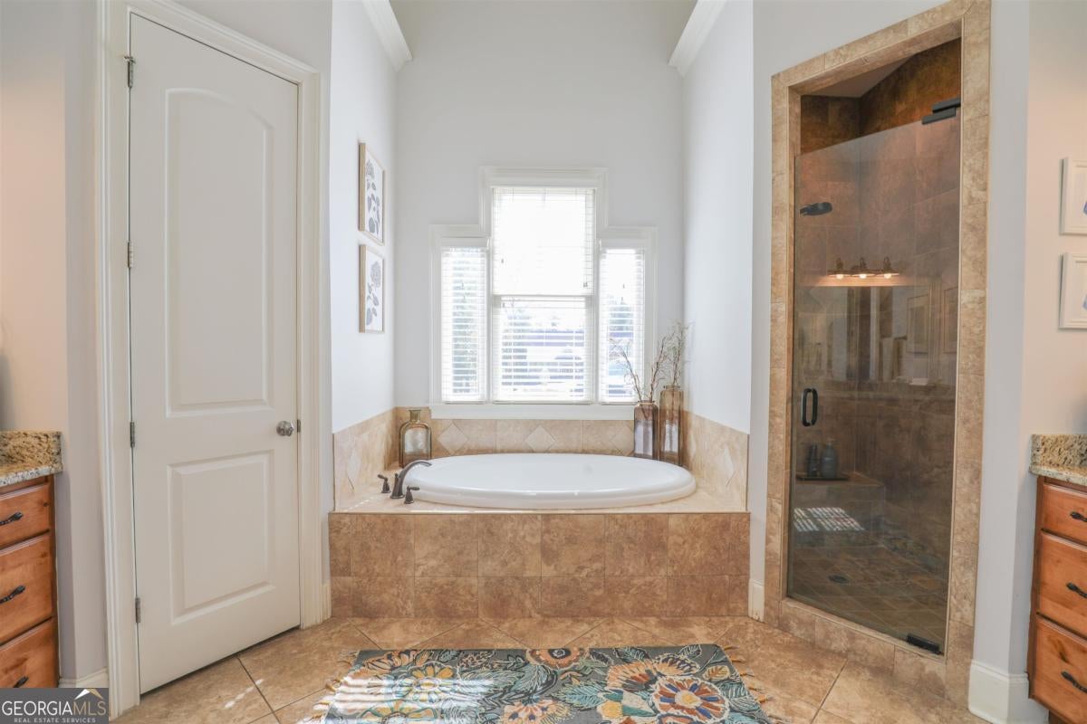 - Interior FeaturesDouble Vanity, High Ceilings, Master On Main Level, Soaking Tub, Tile Bath, Tray Ceiling(s), Vaulted Ceiling(s)