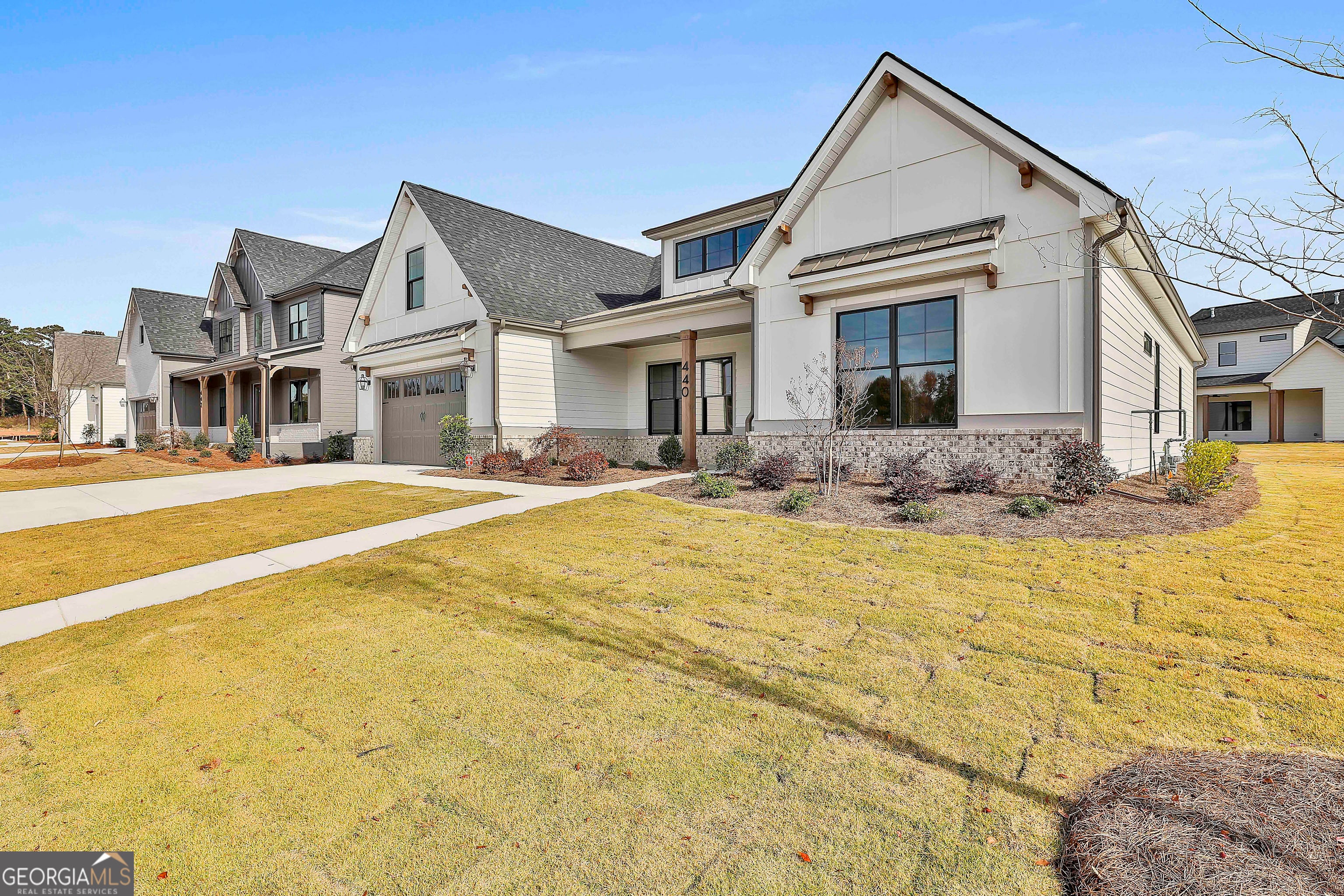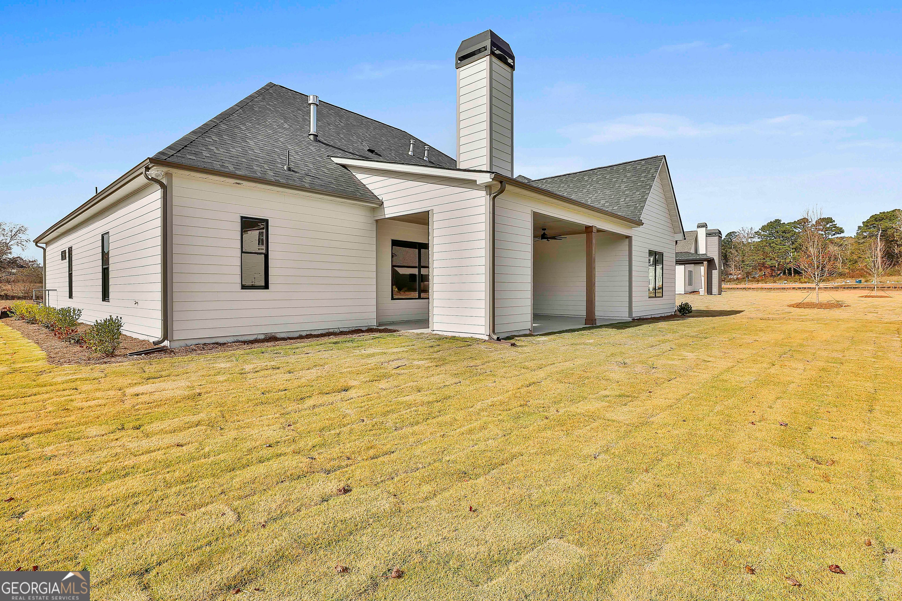 Harris F New Construction in Peachtree City - Move-In Ready! The Harris F (Mill Farms lot 53) with GOLF CART GARAGE)) 4 BEDROOM AND 3 FULL BATHROOM!! is a true ranch-style home offering four spacious bedrooms and three full bathrooms, all on one level. The gourmet kitchen features high-end appliances, quartz countertops, a gas cooktop, custom wood vent hood, and ceiling-height cabinetry, along with an extended peninsula perfect for entertaining. The kitchen opens to a bright great room with picture windows that bring in natural light and showcase the backyard. The primary suite includes large picture windows, dual vanities, upgraded quartz countertops, a soaking tub, tile shower, and a walk-in closet with a custom system and direct access to the laundry room. A private office with French doors adds flexibility for remote work or a quiet retreat. The split-bedroom layout offers privacy and functionality, with three additional bedrooms and two full baths. Enjoy the extended covered patio with a cozy outdoor fireplace, ideal for gatherings. Gas lanterns at the front and along the street enhance the home's charm and curb appeal. NOTE: Buyer Bonus: $15,000 in incentives ($13,000 from Jeff Lindsey Communities and $2,000 from our preferred lender). These funds can be applied toward closing costs, prepaid items, or an interest rate buy-down.