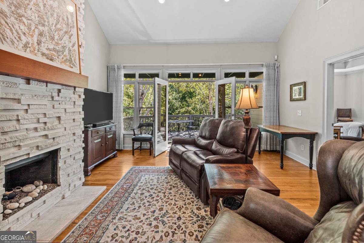 Waterfront Living at The Vintage Club on Lake Oconee! Enjoy effortless luxury in this 3BR/3BA waterfront townhome located within the gated Vintage Club community-offering one of the best assigned boat slips on Lake Oconee and access to a sparkling community pool. Step inside and be surprised-the home may look modest from the front, but it lives large with the square footage(3,550) and feel of a full-size home. The open-concept main level features beautiful high ceilings, expansive windows, and gleaming hardwood floors that fill the space with natural light and capture peaceful lake views. The spacious primary suite, guest bedroom, full bath, and laundry room allow for convenient main-level living. The terrace level mirrors the main floor in layout and function, perfect for guests or family, with two additional bedrooms, a full bath, and a flexible bonus room ideal for an office, gym, or media space. Abundant storage, including over 200 sf of unfinished space, keeps everything organized. Recent updates include a 3-year-old roof, and a large deck overlooking the lake-ideal for morning coffee or sunset gatherings. Experience true waterfront living with low maintenance, a private dock slip, and a premier location close to golf, dining, and shopping at Lake Oconee.