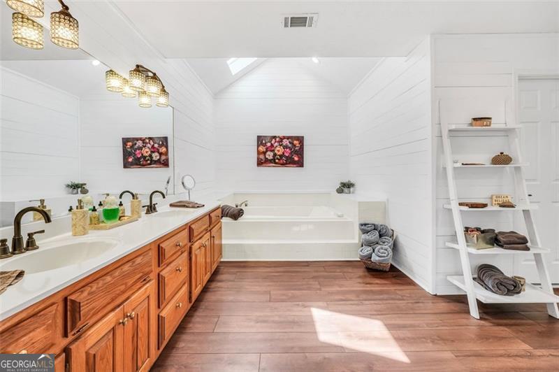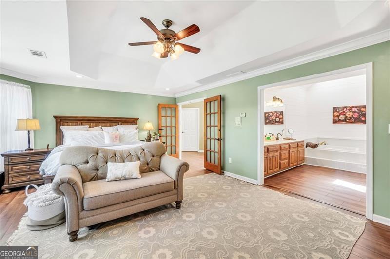 - Interior FeaturesHigh Ceilings, Pulldown Attic Stairs, Bookcases, Double Vanity, Soaking Tub, In-Law Floorplan, Other, Separate Shower, Tray Ceiling(s), Vaulted Ceiling(s), Walk-In Closet(s)