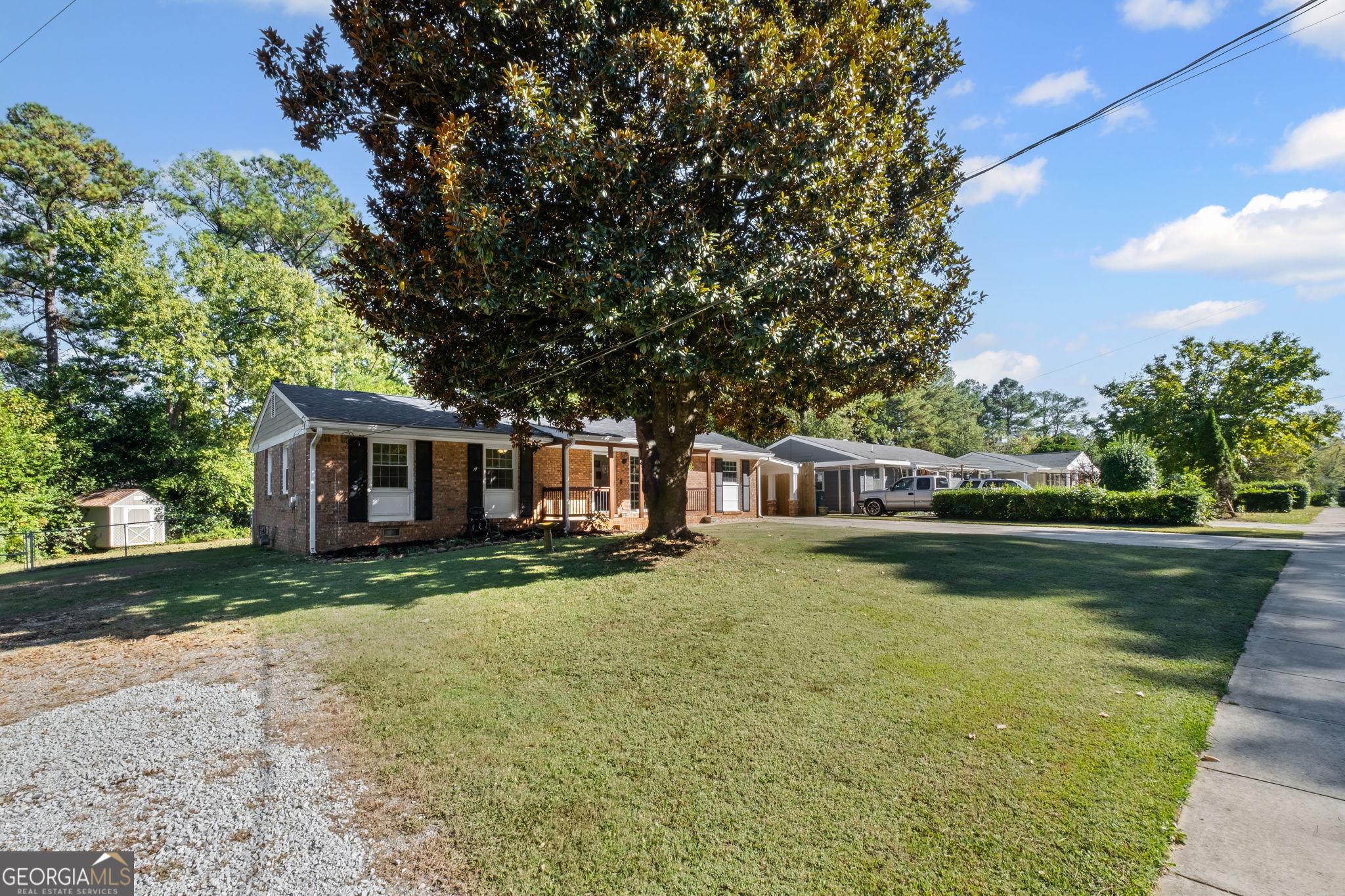 Classic 4 side brick one level living convenient to The Battery, Braves ball park, dining and shopping. Smyrna Village is in close proximity. Spacious lot with 2 driveways, carport & large private fenced backyard suited for a pool, gardening, you name it! Two outbuildings wired with electric are great for storage, a workshop, or even a She Shed! Ample natural light with an eat-in kitchen. Separate living room. dining room boasts exposed brick accent. 65" TV in living room remains. HVAC & Water Heater replaced in 2020, roof replaced in 2019. Move in ready!