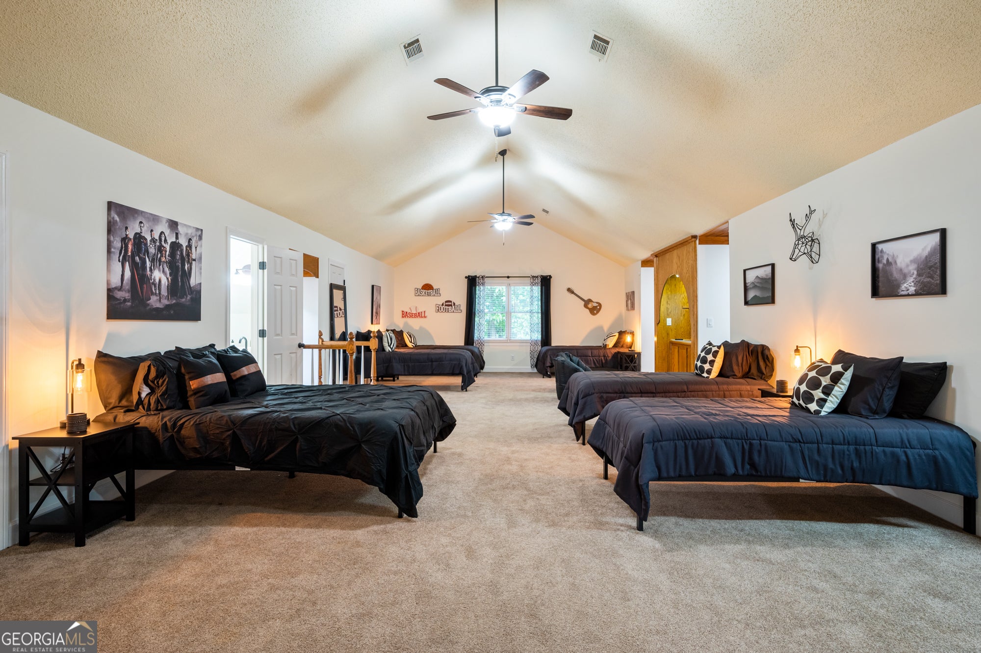 Located just 5 miles from Historic Downtown Cartersville, this spacious 4-bedroom, 3.5-bathroom home at Param Farms is your perfect retreat for family reunions, group vacations, or long-term stays. With a private pool (seasonal), multiple entertainment zones, and 18 total beds, this home blends comfort, elegance, and nature - all near top Georgia attractions. Nearby Attractions: Red Top Mountain State Park - Hiking & lake views Lake Allatoona & Gatewood Park - Fishing, kayaking & day use areas Tellus Science Museum - Fossils, gems & interactive exhibits Etowah Indian Mounds - Step into Native American history McKaskey Creek Campground - Trails & water access About the Home: Sleeps 18+ with 18 total beds across a well-designed layout 2 dining areas (formal + informal), each seat 6 Eat-in kitchen bar seats 4 Movie room for family nights or game-day viewing Dedicated office workspace - perfect for remote work Sleeping Arrangements (18 Beds Total): Downstairs Master Suite: 2 Queen beds + copper soaking tub + walk-in shower + dual vanities Makeup Room: 1 Twin bed Additional Room: 1 Queen + 1 Twin Upstairs Right Wing: Private bath + sitting area Left Wing: Small Room: 1 Queen + 2 Twins Open Room: 6 Full XL beds, 1 Queen, 2 Twins (pushed together), 1 separate Twin, 1 bathroom More Features: Smart TVs in every room Washer/dryer included Fresh bed & bath linens provided Fully stocked kitchen with granite countertops & stainless steel appliances Welcome tray with snacks and Keurig K-Cups Outdoor Amenities: Private pool (open mid-March to September) *Pool is not heated! Lanai, gazebo & observation deck Fire pit for cozy evenings under the stars Outdoor seating for relaxing & entertaining Garage not accessible to guests Fully fenced yard ( Pets not allowed) Parking Details: Approx. 900 ft driveway Forks at 700 ft: Right: Guest farmhouse (fits 4 vehicles) Left: Owner's barn office + overflow event parking (up to 25 vehicles) Disclosure: The owner operates a private office from a detached barn house ~200 ft from the main home. While they have access to the grounds, they do not enter or interfere with the guest farmhouse or your privacy. Event & Grounds Access Policy: The base reservation includes access to the pool and firepit area only. Use of the grounds for events, filming, or gatherings requires prior approval and an additional fee. Please inquire about commercial or event rates and availability. Included With Your Stay: All utilities, high-speed internet, lawn care & pest control Fully move-in ready - no hidden fees Virtual tour available upon request Booking Discounts: 10% off stays 7+ nights 15% off stays 30+ nights Perfect For: Large families or reunions Insurance-displaced guests Work crews or extended travel groups Long-term stays near nature & town conveniences Good to Know: Non-smoking property No events permitted without prior arrangement Pets not allowed Children welcome Security Requirements: TRUVI identity verification (link sent after booking) Photo of card used for booking (name must match reservation; no full number needed) Send to +1 (678) 721-8616 or support@suitestaysatlanta.com Experience elevated comfort, privacy, and flexibility at Param Farms - the perfect blend of space and serenity.