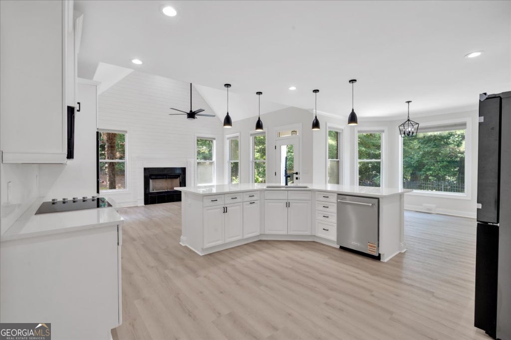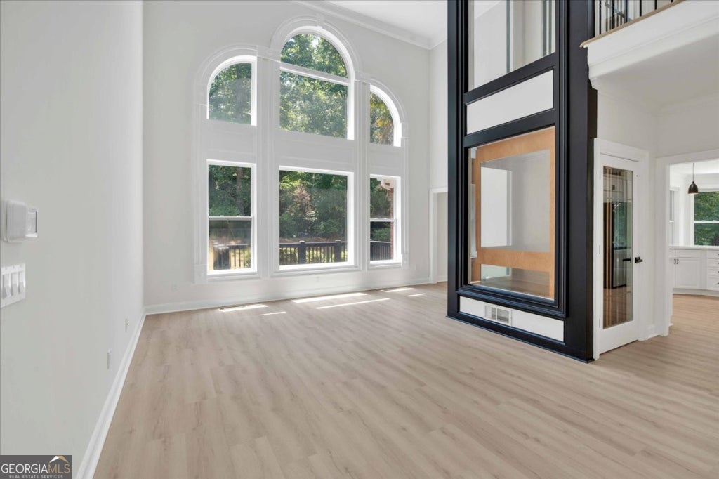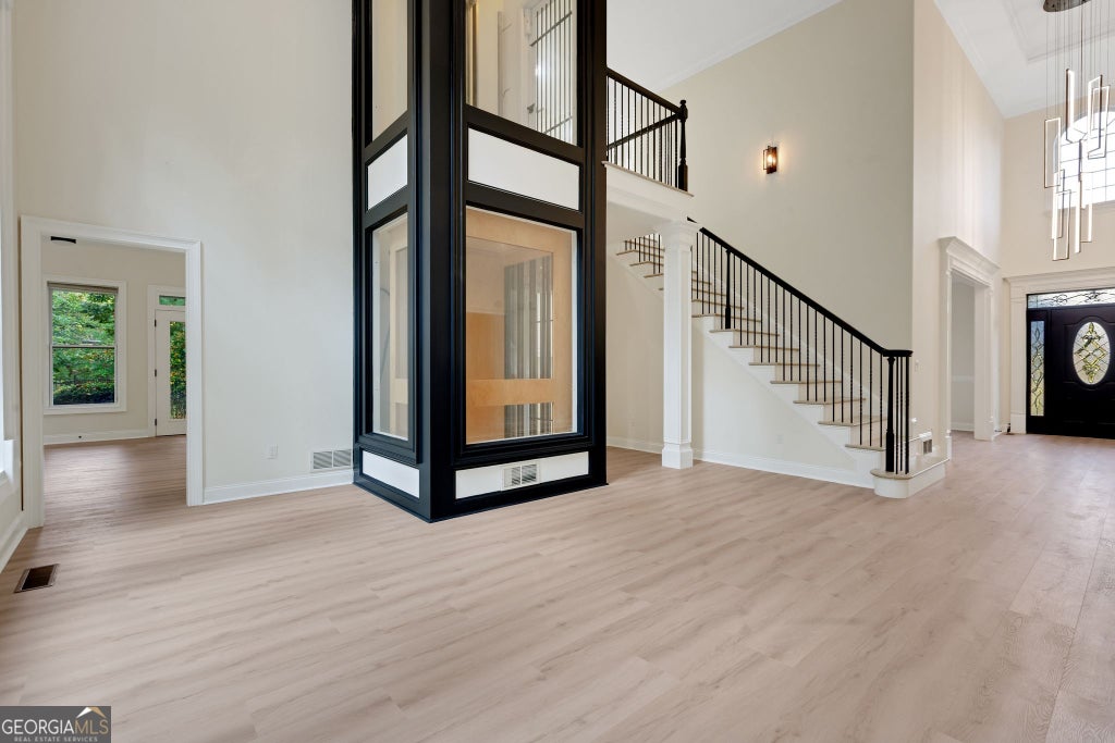 WOW... Welcome to the crown jewel of Canton's most prestigious enclave. This architectural masterpiece has been reimagined with high end designer upgrades, a brand-new roof, and every luxury detail thoughtfully curated. From the moment you enter, soaring ceilings, a statement chandelier, and a dramatic three-story all-glass elevator set the tone for modern elegance. The chef's kitchen is a dream - fully renovated with premium stainless appliances, custom cabinetry, quartz counters, designer lighting, and an oversized island with hidden walk-in pantry. Flowing seamlessly from the kitchen, the fireside family room, elegant dining room, and private office create the perfect balance of comfort and sophistication. The main-level primary suite is pure indulgence, featuring a spa-inspired bathroom with freestanding soaking tub, frameless glass shower, dual vanities, and sleek finishes. Upstairs, three spacious bedrooms and a fully updated bath provide comfort for guests. The fully finished lower level is an entertainer's paradise - with a home theater, game room, bonus living spaces, optional bedrooms, and a large den perfect for multigenerational living. Outside, enjoy a quiet cul-de-sac lot with professional landscaping, expansive backyard, oversized deck, and an epoxy-finished 3-car garage. Every detail has been elevated - from custom accent walls and designer lighting to fresh paint inside and out. Ideally located just minutes from Northside Cherokee Hospital, I-575, historic downtown Canton, fine dining, this home offers the ultimate in luxury living.