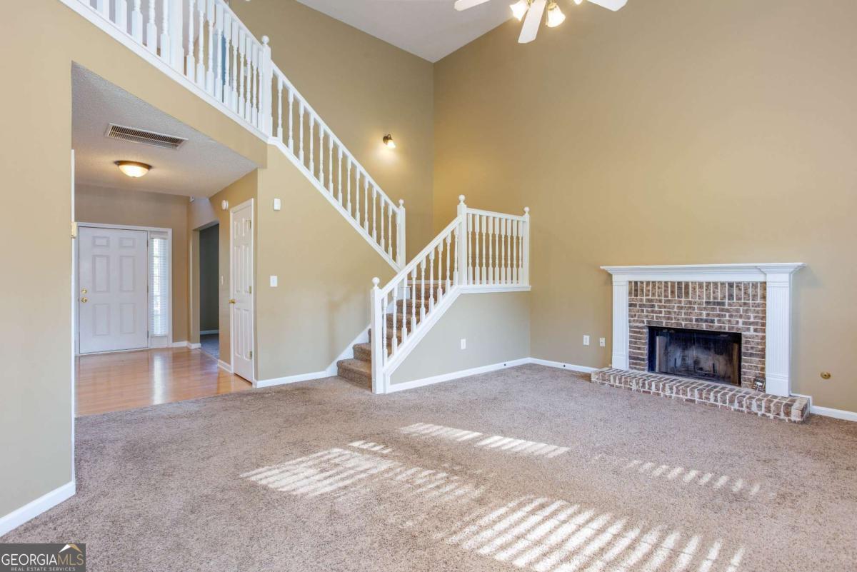 Welcome to this beautifully maintained 3-bedroom, 2.5-bath home nestled on a generous 0.73-acre lot. Boasting 2,526 sq ft of living space, this two-story gem features an updated kitchen perfect for entertaining, a cozy brick fireplace in the living area, and a huge 2-car garage with ample storage. The oversized primary suite offers a luxurious escape with a separate soaking tub and shower, dual vanities, and plenty of room to unwind. Wood flooring and plush carpet flow throughout the home, creating a warm and inviting atmosphere. Enjoy peaceful outdoor living with access to a serene community lake-ideal for fishing and relaxation. This property combines comfort, style, and nature in one perfect package. Schedule your home tour today!