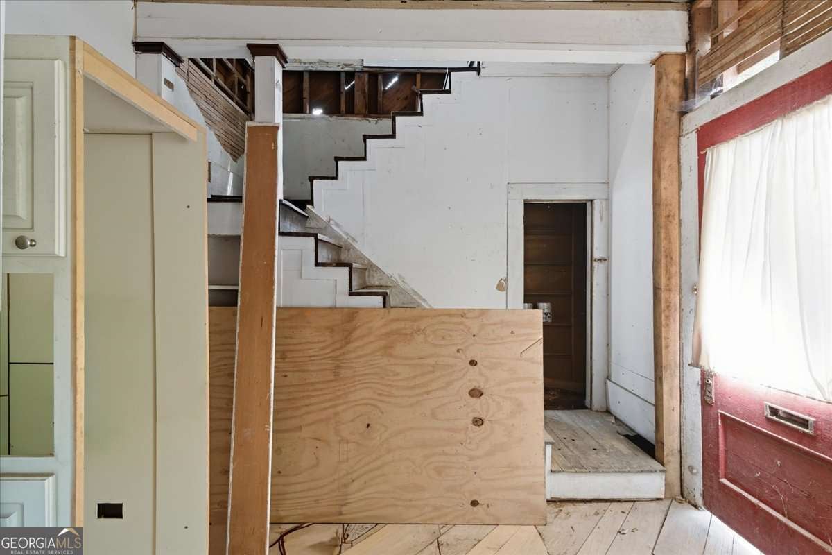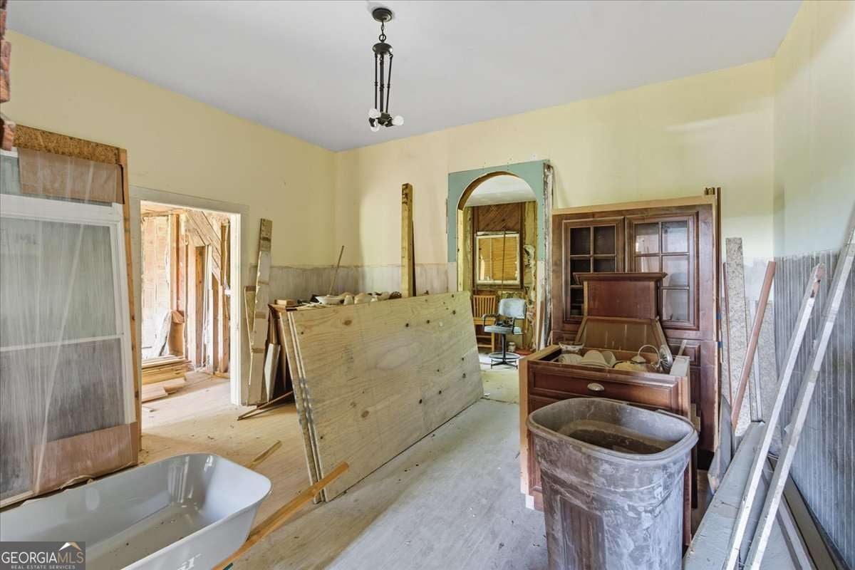 Come see the charm of Bremen at 111 Bryan Street West, a striking Queen Anne farmhouse believed to predate its recorded 1898 construction. During some renovation, pre-Civil War "slave bricks" were discovered in the original chimney, hinting this may be one of Bremen's earliest homes. Set within city limits, this property blends historic charm with so potential - featuring a new metal roof, all-new windows on site, most of the original doors with hardware, original tongue-and-groove ceilings, 1930s antique sinks, heart pine flooring, and original wainscoting in the dining room. There is also Chinese Elm lumber for the stair rails and front porch, as well as Brazilian Koa flooring ready for installation in the master. With its preserved character and significant updates already underway, this home offers a rare opportunity to finish a true Bremen landmark and make it your own.