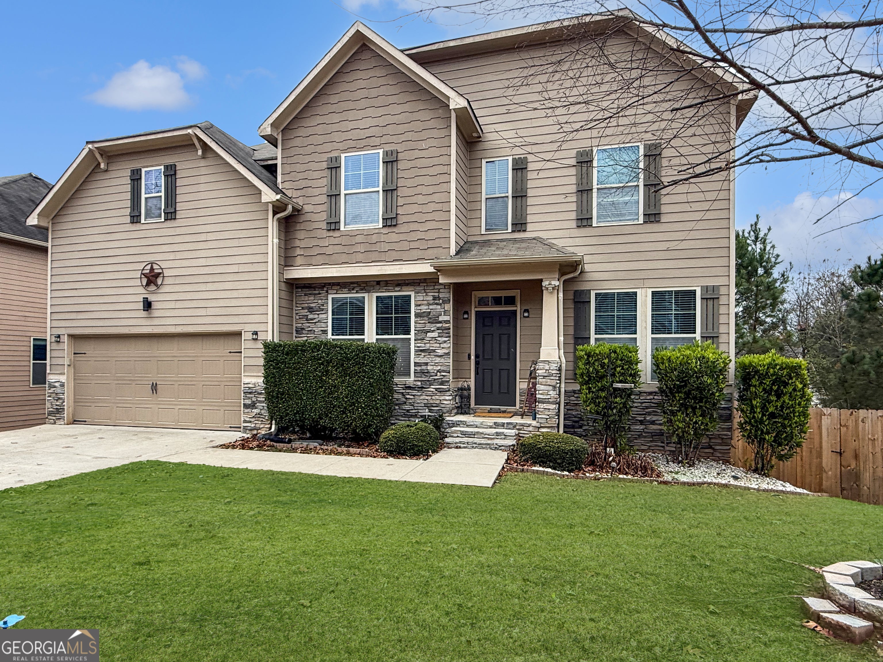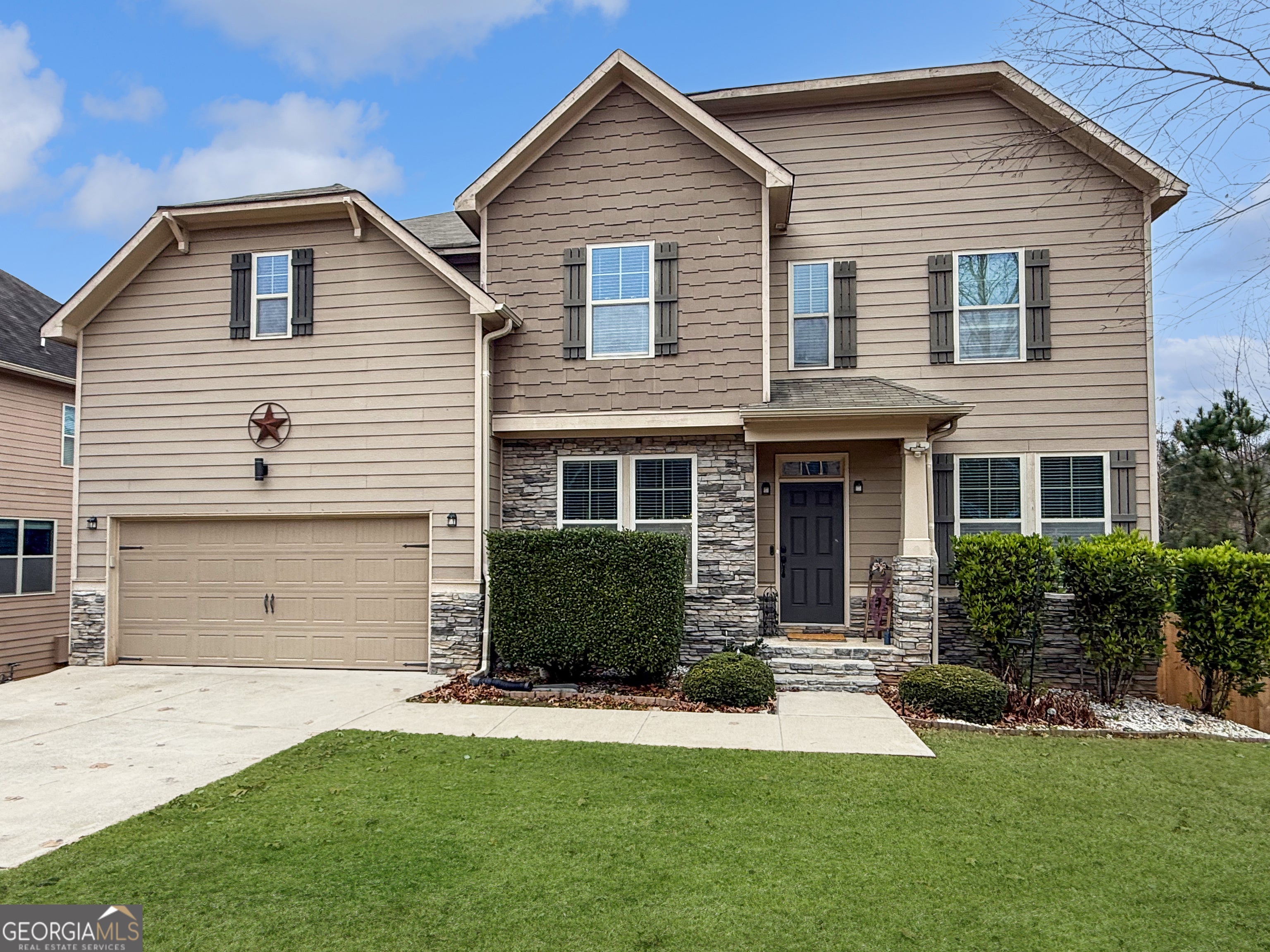 Don't miss your chance to own this beautiful home in one of the most desirable areas near Lake Lanier! Located less than half a mile from Lake Lanier and Buford Dam parks-and just 10 minutes from GA 400-this property offers the perfect balance of tranquility and accessibility to shopping, dining, and outdoor recreation. Built in 2013, the home features an open layout designed for modern living and effortless entertaining. A formal dining room and living room (or office) flank the foyer, leading to a stunning two-story family room with a stone fireplace and built-in bar area. The kitchen is the heart of the home, offering a large granite island, stainless-steel appliances, gas range, walk-in pantry, and a convenient coffee station-ideal for both everyday use and hosting gatherings. A full bedroom suite on the main level provides flexibility for guests or multi-generational living. Upstairs, the spacious owner's suite feels like a private retreat with a luxurious spa-style bath and an expansive closet. Three additional bedrooms offer plenty of space for family, guests, or home office needs. The finished terrace level expands your living space with a large recreation room, oversized bedroom, full bath, and abundant storage-perfect for movie nights, a gym, or teen hangout. Enjoy peaceful evenings and beautiful sunsets from your back deck overlooking a private, wooded backyard. This home combines comfort, location, and functionality-offering everything today's buyers are searching for!