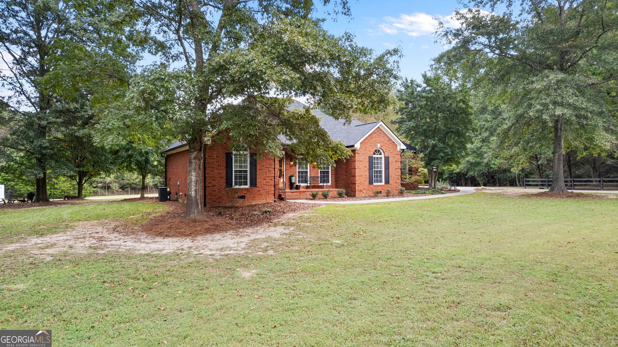 Beautiful all-brick one-level home on 2 acres with open floor plan and updated interior. Features 4 spacious bedrooms, 3 baths, and generous living areas perfect for entertaining. Recent upgrades include brand new roof and gutters, nearly new A/C and hot water heater, and fresh interior paint throughout in 2020. The 4th bedroom has its own bath, sitting area, kitchenette, A/C, and separate entrance...perfect for an in-law suite or an AirBNB rental. The back patio is a private oasis with natural beauty abounding. Enjoy the ease of single-level living with this move-in ready home!