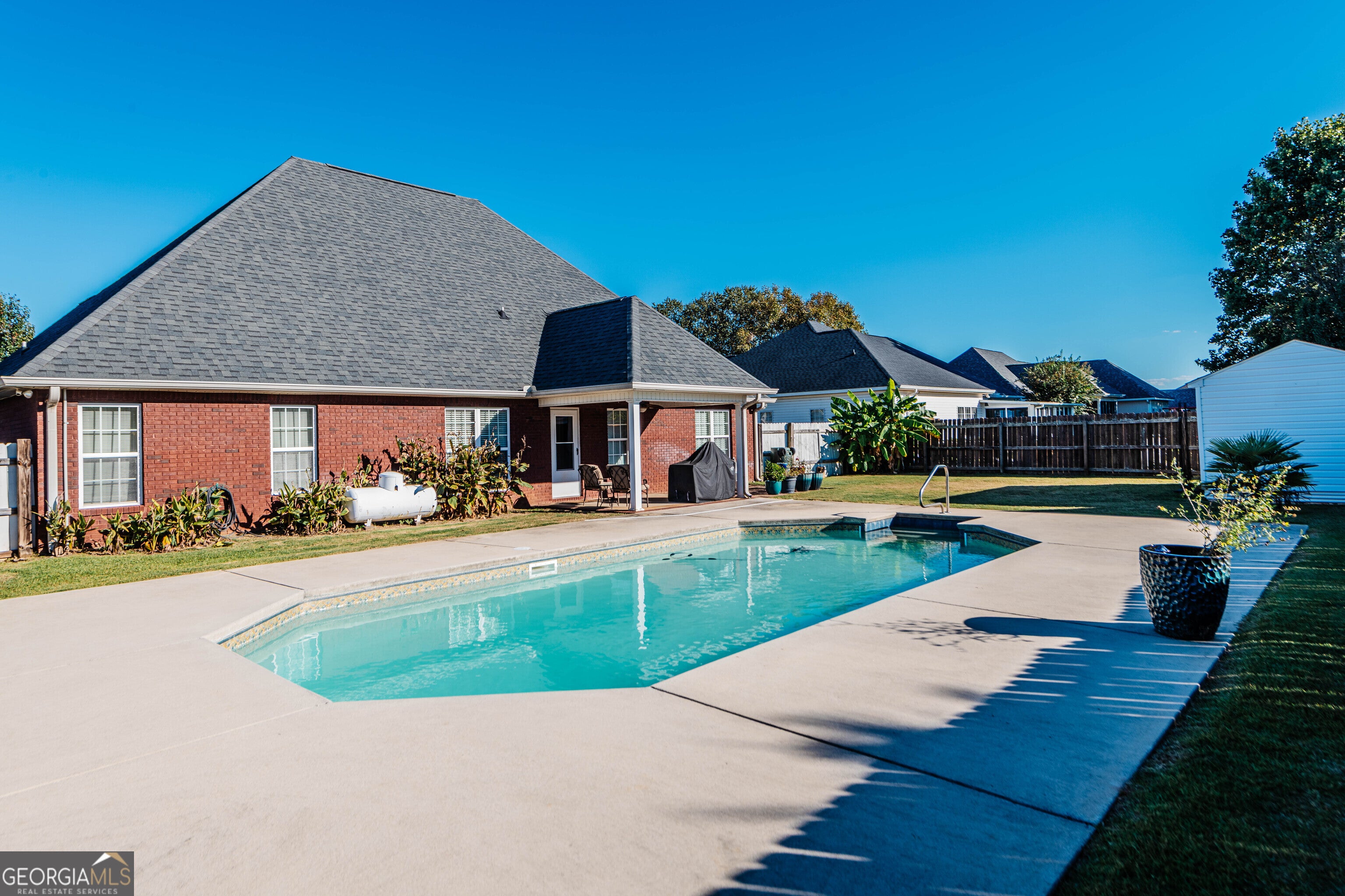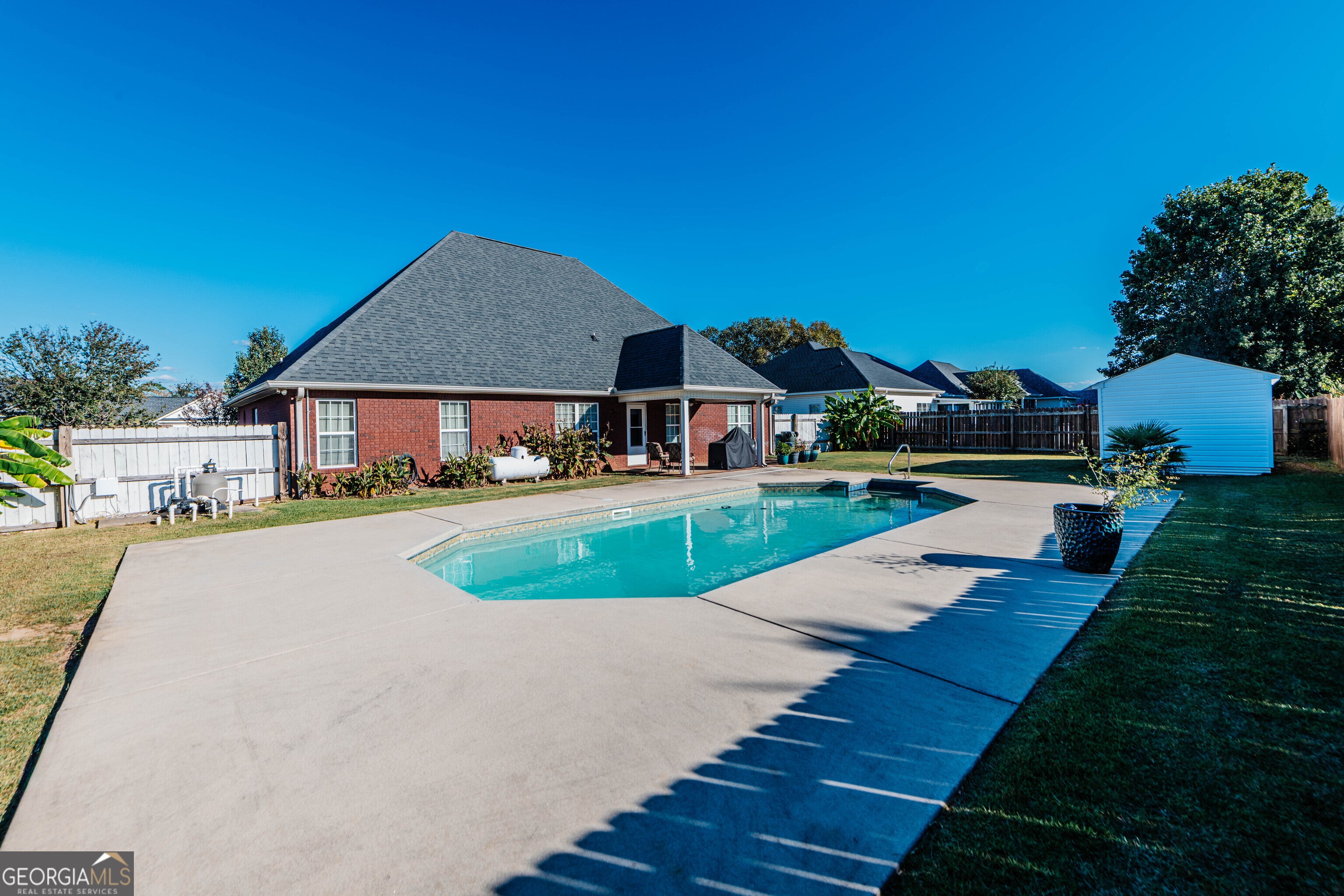 This spacious all-brick home offers 4 bedrooms and 3.5 baths, with NO carpet anywhere - a stylish and low-maintenance choice for busy families. Updates within the past few years include: New flooring throughout, Interior repainted, Updated light fixtures, and Roof and garage door replaced. You'll love the spacious closets in every bedroom, along with a convenient pantry, linen closets, abundant attic storage, and a storage shed for all your extras. Step outside into your private backyard retreat featuring a privacy fence and sparkling inground pool - the perfect way to beat those blazing Southern summers! This home has been well cared for and is ready for you to move in and make it your own. Don't wait - your next chapter starts here!