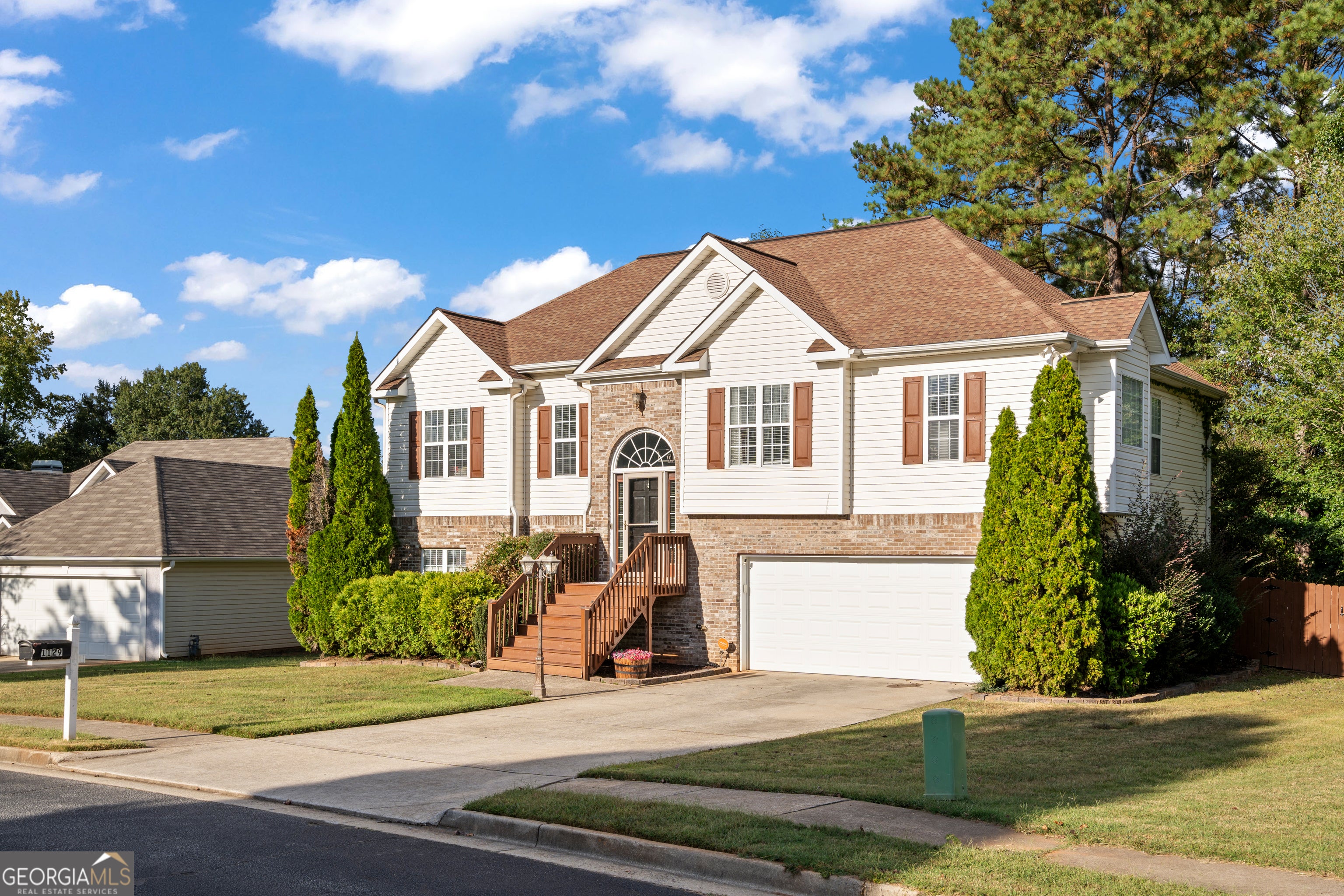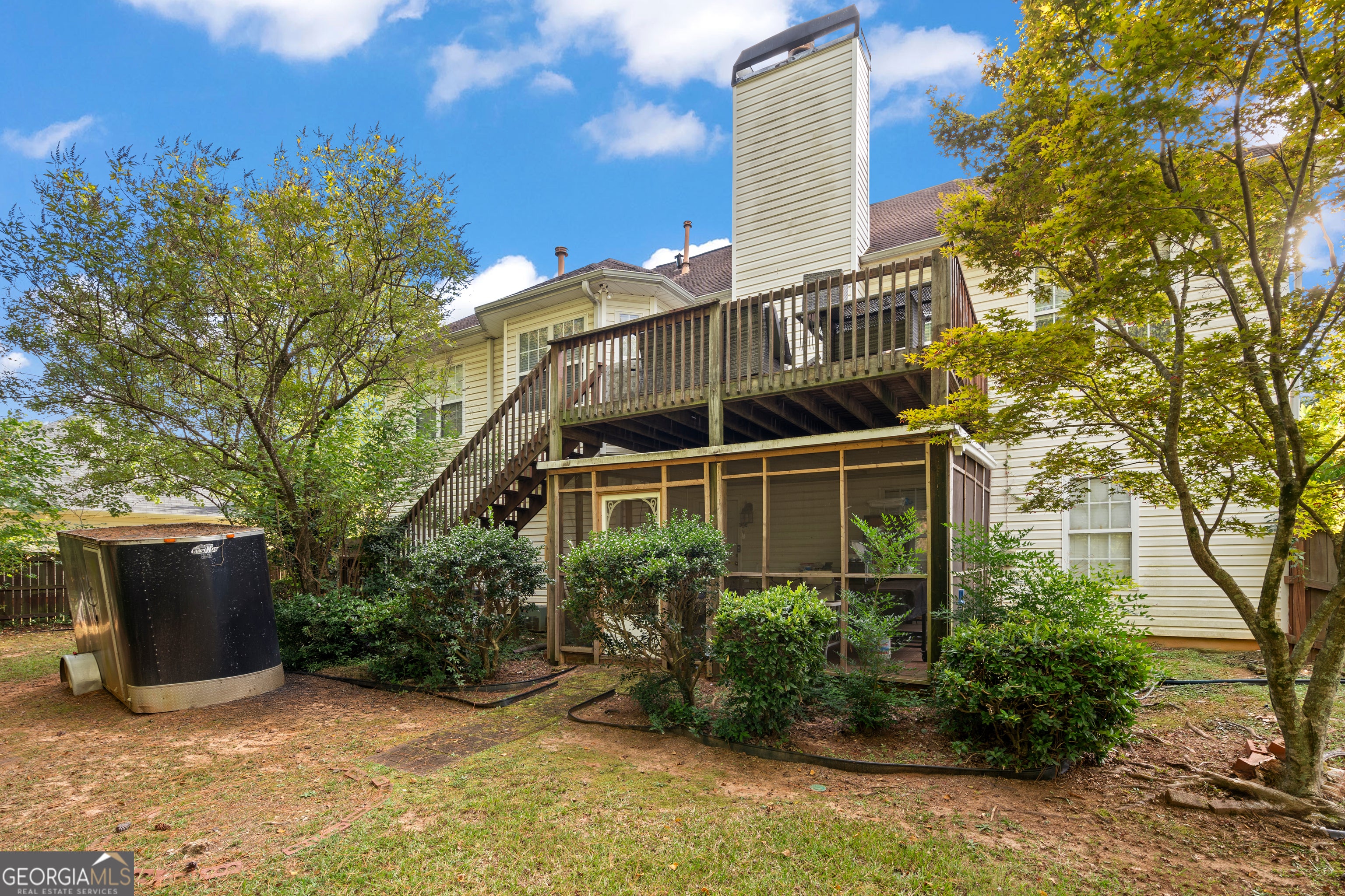 Welcome to this charming split-level home located in a swim and tennis community just minutes from historic McDonough Square, offering an abundance of restaurants, retail shops, and community events. Step into a welcoming foyer, where stairs lead you up to a bright and open family room with vaulted ceilings, creating a spacious and inviting atmosphere. The kitchen overlooks the family room and features cozy breakfast area, perfect for everyday living and entertaining. The primary suite is a peaceful retreat with a walk-in closet, double vanity, a soaking tub, and a separate shower. On the lower level, you'll find two additional bedrooms and a full bath. One of the bedrooms is oversized and ideal as a flex space, perfect for a second living area, media room, or home office. The spacious garage also includes an attached storage room for extra convenience. Enjoy the outdoors with a screened-in porch and an extended deck off the family room, overlooking a partially wooded backyard that offers both privacy and a touch of nature. This home combines comfort, space, and a prime location, don't miss your chance to make it yours!
