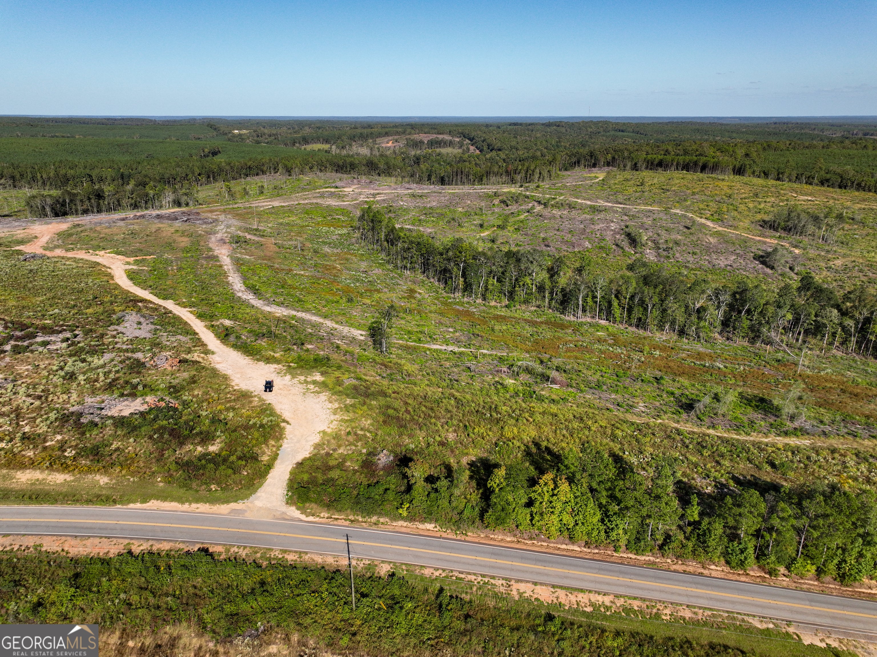 Located just south of Toomsboro, this 70-acre tract offers an excellent opportunity for hunting, recreation, or a future homesite. With frontage along Hwy 112 and power running along the road, the property provides both accessibility and utility options for the next owner. The land was recently clear-cut, creating a blank canvas for wildlife management or personal vision. Whether your plans include replanting with pines, establishing food plots, or creating open pastureland, the groundwork is already in place for you to shape the property to fit your goals. The property features an established internal road system that follows the hilltops of the gently rolling terrain, providing convenient access across the entire tract. Two hardwood bottoms remain intact, offering excellent wildlife habitat, natural forage, and dependable travel corridors. Deer and turkey hunters will appreciate the diversity these areas bring, as hardwoods provide both cover and seasonal food sources. The combination of high ground, bottoms, and connecting roads makes this tract versatile for year-round use. For those considering a homesite, the property's elevation changes and road access open the possibility of multiple building sites with privacy and natural surroundings. Power is available along Hwy 112, reducing the cost and effort of future development. With its combination of cleared acreage, hardwood draws, and access infrastructure, this Wilkinson County property is well-suited as a hunting destination, timber investment project, or rural homestead. Its location near Toomsboro also provides proximity to surrounding communities while maintaining a quiet country setting.