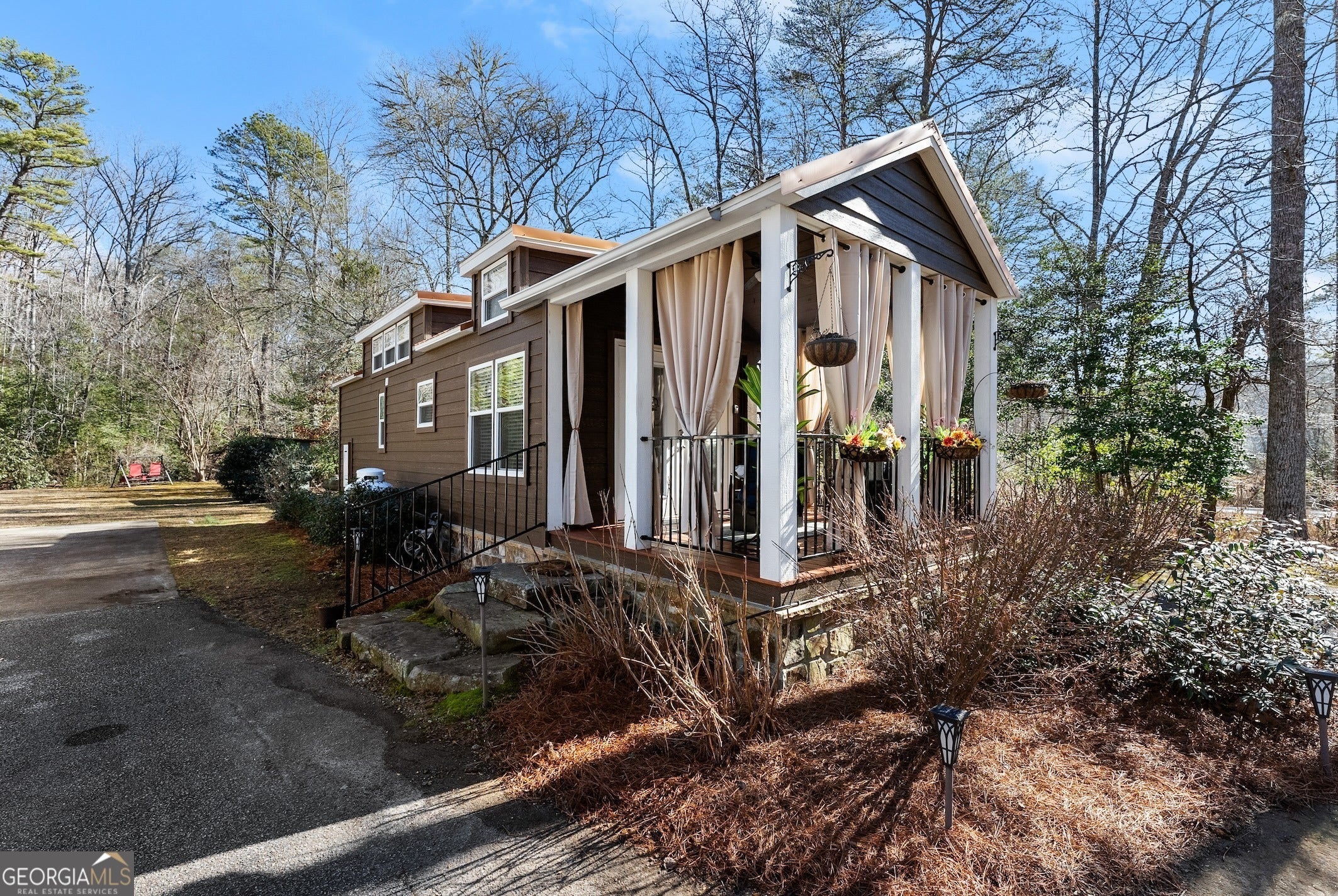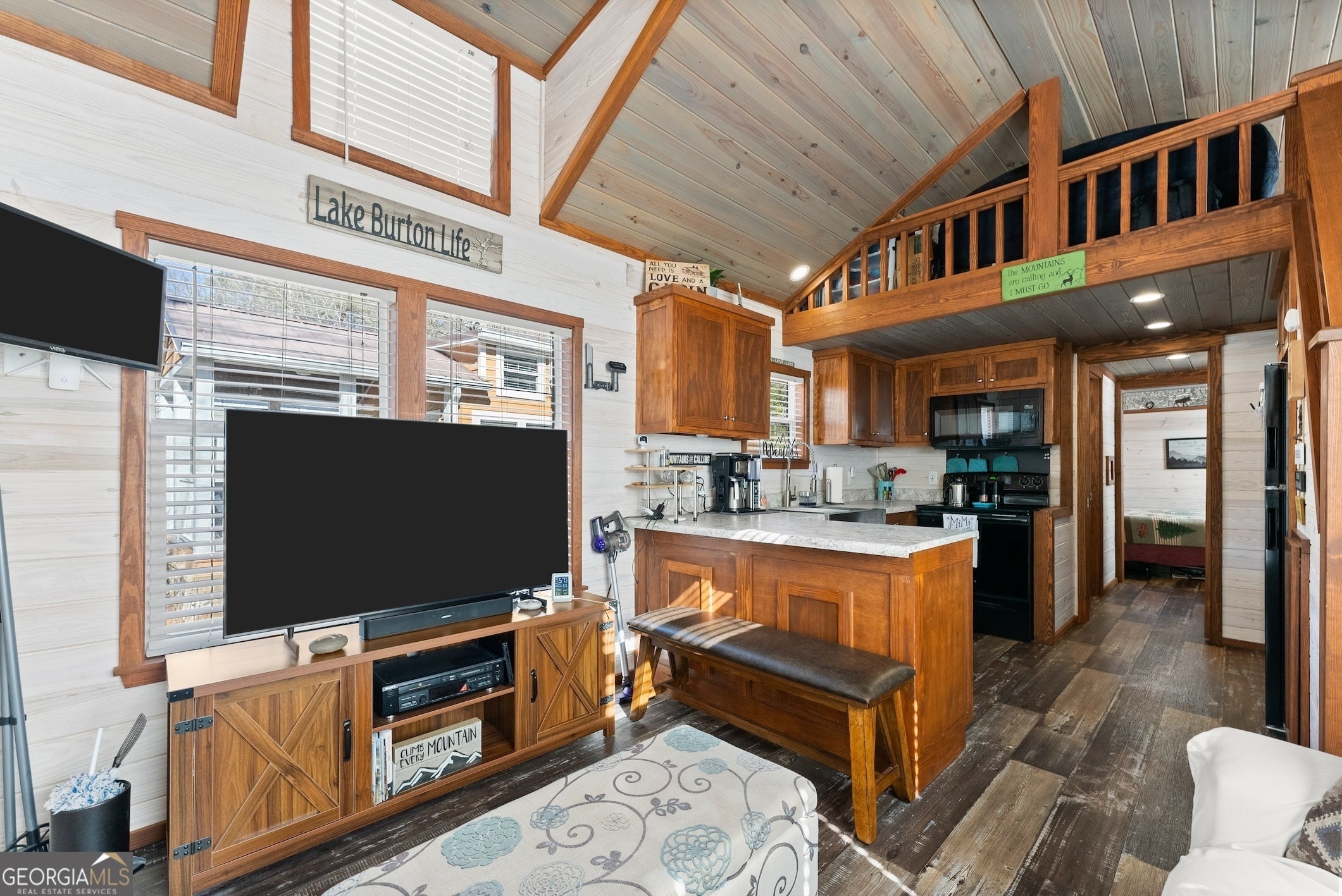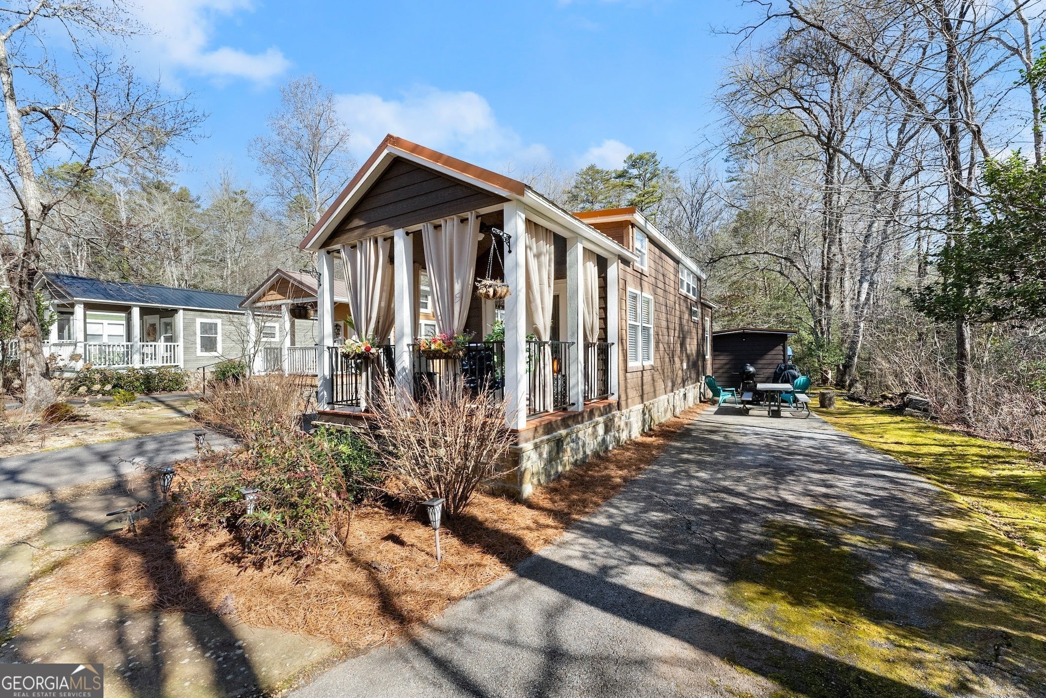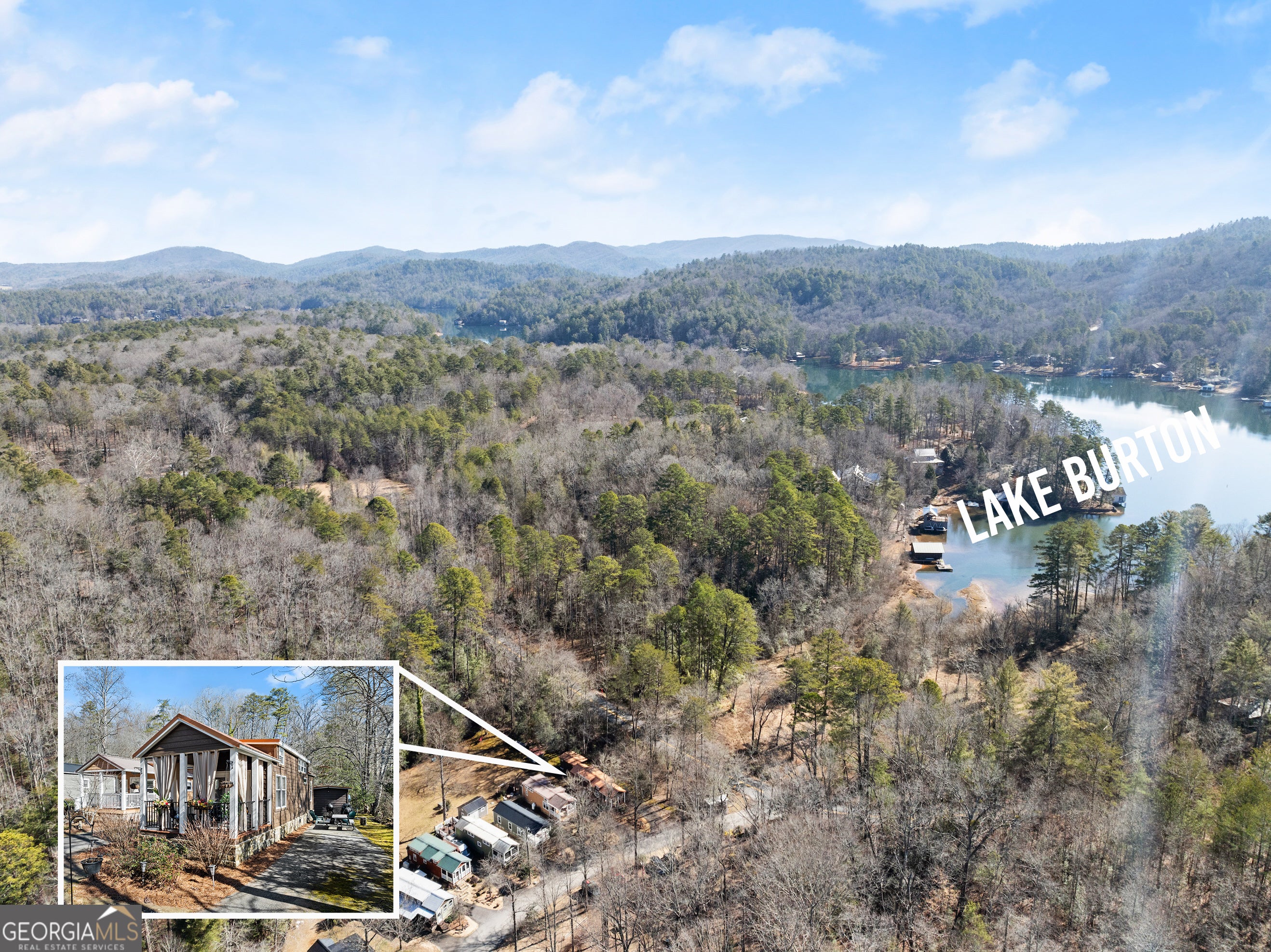 DARLING MOVE IN READY PARK MODEL TINY HOME NEAR HIGHLY DESIRED LAKE BURTON... INCREDIBLE GETAWAY being sold turn key and fully furnished! Charming front porch welcomes you to the spacious living area with abundance of natural light and high ceilings. Open concept design flowing into the kitchen with plenty of counter space and cabinetry for storage. Relaxing owner's bedroom with vaulted ceiling and built in dresser. Upstairs loft currently used as second bedroom could be used as a playroom, plus bunk beds in the hallway affording ample accommodation for your guests. Large lot backing up to a creek, plus storage building is included. Excellent location minutes from Lake Burton and walking distance from renowned Bleu Canoe restaurant. Community features a clubhouse with inviting outdoor area, dog park, fire pits, and picnic areas. Currently used as a vacation home and could be turned into a short term rental or full time residence. BONUS: Brand new HVAC system and Trailwave fiber internet is available. This property is a true must see! Contact our team today for your private tour!