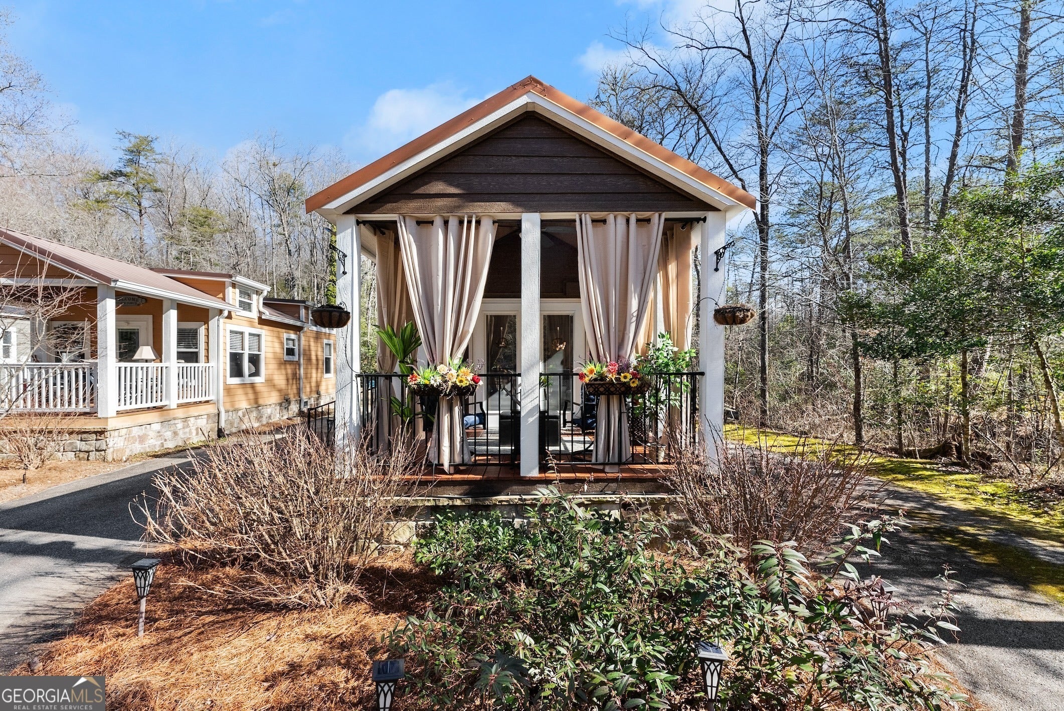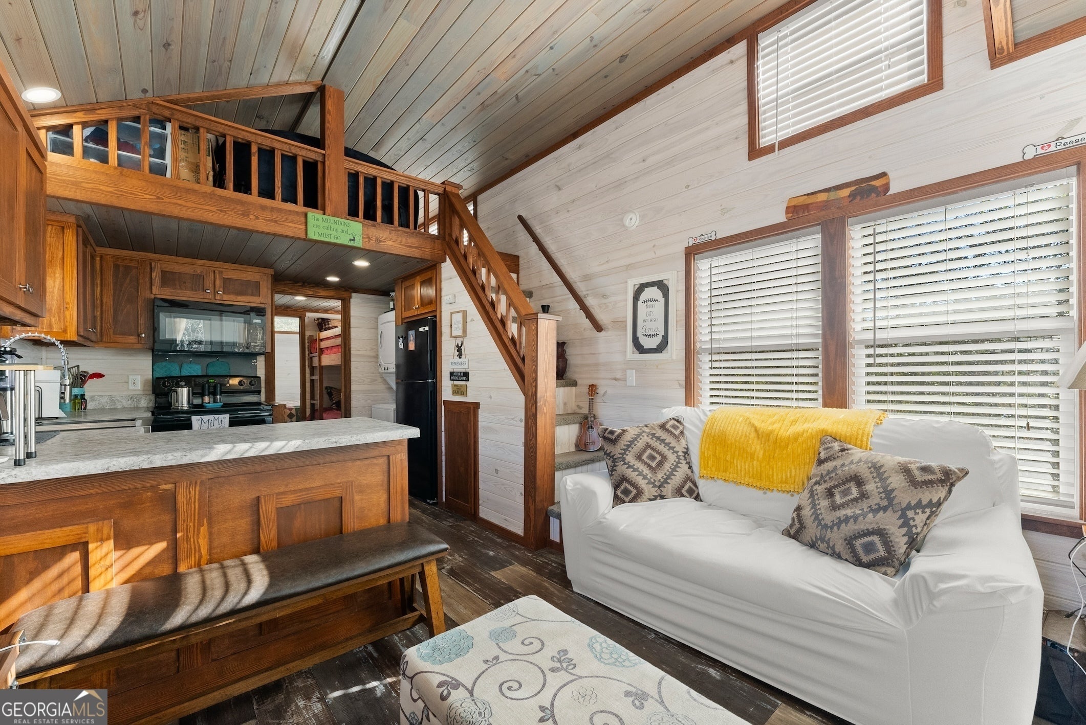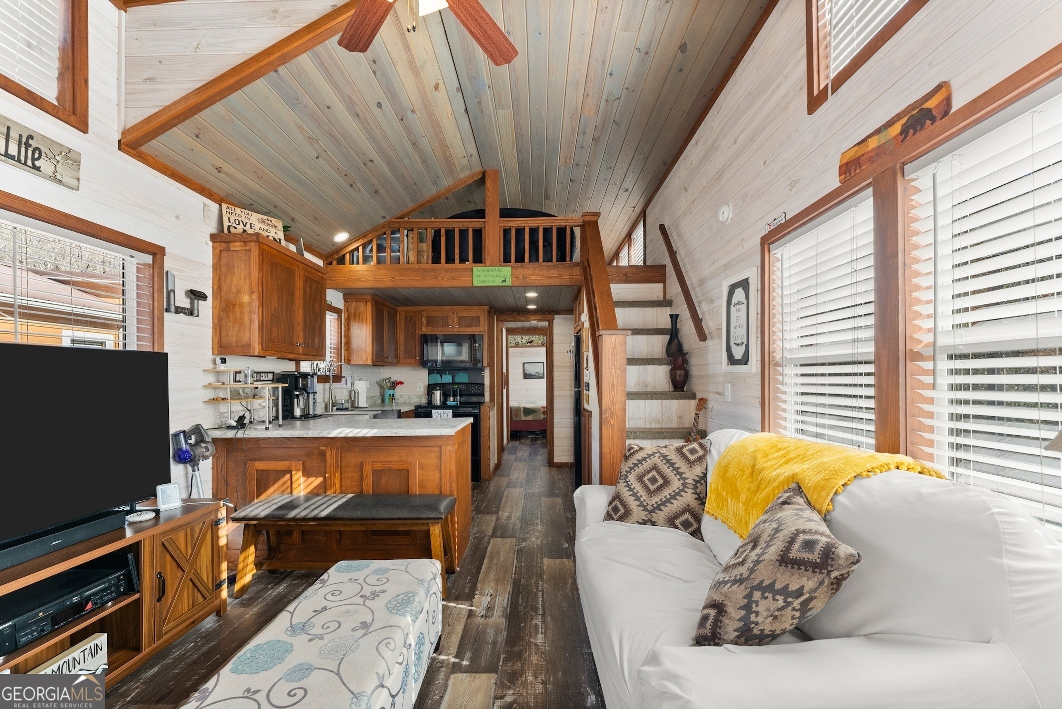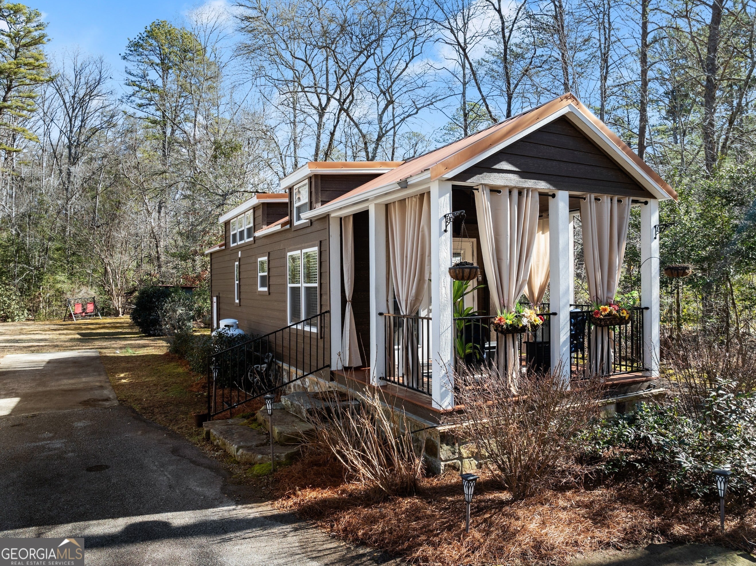 DARLING MOVE IN READY PARK MODEL TINY HOME NEAR HIGHLY DESIRED LAKE BURTON... INCREDIBLE GETAWAY being sold turn key and fully furnished! Charming front porch welcomes you to the spacious living area with abundance of natural light and high ceilings. Open concept design flowing into the kitchen with plenty of counter space and cabinetry for storage. Relaxing owner's bedroom with vaulted ceiling and built in dresser. Upstairs loft currently used as second bedroom could be used as a playroom, plus bunk beds in the hallway affording ample accommodation for your guests. Large lot backing up to a creek, plus storage building is included. Excellent location minutes from Lake Burton and walking distance from renowned Bleu Canoe restaurant. Community features a clubhouse with inviting outdoor area, dog park, fire pits, and picnic areas. Currently used as a vacation home and could be turned into a short term rental or full time residence. BONUS: Brand new HVAC system and Trailwave fiber internet is available. This property is a true must see! Contact our team today for your private tour!