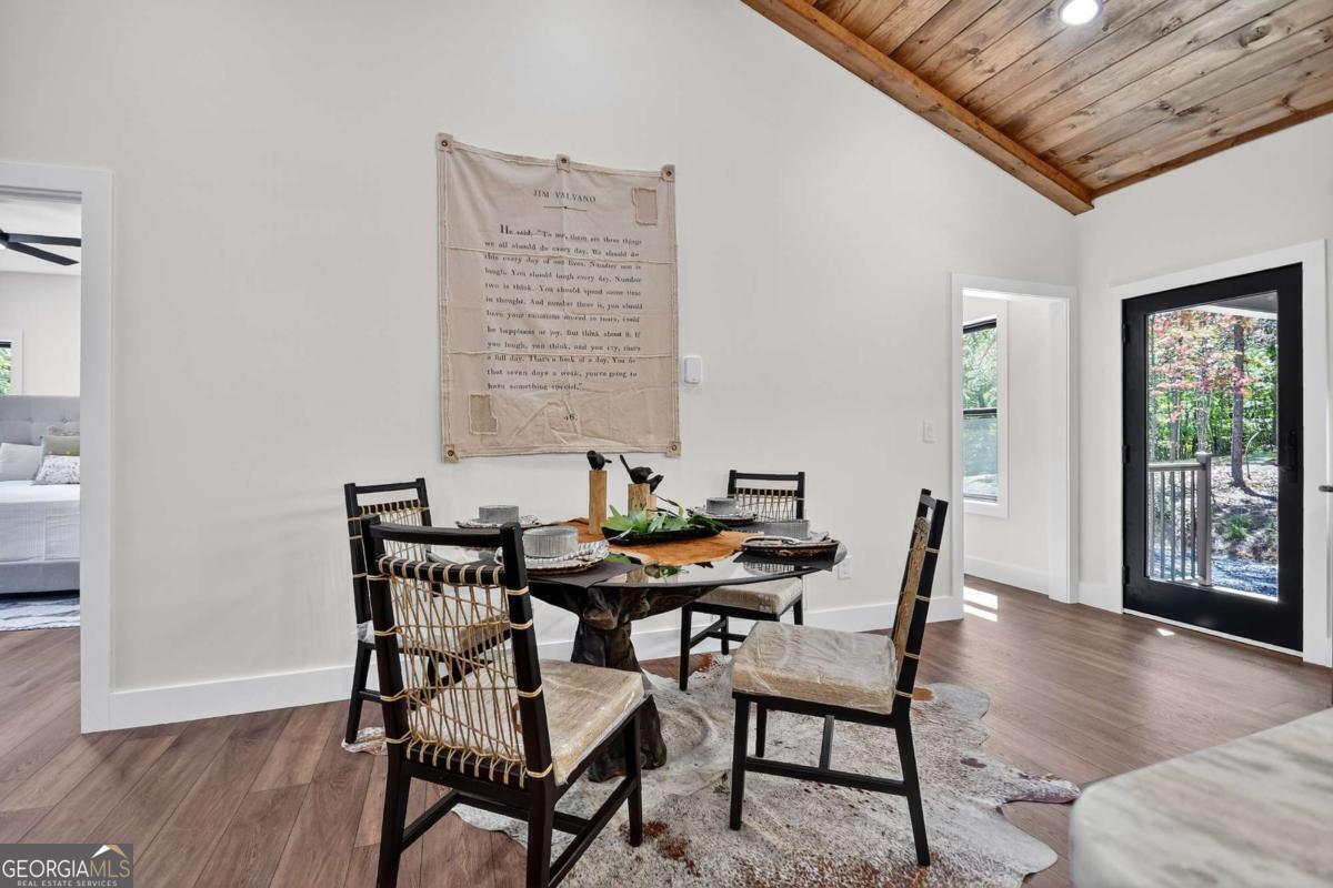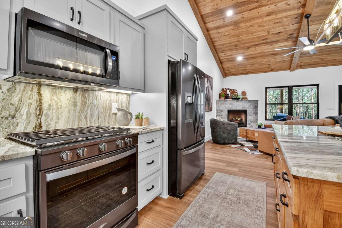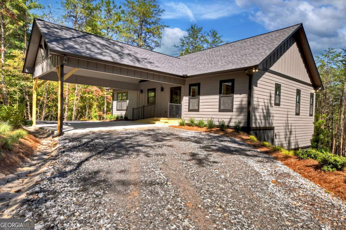 Experience brand-new construction and refined mountain living in this thoughtfully designed single-level residence, perfectly blending modern comfort with timeless appeal. Step inside to a bright open-concept floor plan where the gourmet kitchen takes center stage, complete with a large island, stone countertops, stainless appliances, and custom cabinetry. The dining area flows seamlessly into the living room, anchored by a sleek contemporary gas fireplace, creating the perfect environment for both intimate evenings and effortless entertaining. The indoor living space opens up to the living space outdoors with a large covered deck, where you can enjoy serene views of lush forestry and a private, landscaped yard. The home offers three spacious bedrooms and two designer bathrooms, each curated with custom cabinetry, elegant tilework, and sophisticated lighting. A generous laundry and pantry room adds convenience and function. Designed for ease of living and a low-maintenance lifestyle, the home features wheelchair accessibility, a circular drive, professional landscaping, and an attached two-car carport. Under the home is a standing level crawlspace for plentiful storage. Just moments from Downtown McCaysville, Blue Ridge, and all the recreation, dining, and lifestyle amenities of North Georgia, this property offers both practicality and luxury. Professionally staged and offered with furnishings available for separate purchase, this move-in-ready retreat is an exceptional opportunity. Additional acreage may also be acquired, creating the option to expand your private mountain haven. Call today for an exclusive tour!