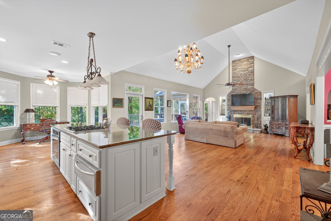 If PRIVACY, space for your HORSES to roam, and a beautiful RANCH on a FINISHED basement with an ELEVATOR are on your wish list... this property delivers it all! Nestled on just under 7 ACRES of peaceful countryside, this GATED retreat is perfect for animal lovers and those seeking a serene lifestyle. The property includes a BARN with two STABLES and a fenced PASTURE, offering the ideal setup for horses, farming and exploring. Inside, you'll find an inviting, open floor plan with gleaming HARDWOOD flooring throughout the main living areas. The spacious great room features a stunning stack-stone fireplace, perfect for the whole family to gather around on those cozy nights and the high ceilings allow for that 20-foot Christmas tree! The chef's kitchen sits at the heart of the home and boasts granite countertops, a tile backsplash, stainless steel appliances (including a warming drawer), and a LARGE ISLAND with seating. Adjacent to the kitchen is the formal dining room that can easily sit 12 or more. So much character throughout with crown moulding, chandeliers, a wet bar and picture windows that bring in so much NATURAL LIGHT. Step outside to enjoy the expansive deck or SCREENED-IN covered porch, both perfect for outdoor entertaining or relaxing under the stars. There's even a natural gas line ready for your grill. The oversized primary suite on the main level is a true retreat, offering TWO SEPARATE BATHROOMS! I mean, WOW!! Take the elevator down to the finished basement which provides incredible versatility with two additional bedrooms, two full bathrooms, a SECOND KITCHEN (that can easily be expanded), and a flex room that could serve as a family room, office, or gym. You'll also find a cozy fireplace, ample storage and exterior access to the backyard. Notable updates include two new hot water heaters and the roof was replaced in 2019. With space, function, and privacy, this property offers the perfect blend of country living with modern convenience-close to shops, restaurants, and major highways for commuting convenience. Minutes to Crystal Falls golf course. This gated and private property is truly one of a kind-ready to welcome you home!