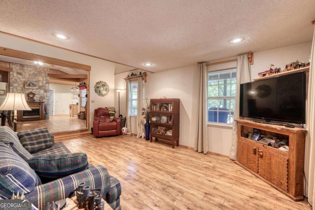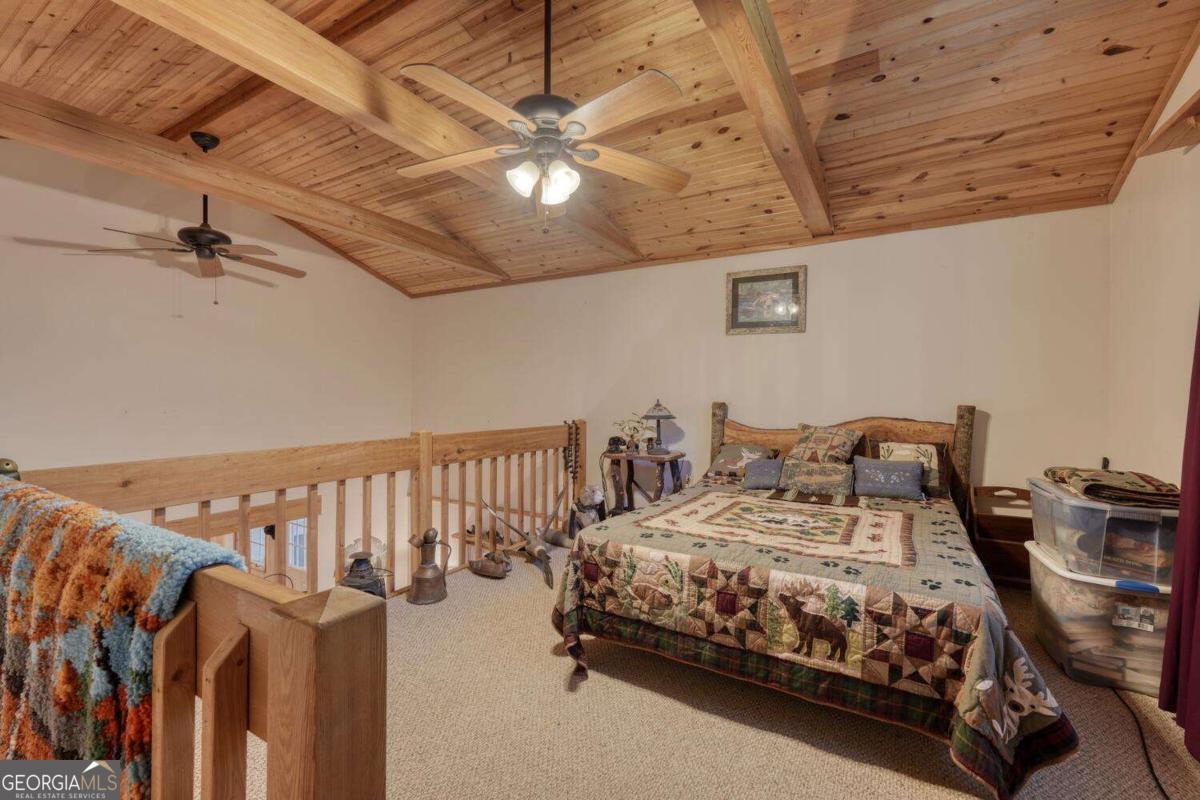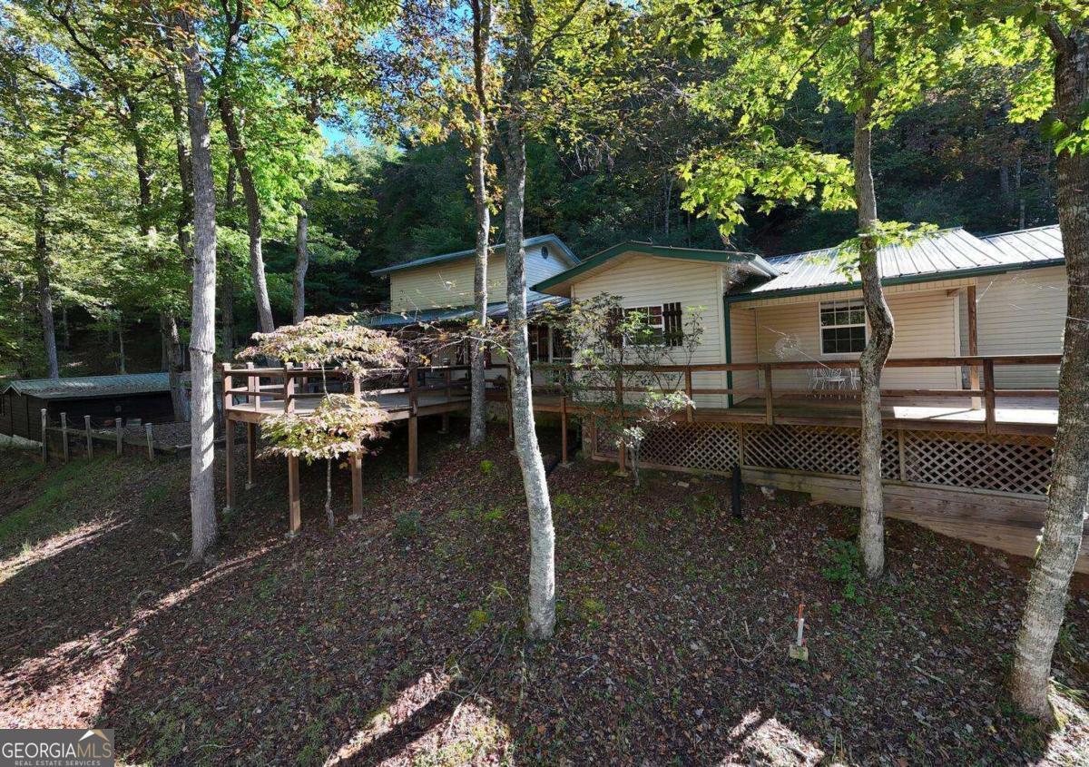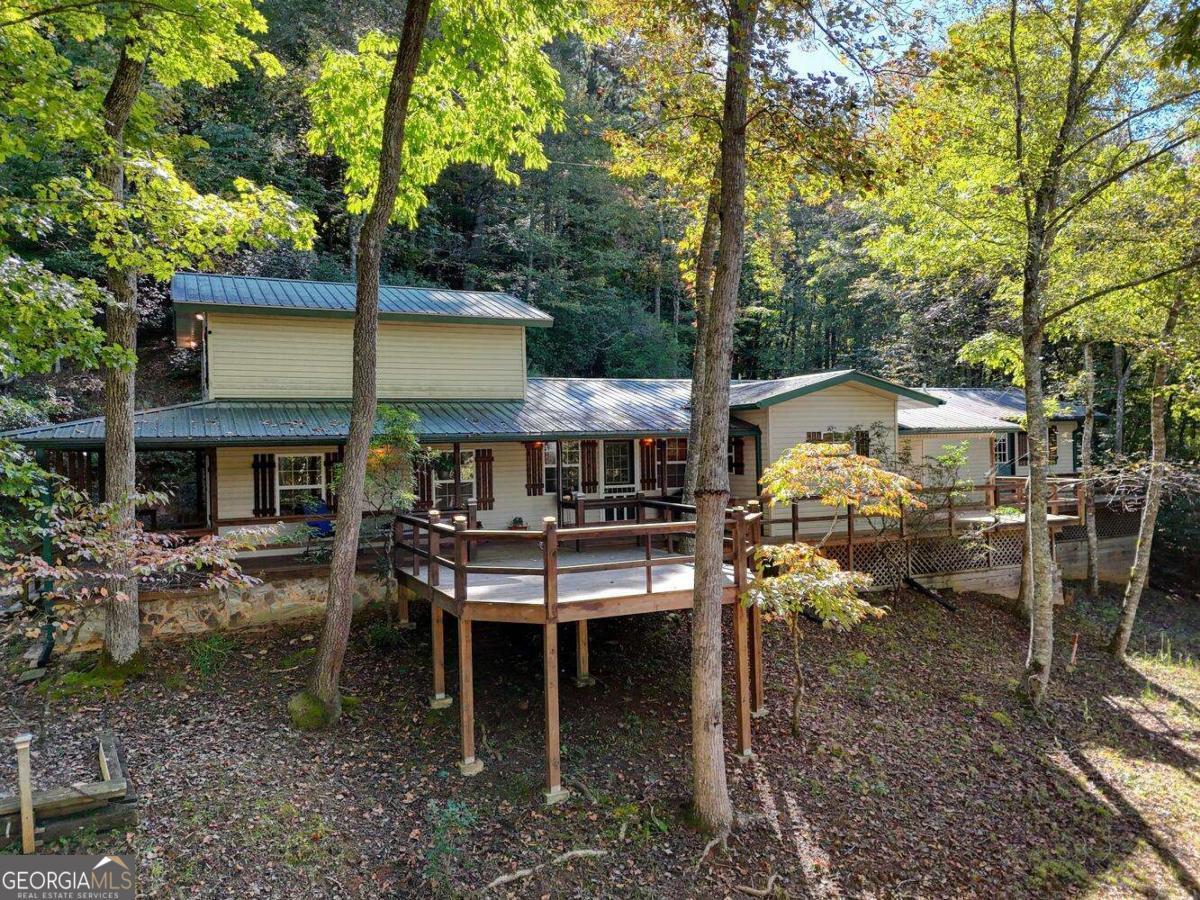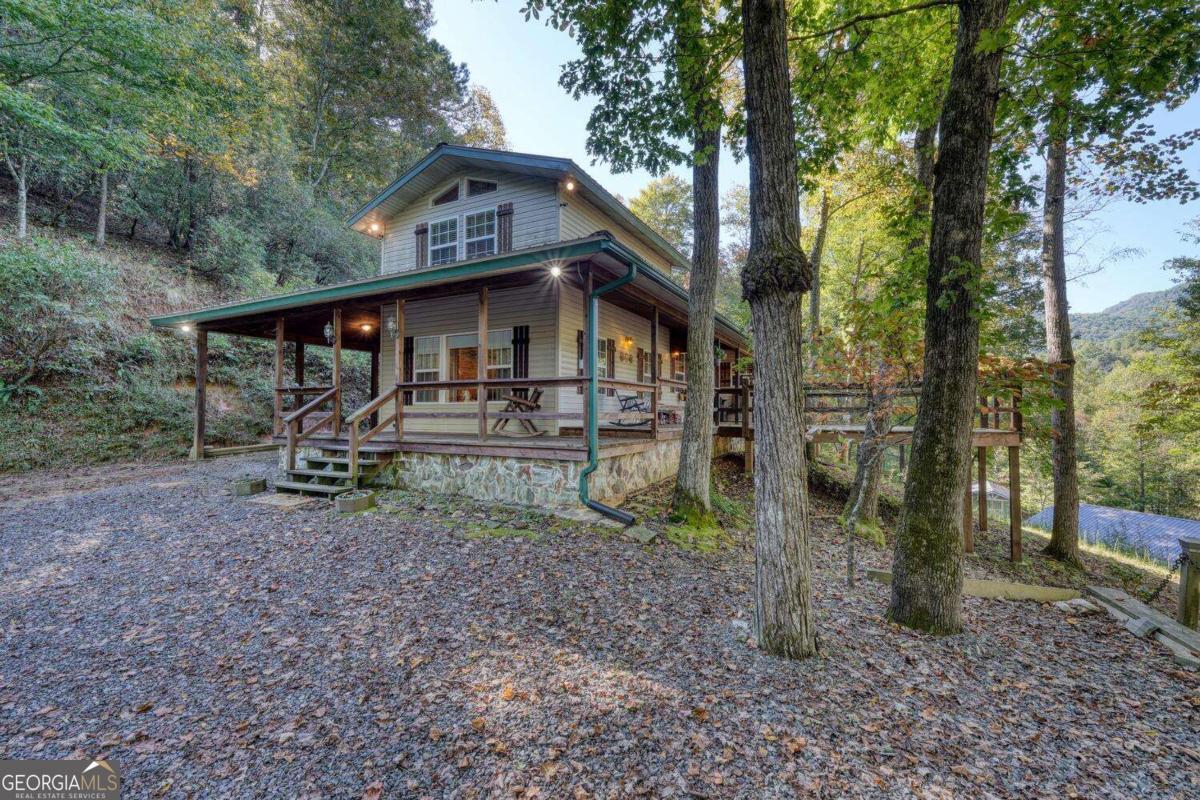 COME TO THE MOUNTAINS OF NORTH GA TO ENJOY THIS 3 BEDROOM, 3 BATH HOME ON 6.5 UNRESTRICTED ACRES, corners with USFS, Jones Branch flowing through Small Pond. Covered Porch to enjoy the Wildlife, Deer, Turkey and other animals also call this home. Spacious Kitchen with lots of cabinets, prep bar. Great Room with lots of Windows that frame the mountain views and for natural lighting. Dining Room with Gas Fireplace opens to Great Room. Two spacious bedrooms with two full baths, laundry room, loads of extra storage. Loft Bedroom. Bring your RV, 24 x 32 RV Shed with power and water hookups. Workshop with power, Very Private and Peaceful!! Also has extra area could be used for camp sites.