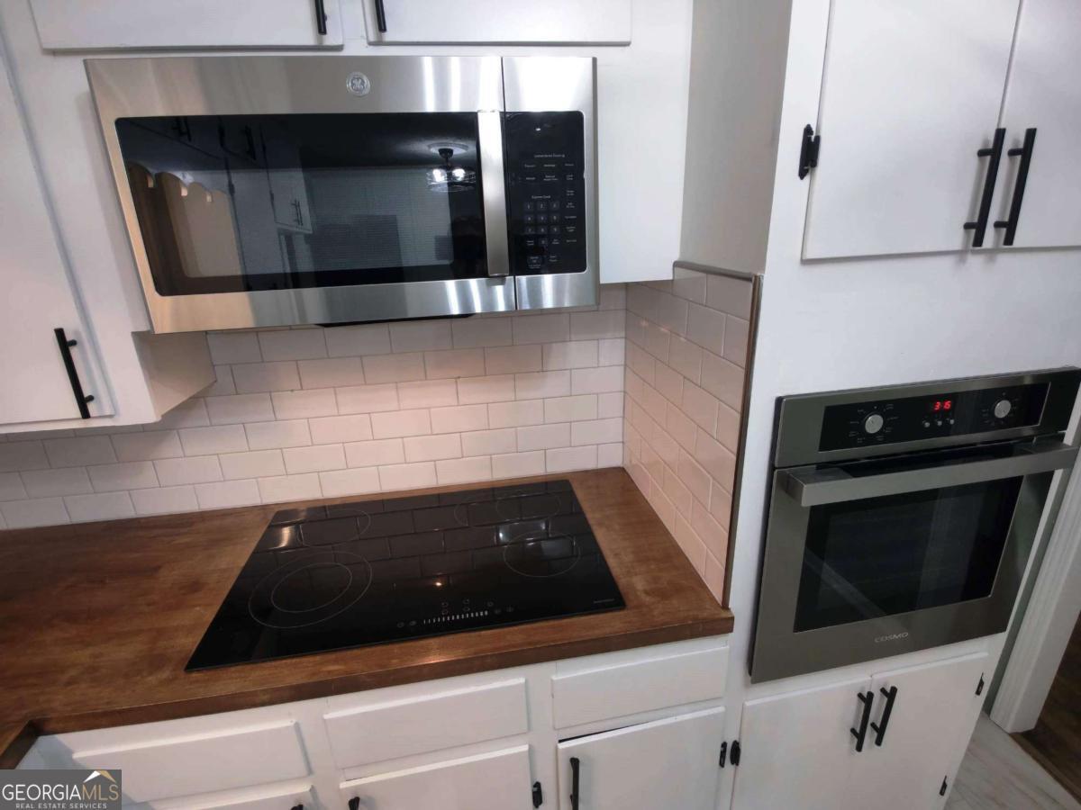 - AppliancesCooktop, Dishwasher, Electric Water Heater, Microwave, Oven (Wall), Stainless Steel Appliance(s)
