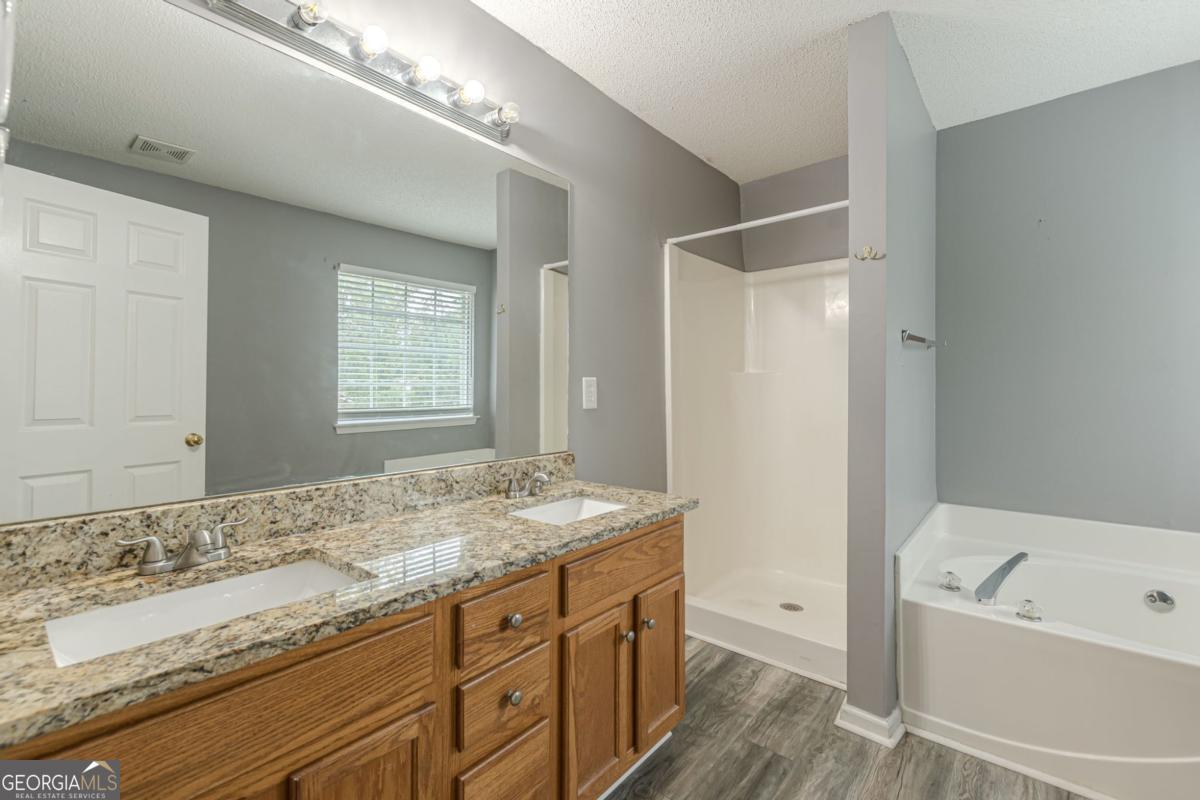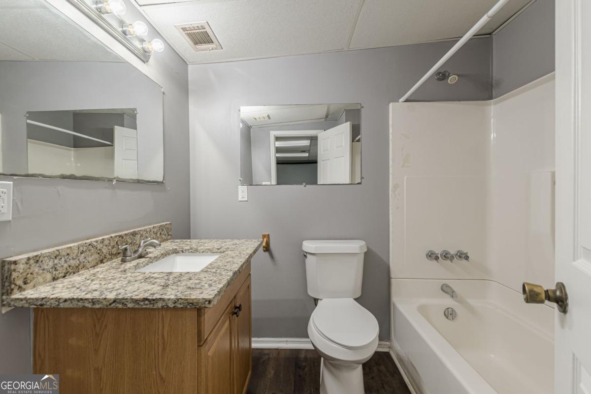 DON'T MISS THIS OPPORTUNITY..100% Financing with a min credit score of 636, No PMI, Buyer must contribute $500. This impressive split-floor plan is perfect for a growing or multigenerational family. With four bedrooms and three full baths, this home offers space and flexibility to meet a variety of needs.The main level features a welcoming family room with a gas fireplace, a separate dining room, and an eat-in kitchen with granite countertops. The generous owner's suite and two additional bedrooms provide comfortable, functional living on the main floor. The lower level includes a secondary family room, a bedroom with a walk-in closet and full bath, a laundry area, a two-car garage, and a storage room. Outdoors, the level backyard and deck create an ideal space for relaxing or entertaining. Whether you're seeking a spacious home to grow into or a smart investment opportunity, this property offers exceptional versatility in a great location. One of the Seller's is a licensed real estate agent in the state of Georgia, acting as Principal.