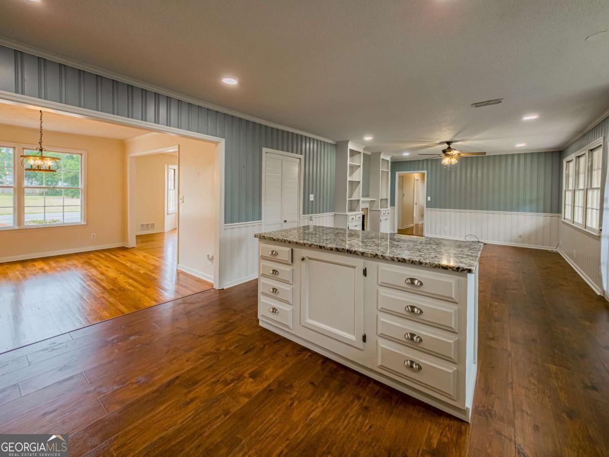 Welcome to Fitzgerald, GA - a charming small town known for historic brick streets, free-roaming chickens, and timeless Victorian homes. This property blends classic character with modern convenience, perfect for families or retirees. A private driveway leads to a new two-car carport. Enjoy mornings on the enclosed porch or retreat to the attached studio apartment with full bath-ideal for guests, a home office, or hobby space. Inside, the updated kitchen boasts granite countertops, stainless steel appliances, and an open layout flowing into the cozy keeping room. The front features a formal dining room and spacious family room with gas log fireplace. Beautiful hardwood floors run throughout. Down the hall are three large bedrooms and two full baths. The low-maintenance yard offers outdoor ease without the hassle. Close to Fitzgerald's unique downtown, this move-in ready home is ready for its next chapter. Schedule your private showing today!