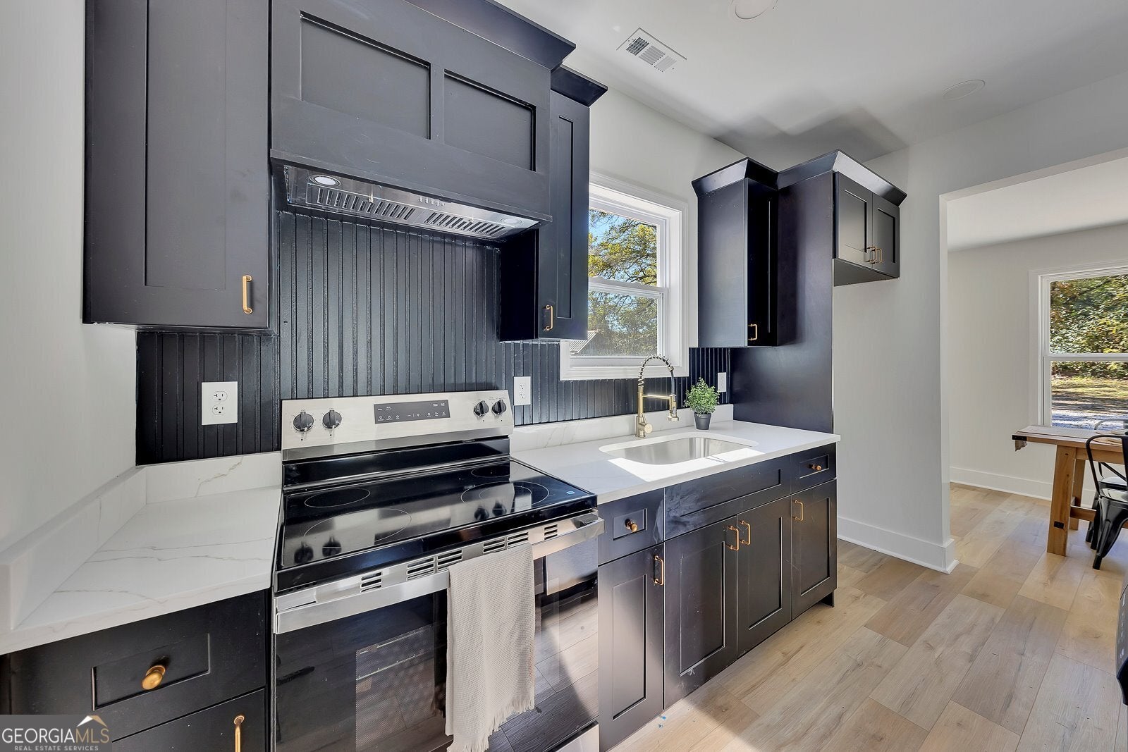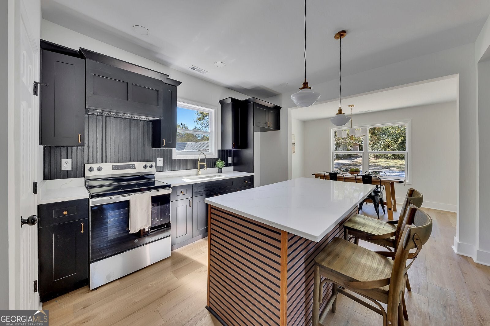 Step into this fully renovated two-story gem in the heart of downtown Cartersville, where modern comfort meets timeless charm on a spacious double lot. From the moment you arrive, the fresh exterior impresses with a brand-new roof, sleek new siding, energy-efficient windows, and a welcoming oversized front porch perfect for morning coffee or evening relaxation. Inside, every detail has been thoughtfully upgraded-including new insulation, all-new drywall, updated electrical and plumbing systems, and a brand-new HVAC-for worry-free living. The open-concept floorplan flows effortlessly across rich LVP flooring, leading you into a striking kitchen adorned with bold dark cabinetry, gleaming quartz countertops, a large center island, and a walk-in pantry, creating a visually stunning and functional space ideal for entertaining. The main level features a serene primary suite with a spa-like full bath, along with an additional full bathroom and a convenient laundry area. Upstairs, you'll find three spacious bedrooms and a beautifully finished full bath, offering comfort and privacy for family or guests. Outside, the large, level, and private lot offers room to relax, play, or even expand, making this home a rare find that blends new construction quality with classic Southern style. Schedule your showing today!!