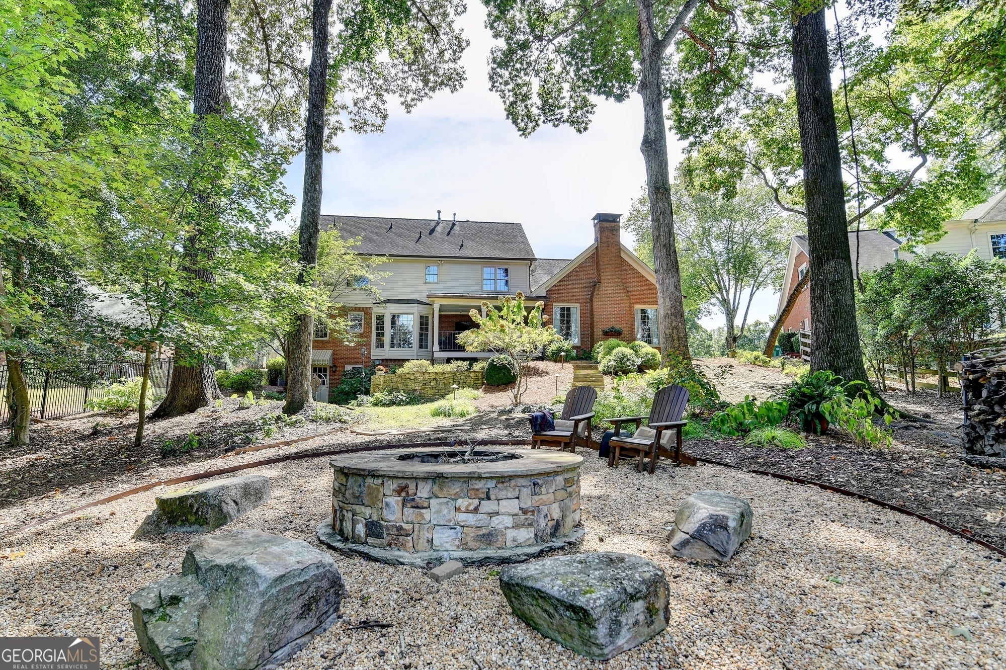 This beautifully transformed home is waiting for you - lovingly updated with soft neutral paint colors, elegant finishes, and thoughtful lighting in every room. This home feels warm and inviting from the moment you walk in. One of the most impressive features is the outdoor space, where a spacious covered porch overlooks a backyard with extensive stonework, a winding stone pathway, and a cozy firepit perfect for gathering. Other recent upgrades include a new driveway with brick inlay and Jeldwen windows throughout. Inside, hardwood floors lead from the foyer to a dining room and a den, both with elegant molding. The den features French doors and can also work as an office. Beyond the foyer you will find an eat-in kitchen with fantastic views of the backyard. This Chef's kitchen has hardwood flooring, beautiful stone countertops, pantry closet, center island, double self-cleaning convection ovens, and a built-in desk. The kitchen flows into a vaulted Great Room with a floor-to-ceiling brick fireplace and direct access to the covered porch and backyard. The spacious main floor laundry room features travertine flooring, a linen closet, and a sink. The updated powder room has upgraded tile flooring and a vanity with a granite countertop and vessel sink. Upstairs you will find hardwood flooring throughout the hallway plus a separate linen closet. The Primary bedroom features a tray ceiling and dual custom closets. The remodeled Primary bath has porcelain tile flooring, a beautiful soaking tub, a separate shower, separate vanities with granite countertops, and a linen closet. Three secondary bedrooms all have walk-in closets, one with a custom closet. The shared hall bathroom has a granite countertop. A back staircase adds extra convenience. The unfinished terrace level is ready for your vision. The owners created custom design plans for a future remodel and are happy to share them. River Station is an active swim/tennis community located along the Chattahoochee River with 4 lighted tennis courts, 3 pickleball courts, a pool, a playground, and year-round community events. Top rated schools include Simpson Elementary and Paul Duke STEM High and this home is convenient to a number of private schools including Wesleyan, Greater Atlanta Christian, Cornerstone Christian, Providence, and Davis Academy. Peachtree Corners has it all with fantastic shopping and dining, parks along the Chattahoochee River, and concerts and community events throughout the year. Come see all this home has to offer.