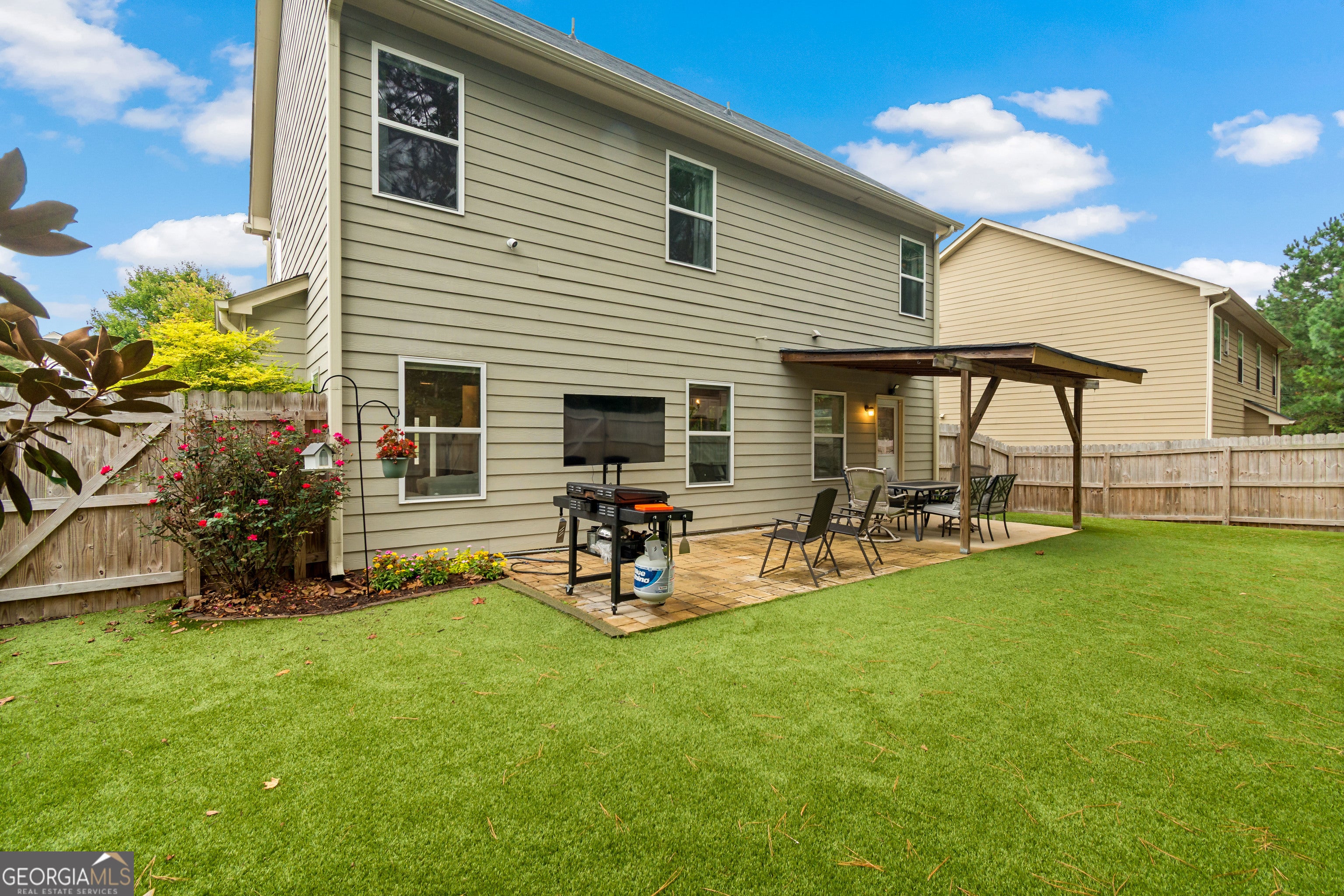 Welcome to 6458 Pierless Avenue - a beautifully maintained home in the heart of Sugar Hill! This spacious 3-bedroom, 2.5-bath residence perfectly blends comfort, style, and convenience. Step inside to a bright, open floor plan featuring a welcoming foyer, a guest half bath, and an expansive living area that flows seamlessly into the dining room and kitchen - perfect for entertaining! The kitchen is a chef's delight with a large island, granite countertops, stainless steel appliances, and a walk-in pantry. Upstairs, you'll find three generously sized bedrooms, including a serene owner's suite with a private bath, plus a versatile bonus room ideal for a home office, media room, or play area. Enjoy the outdoors with a completely turfed backyard for low-maintenance living, a privacy fence, patio, and covered deck - ideal for relaxing or hosting gatherings year-round. Located in a vibrant community with sidewalks, a pool, and a playground, this home offers the perfect blend of modern living and neighborhood charm. Conveniently situated near top-rated schools, shopping, dining, and entertainment in Sugar Hill!