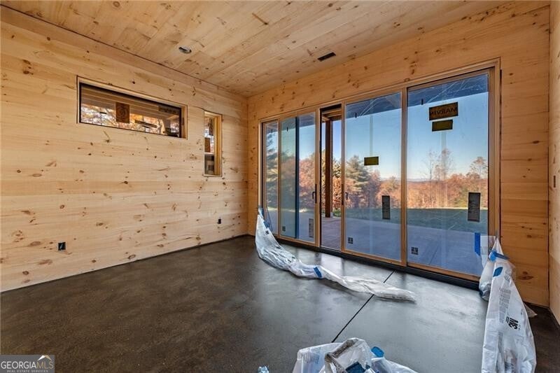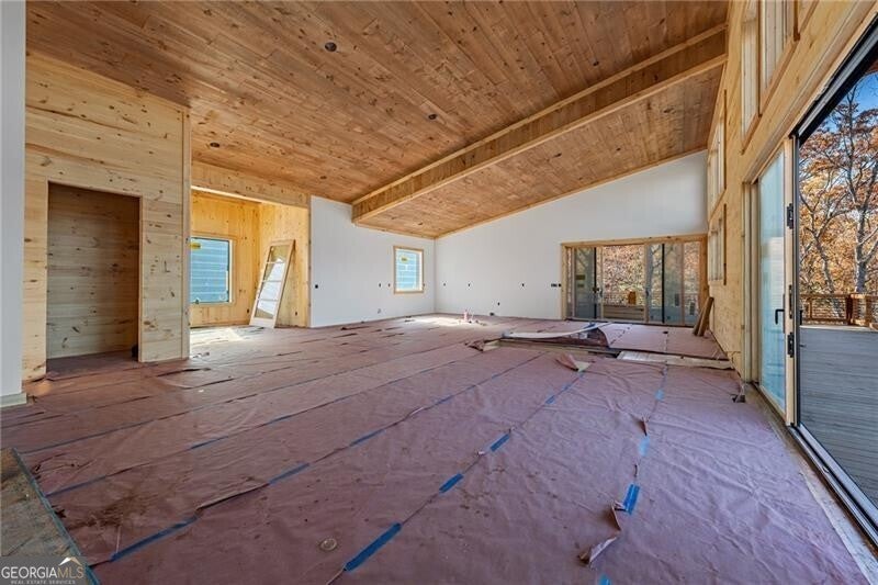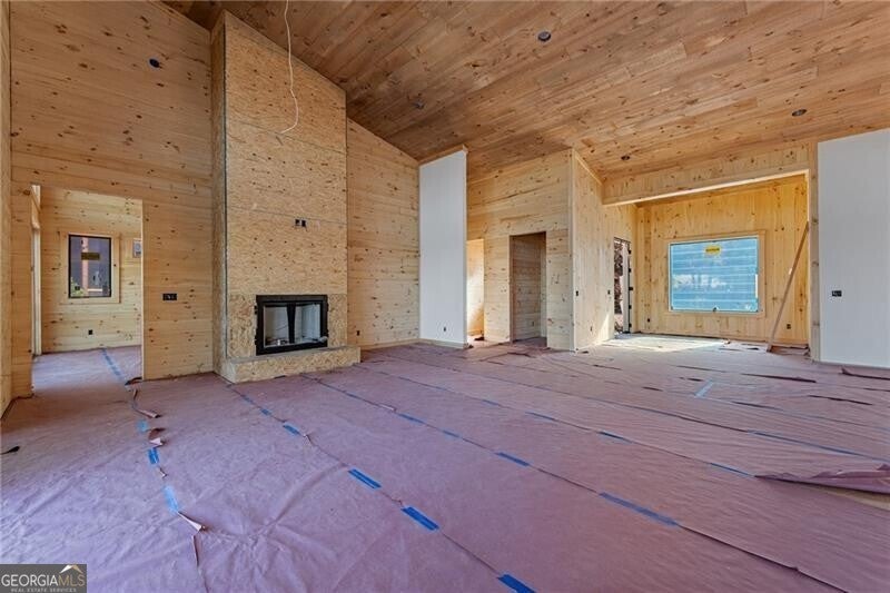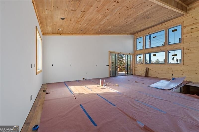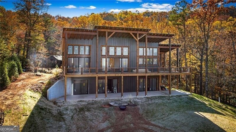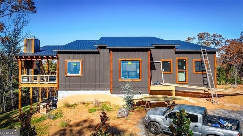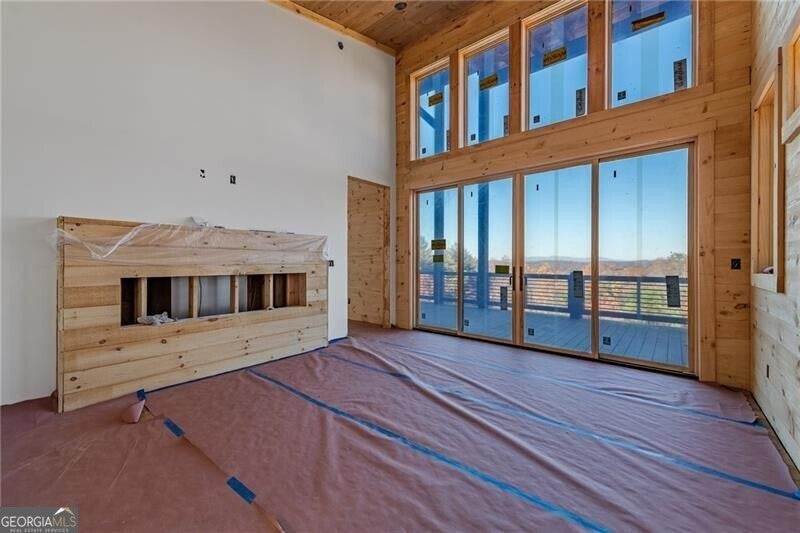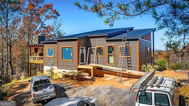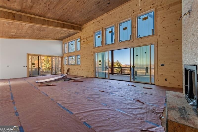 Acreage of Awesome: 3 Acres of Mountain Modern Magic Awaits Imagine waking to birdsong and a soft breeze, your view sweeping across 3 acres of rolling hills where the Blue Ridge Mountains seem to bow in greeting. This new build almost complete 4-bedroom, 3.5-bath Mountain Modern haven is like a warm mountain embrace-fully furnished with high-end touches upon completion, ready for your sky-high adventures. The gentle lot offers endless options: a croquet lawn, pickleball court, mini-golf course, or private pool. Enter to hardwood floors blending with Wood and Drywall for a natural feel. The kitchen shines with quiet high-end appliances, cool granite counters, custom cabinetry for easy organization, and a pantry big enough for a wine collection. It connects to a spacious dining area for shared meals, leading to the great room's gas log fireplace and wall of windows flooding the space with long-range views. Head outside to the generous deck and exterior fireplace for storytelling under the pines, with the land inviting your ideas on those soft slopes. The terrace level adds that extra layer of comfort: A versatile den/media lounge complete with a wet bar for casual cocktails and binge-watching sessions, a second primary suite designed for quiet downtime, and two bright guest bedrooms sharing a luxurious bath with relaxing amenities and natural light. A quick 5-mile drive to Blue Ridge's eats, music, and river paths, this spot launches your Appalachian outings. Why limit to square feet when acres of wonder wait, almost yours? Your mountain base calls-jump in!