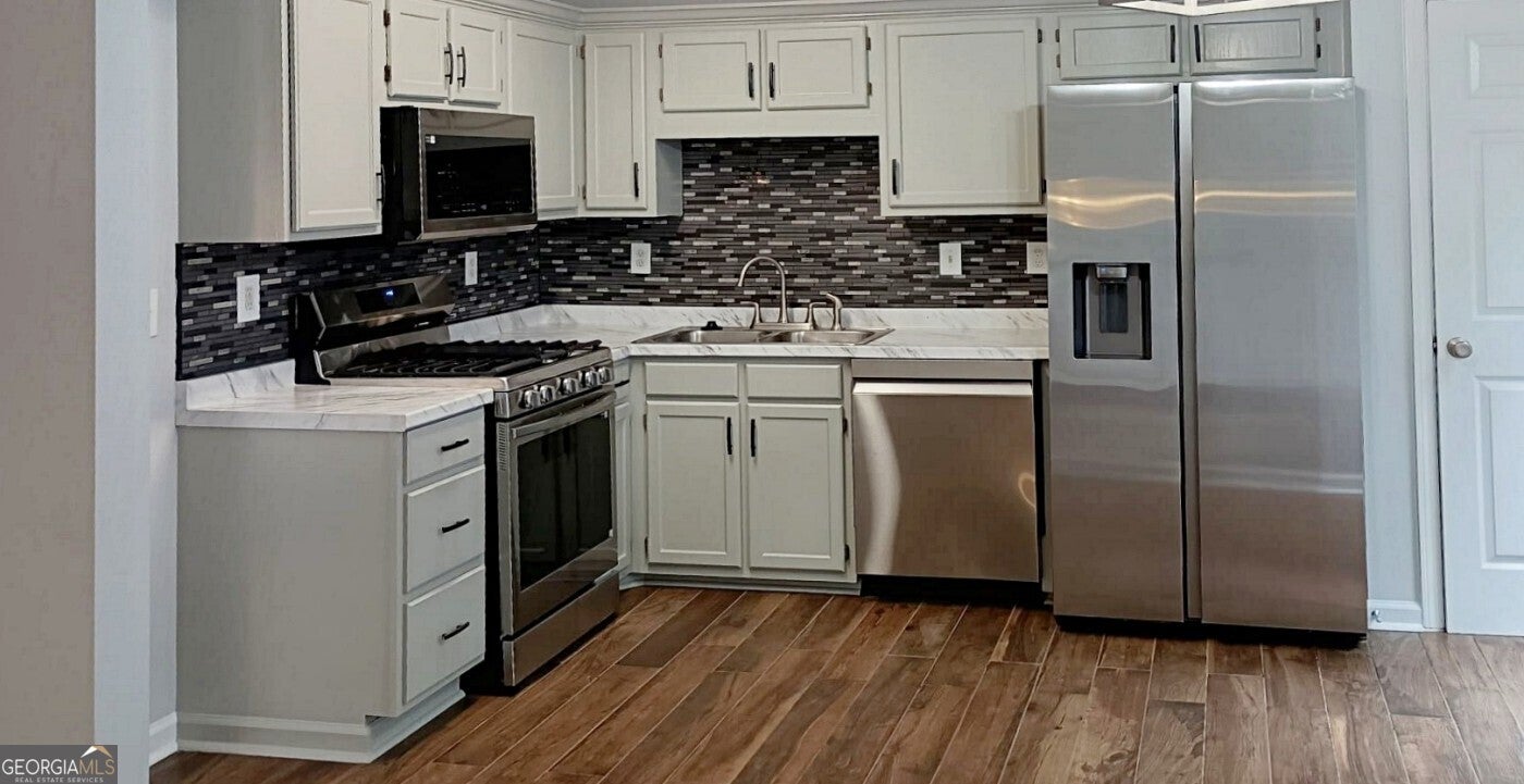 Welcome to 397 Lovejoy Circle in Powder Springs, Georgia! This beautifully renovated split-level home offers the perfect blend of modern updates and everyday comfort. Featuring 3 Bedrooms + Bonus Room and 2.5 Bathrooms, this home has been thoughtfully updated from top to bottom. Step inside to discover wood-style flooring throughout, giving the home a clean, cohesive look. The interior and exterior have been freshly painted, creating a bright and inviting atmosphere. The kitchen shines with all-new stainless steel appliances, a modern tile backsplash, and plenty of cabinet space, making it ideal for both cooking and entertaining. The spacious living room flows seamlessly into the kitchen and dining area, perfect for everyday living. Downstairs, you'll find a versatile bonus room with its own full bathroom, ideal as a recreation space, home office, media room, or guest suite. All bathrooms have been fully updated with modern tile finishes, and the renovated back deck is the perfect spot to relax and enjoy views of the peaceful backyard and surrounding nature. Additional highlights include a 2-car garage for ample storage and parking, and a location in a welcoming community close to schools, shopping, and major interstates. Don't miss your opportunity to make this move-in ready home yours. Schedule your showing today!
