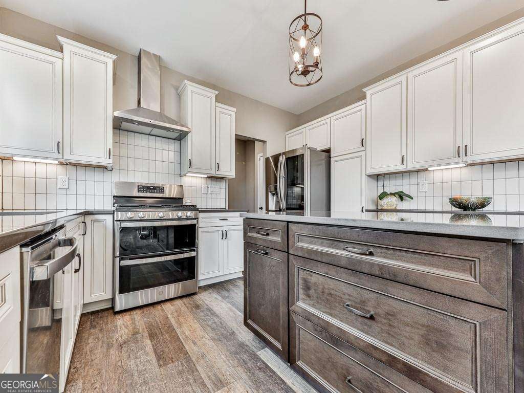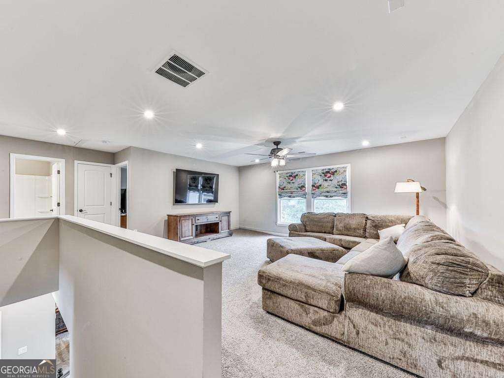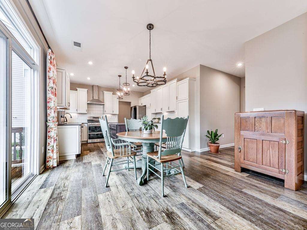 Welcome to this stunning 2022 build in the highly sought-after Great Sky subdivision. This 5-bedroom, 3.5-bath traditional-style home, with slightly over 4000 sq ft, perfectly blends timeless design with thoughtful upgrades, offering a truly elevated living experience. Step inside to an inviting, open-concept floor plan featuring a upgraded kitchen with extended custom cabinetry and drawers, quartz countertops, and abundant storage. The interior showcases premium LVP flooring, upgraded lighting and ceiling fans, and custom closets in the primary suite, main level guest room, and linen closet-bringing both beauty and functionality to the space. Additional highlights include tinted picture windows on both levels for added comfort and protection, a central vacuum system on all three floors, CAT6 ethernet wiring, and pre-wiring for surround sound in the loft and basement. The finished terrace level features a half bath, a large storage room, and flexible living space perfect for entertaining, a home gym, or a media room. Step outside to a welcoming deck that creates the perfect open-air gathering space-ideal for outdoor dining, morning coffee, or relaxing with friends and family. The private, wooded backyard and meticulously maintained landscaping add to the home's peaceful charm. Located just 3 miles from Downtown Canton and The Mill, this home is nestled in a premier community offering resort-style amenities including multiple pools, walking trails, pickleball and basketball courts, playgrounds, a clubhouse, and a dedicated lifestyle director with monthly activities for all ages. This home combines modern upgrades, classic design, and an unbeatable location-delivering the perfect balance of luxury and everyday comfort.