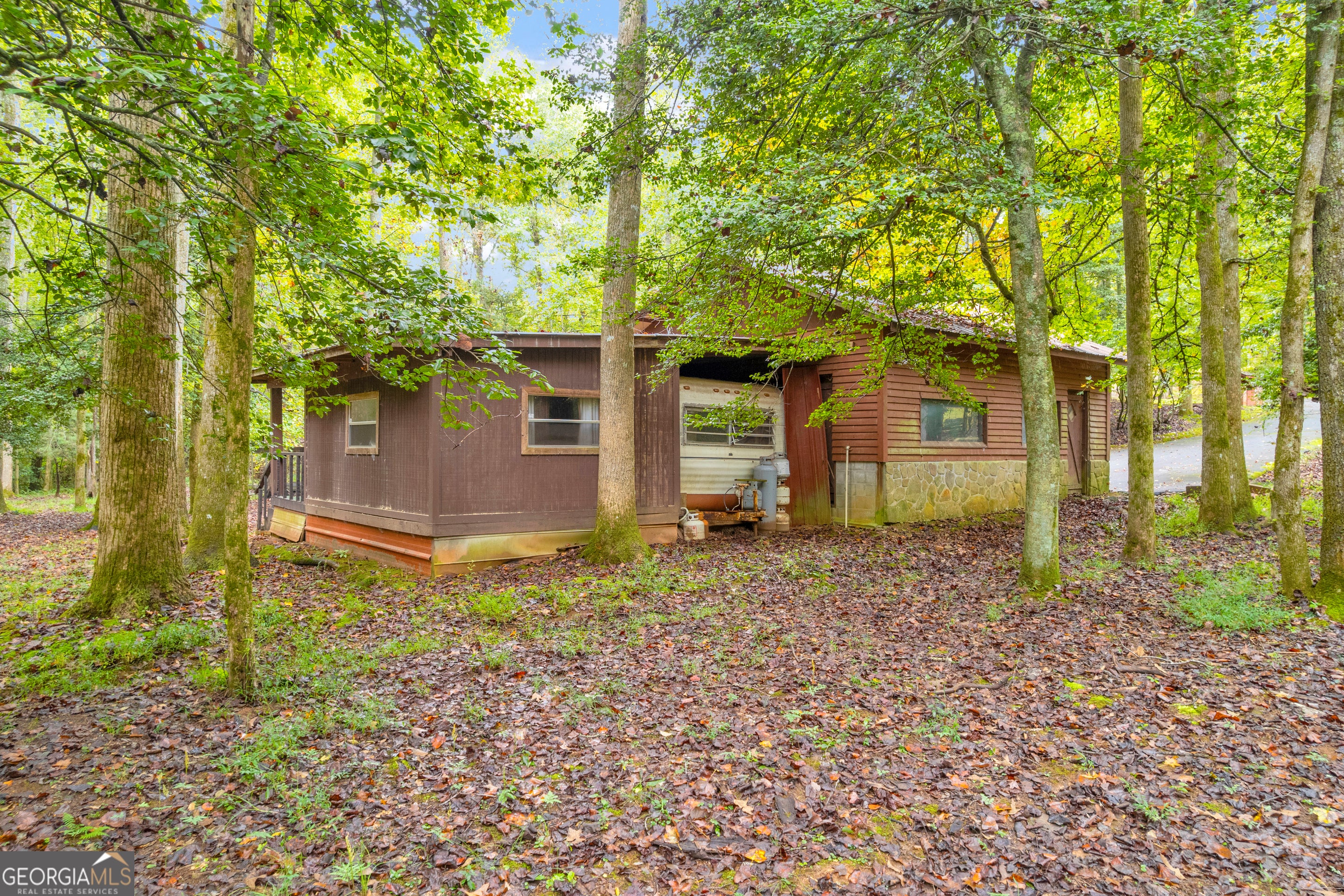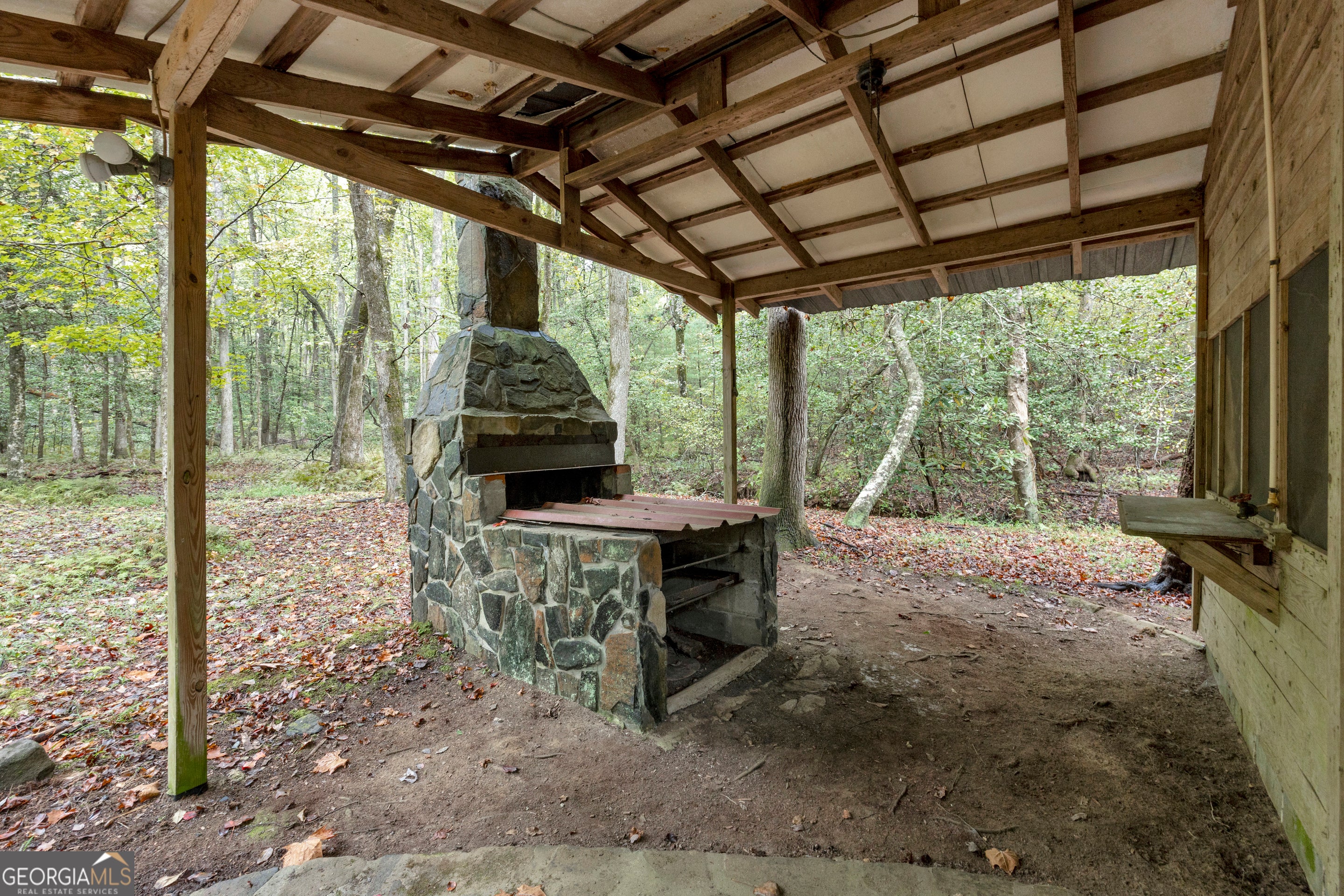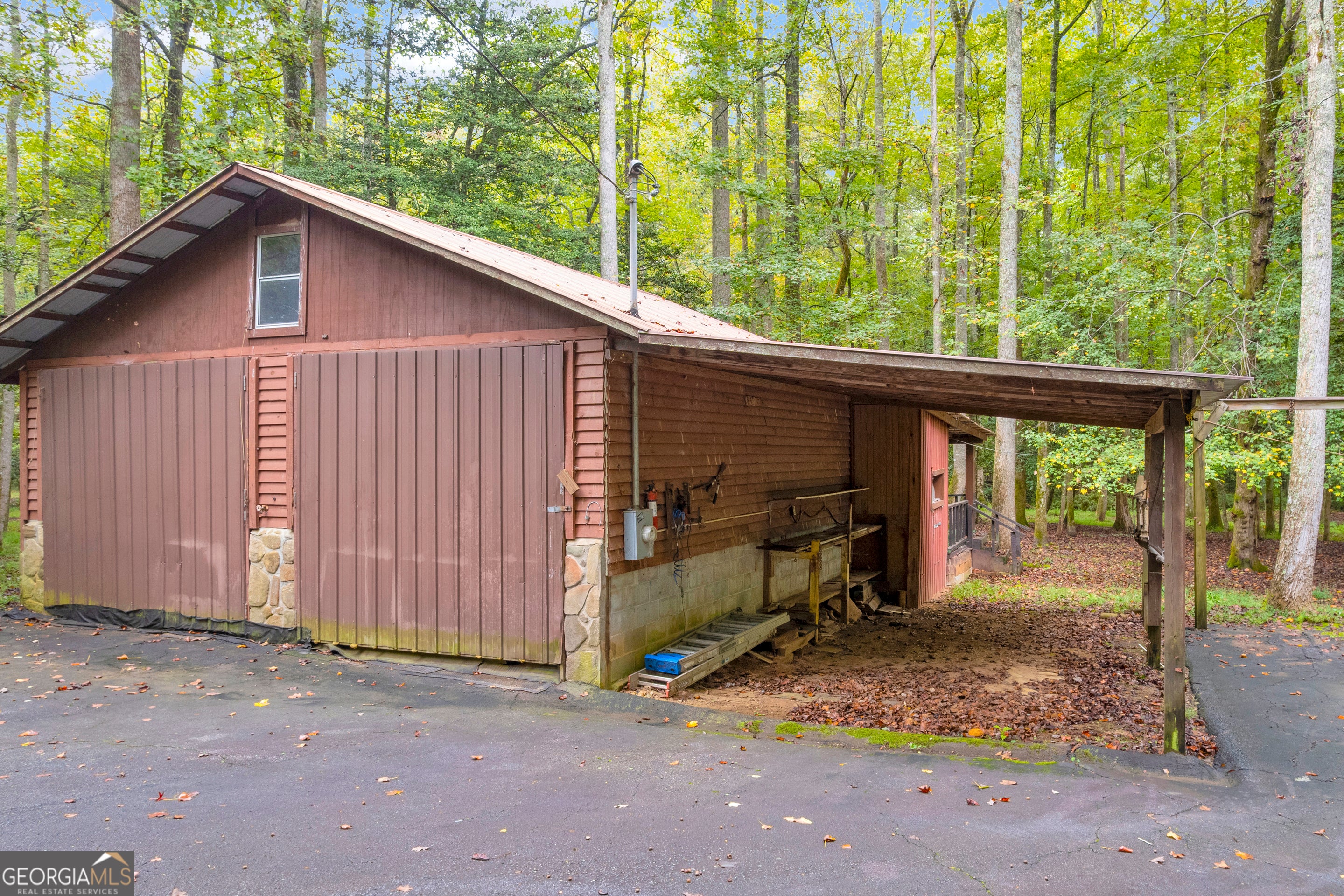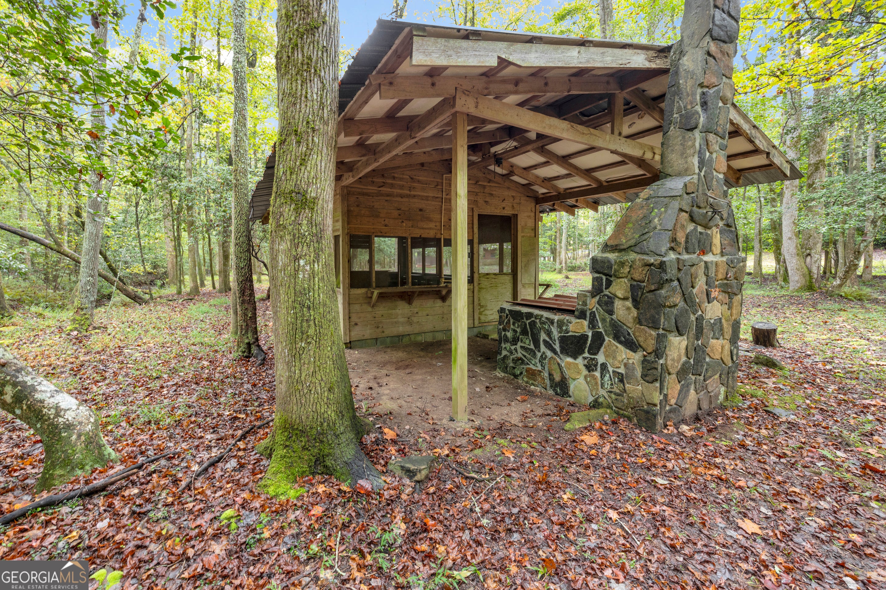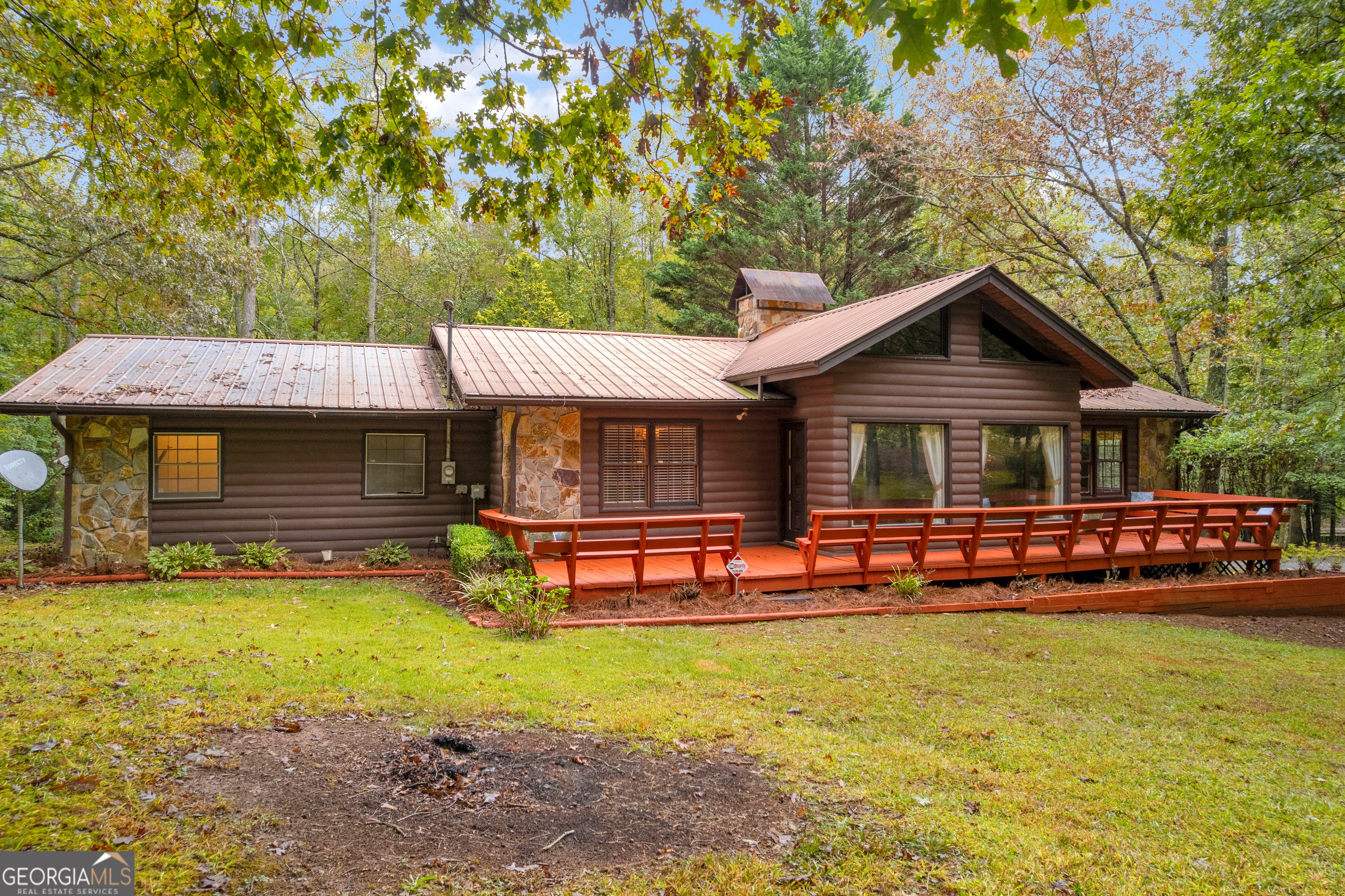CREEKFRONT Cabin on 3.99 Acres! The perfect blend of privacy, charm, and mountain living! This one-level, log-sided cabin with a metal roof offers an inviting retreat whether you're looking for a full-time home or a weekend getaway. The setting is truly special-a beautiful, wooded lot with easy access to the playful creek, where you'll find a fun "party porch" right at the water's edge, ideal for relaxing or entertaining with friends. Inside, the four-sided stone fireplace serves as the stunning focal point of the spacious living and dining area, accented by exposed wood beams and warm wood floors. The kitchen features tasteful finishes, and there's also a large separate family room providing plenty of space for gatherings. Outside, you'll love the oversized 3+ car carport, which can easily double as an additional covered entertaining space. The detached garage/workshop offers extra storage and room for hobbies, plus there's a tool shed and additional carport for even more convenience. This property includes two adjoining lots-keep both for added privacy, or build another cabin, sell one, or even gift a lot to family. A rare find-creekfront living, privacy, and versatility all in one beautiful mountain property!