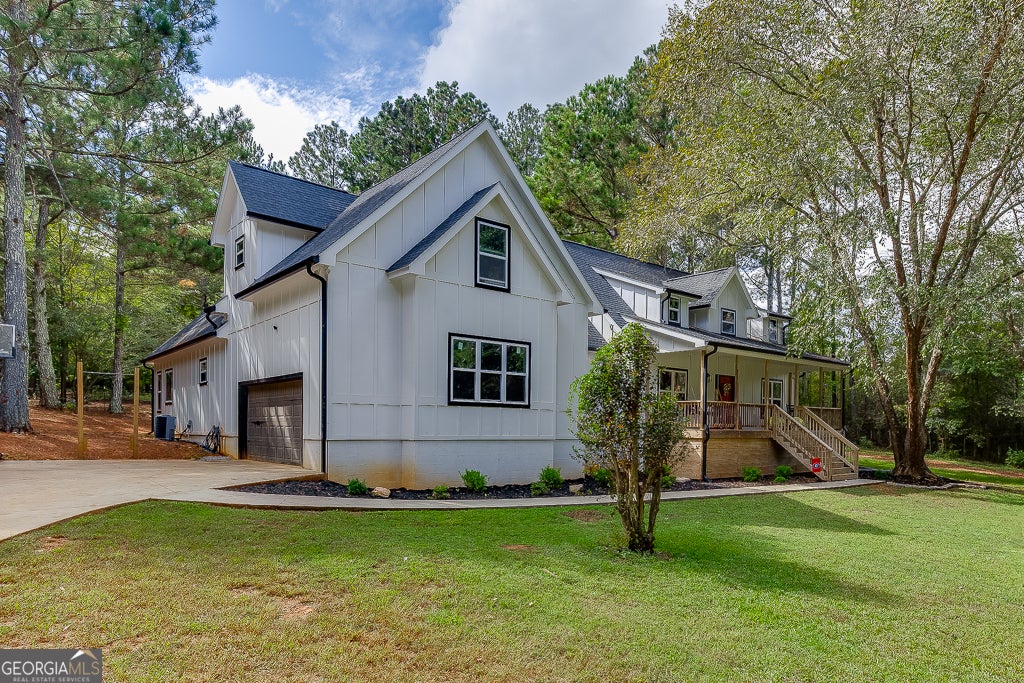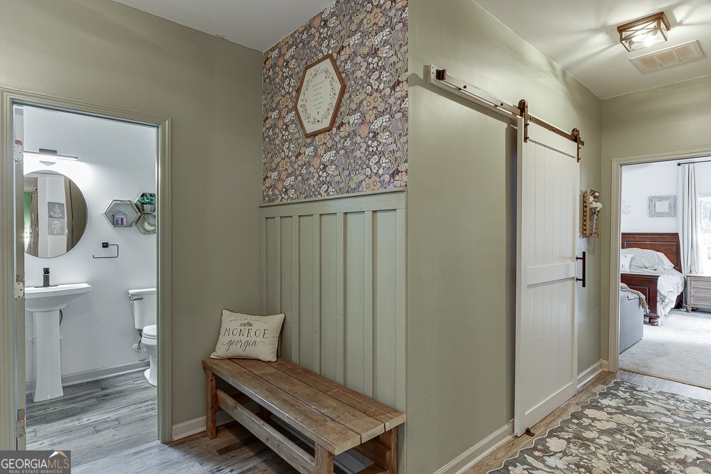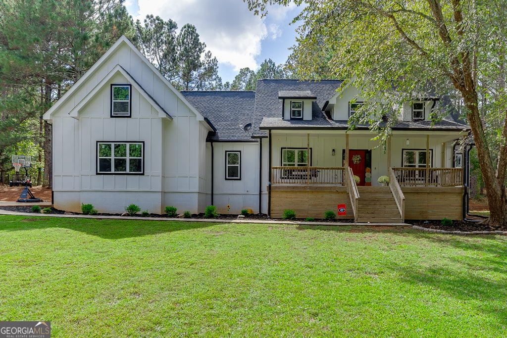 Welcome Home! This stunning 4-bedroom, 2.5-bath residence was built in 2021 and sits on 5 acres of private, peaceful land with a paved driveway and gated entrance. Also noting, fully fenced in 2-acre pasture! Enjoy a tranquil, off-the-beaten-path lifestyle while still being conveniently close to downtown Monroe. The fenced property includes a 2-acre pasture, chicken coops, and a large two-story red barn with stair access to the upper level-perfect for storage, workshop space, or future customization. (Note: the barn does not currently have power.) This setup is ideal for anyone seeking a mini-farm or hobby homestead. Relax on the inviting covered front porch or the spacious covered back porch, featuring double French doors that open into the home. Additional exterior highlights include a wide parking pad with commercial-grade concrete and plenty of room for guests. Step inside to an open-concept layout with 9-foot ceilings and hard-surface flooring throughout. The bright family room overlooks the eat-in kitchen, which boasts granite countertops, a farmhouse-style undermount sink, stainless steel appliances, tile backsplash, built-in microwave, and soft-close cabinetry. The oversized two-car garage (with 16+ foot ceilings, perfect for floor to ceiling storage cabinetry and overhead ceiling storage racks) leads into a custom-built mudroom. The owner's suite offers luxury and comfort with a fully renovated ensuite bathroom featuring a double walk-in tiled shower, standalone soaking tub, private water closet, dual vanities, and linen storage. The spacious walk-in closet provides direct access to the laundry room for ultimate convenience. The laundry room includes a soaking sink, folding station, and extra storage with space for future expansion. Secondary bedrooms are generously sized with ample closets and share a full bath on the main level. Upstairs, you'll find the fourth bedroom and an additional office area, along with two attic storage accesses and a charming barn-door closet. This exceptional property blends modern comfort with country living-ready for you to call it home! ****PLEASE READ PRIVATE REMARKS BEFORE SHOWING!****