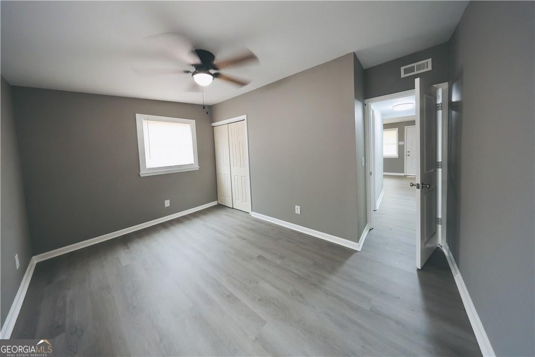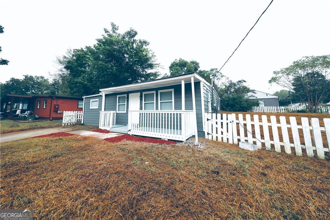 Charming ranch-style home with great curb appeal! This property features a classic white picket fence and a spacious, flat backyard perfect for outdoor activities. The home's interior offers a neutral color palette, making it a blank canvas for your design ideas. The bedrooms are comfortably sized with grey carpeting and a closet space with an open-style wardrobe. The bathroom has been updated with a modern white vanity and a standalone shower enclosure. This is an excellent opportunity for first-time homebuyers or investors looking for a property with potential. Don't miss out!"