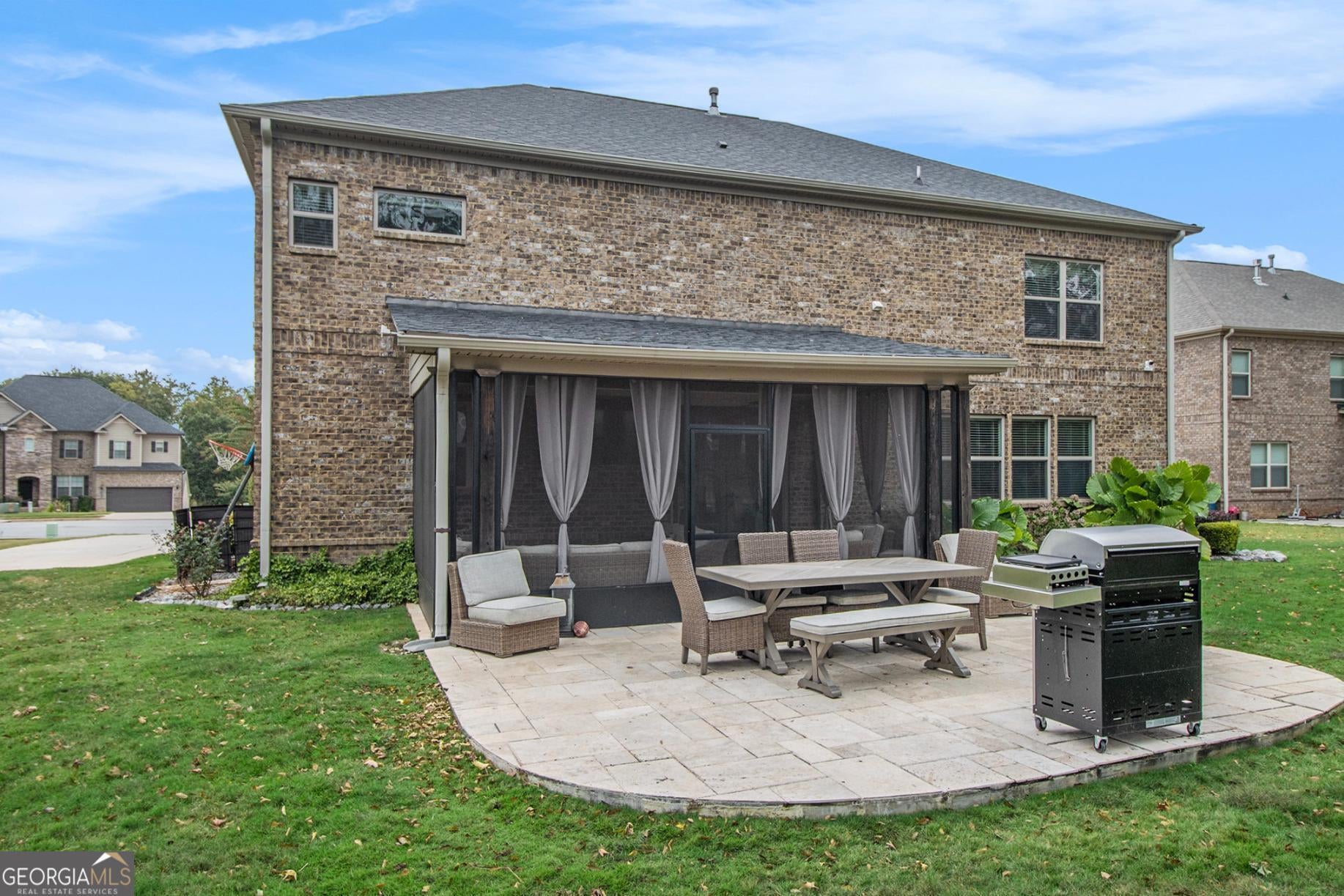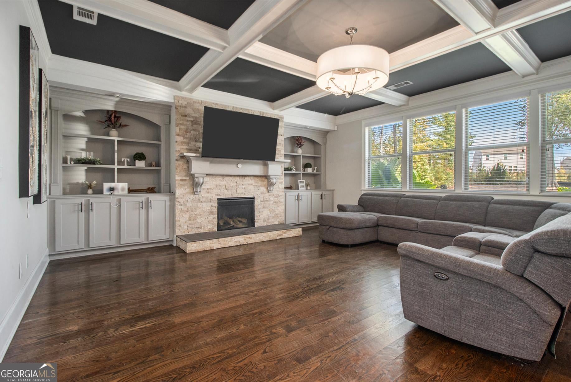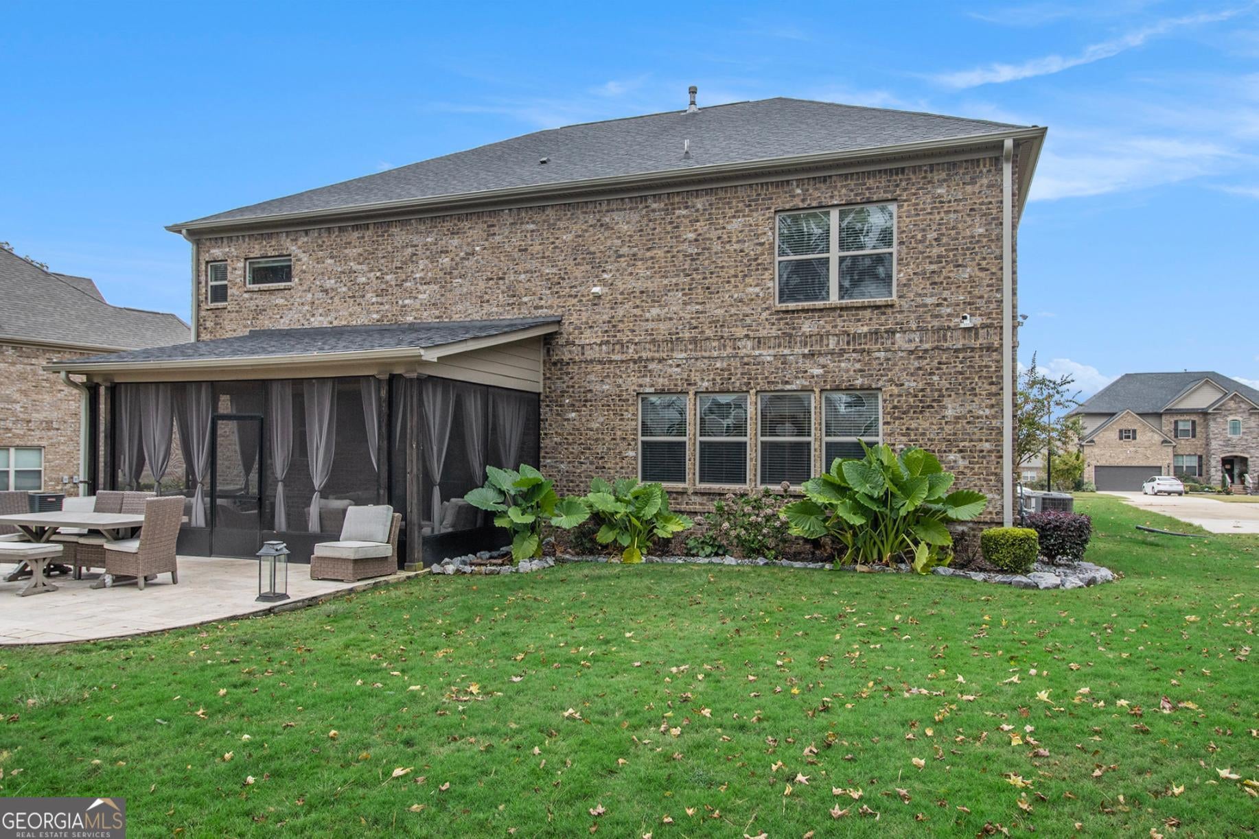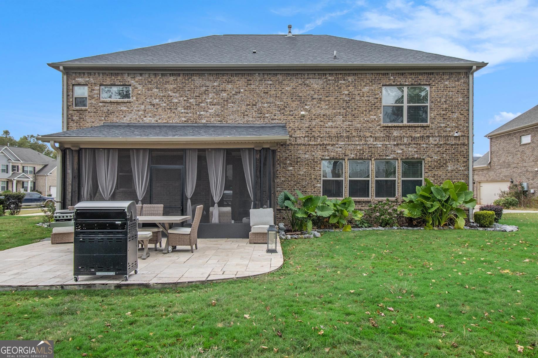 From the moment you step into the grand two-story foyer, there's a feeling-one of warmth, welcome, and quiet elegance. To your right, a room filled with laughter and conversation awaits-a flex space that the current owners lovingly use for intimate chats over tea. Its coffered ceilings whisper of timeless craftsmanship, while across the hall, a guest suite with a private bath offers comfort and privacy for loved ones. As you move toward the heart of the home, the energy shifts. The family room, with its own coffered ceiling and gas starter fireplace, invites you to unwind, while the open flow into the chef-inspired kitchen makes every gathering effortless. Gleaming granite countertops, dual ovens, and a walk-in pantry make cooking feel less like a chore and more like an experience. Every stainless steel appliance shines under the soft light that fills the room, and the breakfast bar and island become the natural gathering place for morning coffee or late-night snacks. Step through the glass doors to discover the showstopper-an upgraded screened-in porch featuring travertine tile flooring, seamlessly extending to the outdoor patio. The level backyard is perfect for entertaining or letting pets roam free, framed by peace and privacy. Upstairs, the details continue to tell a story of intentional design. A modern wainscoted staircase wall adds character, while hardwood floors lead to four spacious bedrooms, each with walk-in closets. One bedroom has its own private ensuite, and two share a Jack-and-Jill bath, offering space and comfort for everyone. Then, there's the primary owner's suite-a sanctuary of luxury and light. Oversized, with its own sitting area, gas fireplace, and built-in office nook, it's where productivity meets peace. The spa-like bath boasts dual vanities, a large shower, and a garden tub that promises relaxation at the end of each day. The custom walk-in closet connects directly to the laundry room-a thoughtful touch that feels like it was designed just for you. With over 4,000 square feet of carefully crafted living space, every corner of this home offers something special. Nestled near schools and convenient shopping, it's a rare blend of luxury, comfort, and affordability-and it's ready for its next story. Because this isn't just a house-it's the home where your life unfolds.