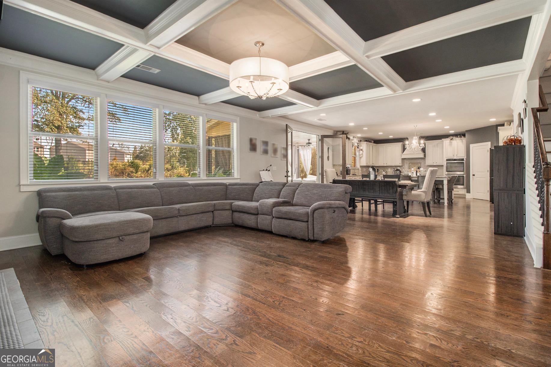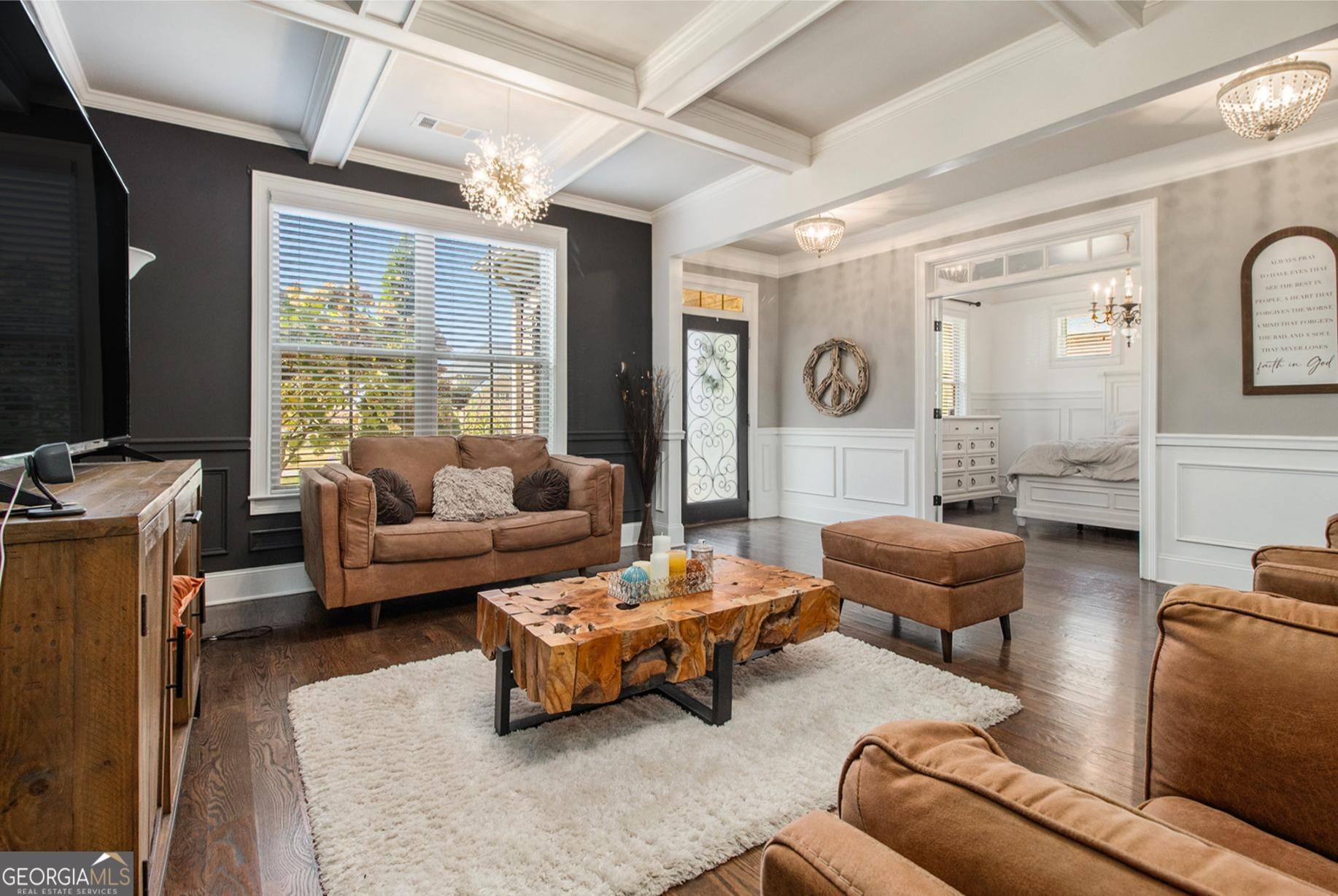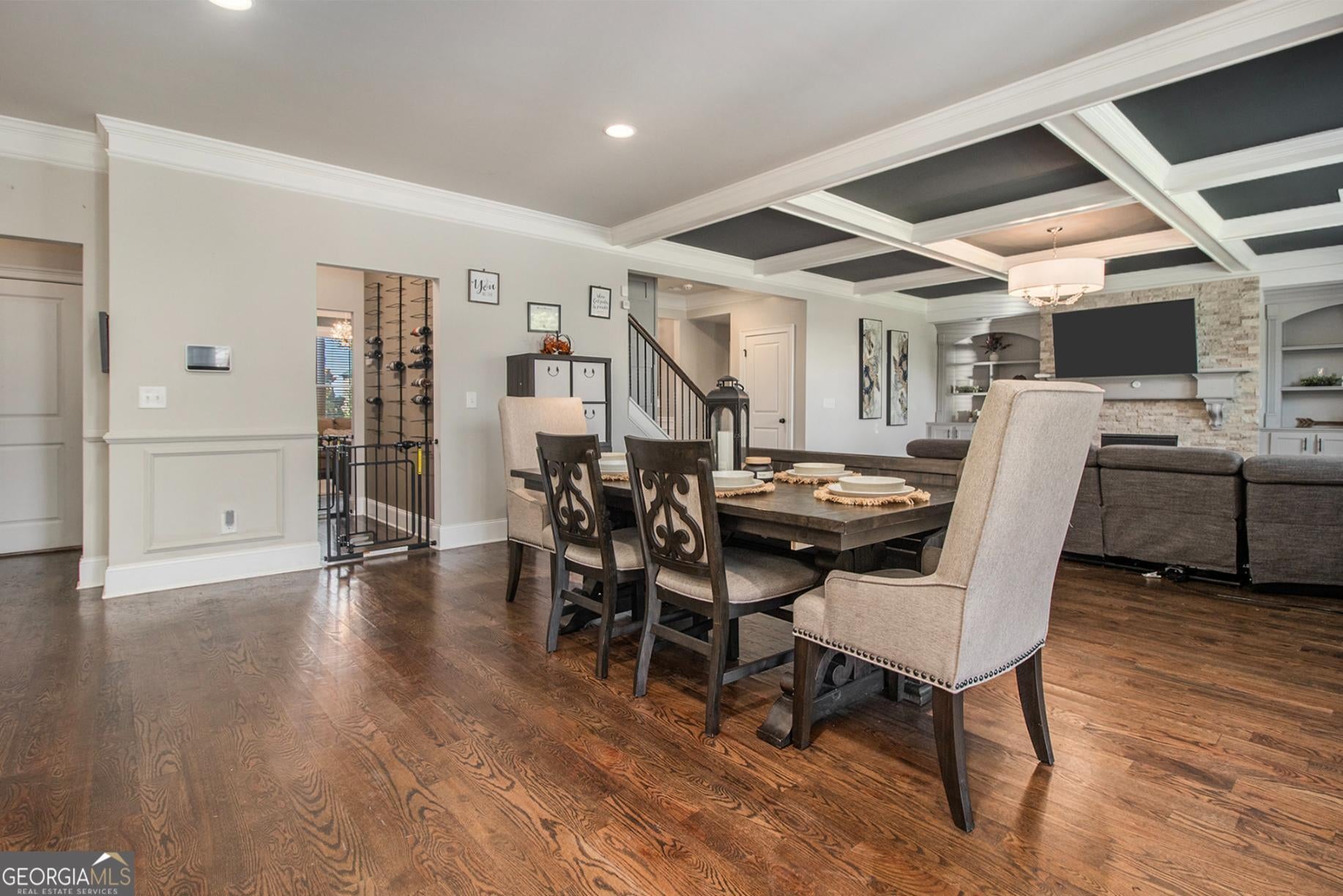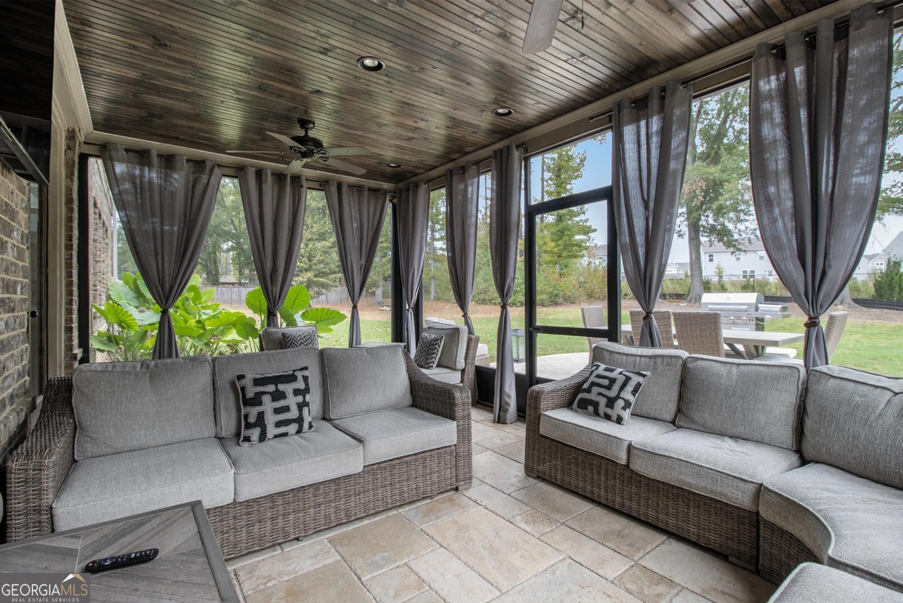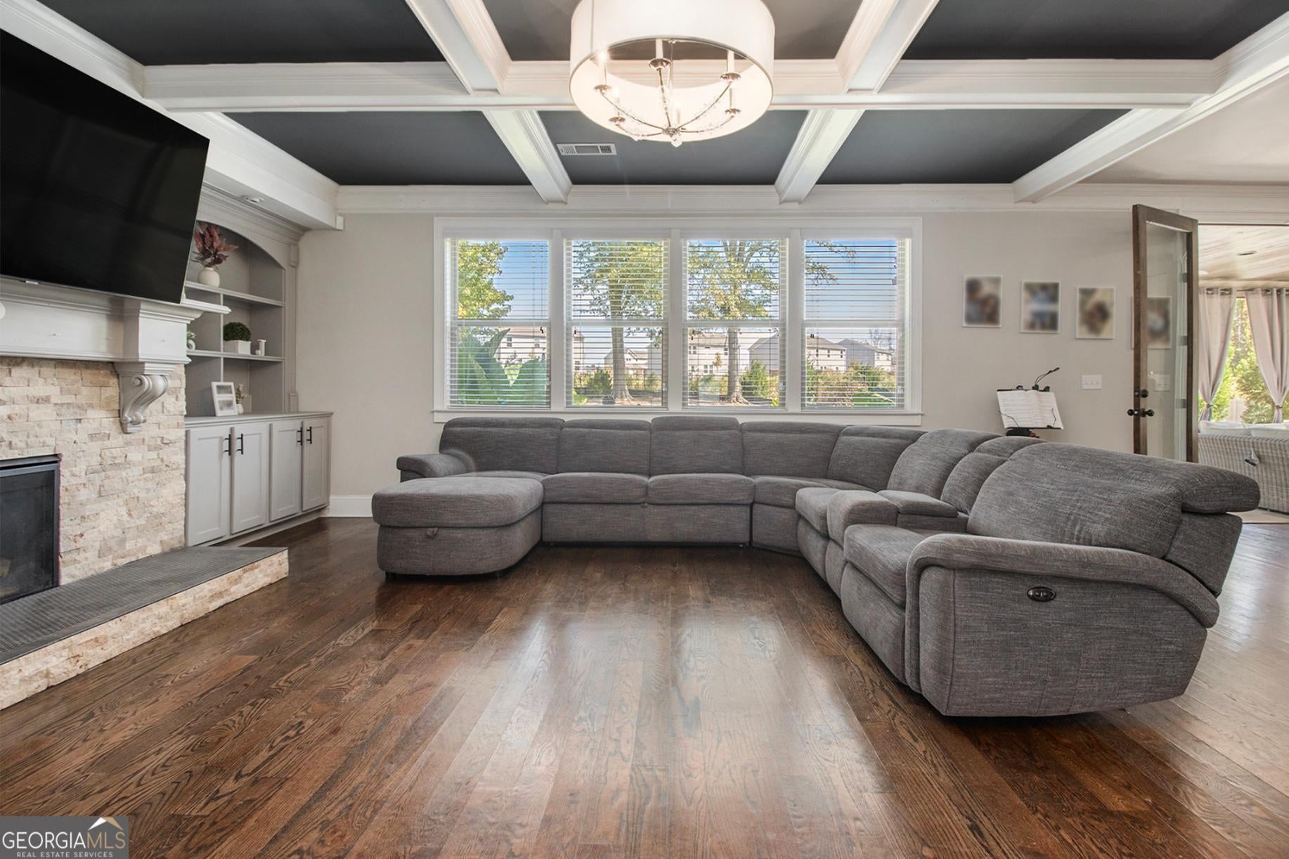 From the moment you step into the grand two-story foyer, there's a feeling-one of warmth, welcome, and quiet elegance. To your right, a room filled with laughter and conversation awaits-a flex space that the current owners lovingly use for intimate chats over tea. Its coffered ceilings whisper of timeless craftsmanship, while across the hall, a guest suite with a private bath offers comfort and privacy for loved ones. As you move toward the heart of the home, the energy shifts. The family room, with its own coffered ceiling and gas starter fireplace, invites you to unwind, while the open flow into the chef-inspired kitchen makes every gathering effortless. Gleaming granite countertops, dual ovens, and a walk-in pantry make cooking feel less like a chore and more like an experience. Every stainless steel appliance shines under the soft light that fills the room, and the breakfast bar and island become the natural gathering place for morning coffee or late-night snacks. Step through the glass doors to discover the showstopper-an upgraded screened-in porch featuring travertine tile flooring, seamlessly extending to the outdoor patio. The level backyard is perfect for entertaining or letting pets roam free, framed by peace and privacy. Upstairs, the details continue to tell a story of intentional design. A modern wainscoted staircase wall adds character, while hardwood floors lead to four spacious bedrooms, each with walk-in closets. One bedroom has its own private ensuite, and two share a Jack-and-Jill bath, offering space and comfort for everyone. Then, there's the primary owner's suite-a sanctuary of luxury and light. Oversized, with its own sitting area, gas fireplace, and built-in office nook, it's where productivity meets peace. The spa-like bath boasts dual vanities, a large shower, and a garden tub that promises relaxation at the end of each day. The custom walk-in closet connects directly to the laundry room-a thoughtful touch that feels like it was designed just for you. With over 4,000 square feet of carefully crafted living space, every corner of this home offers something special. Nestled near schools and convenient shopping, it's a rare blend of luxury, comfort, and affordability-and it's ready for its next story. Because this isn't just a house-it's the home where your life unfolds.