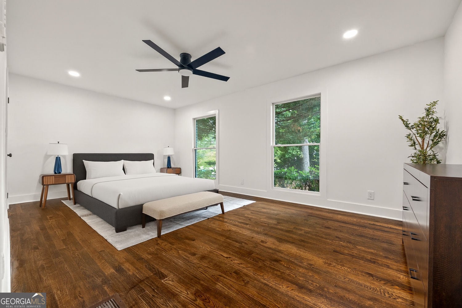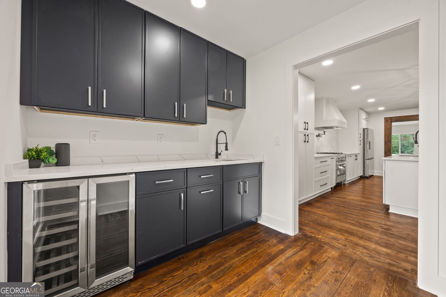 Welcome to a true masterpiece of modern luxury nestled in sought-after Henderson Hills. This home is completely renovated with 5-bedroom, 4.5-baths, master on main, finished daylight basement, and fenced in backyard. Step inside to discover luxury hardwood flooring on the main and upper levels. The show-stopping gourmet kitchen features custom soft-close cabinetry, quartz countertops, designer backsplash, a large center island, and chef-grade stainless appliances. Just off the kitchen, is a custom butler's pantry with wine fridge and wet bar. The main-level owner's suite offers a private retreat with spa-inspired finishes including a frameless glass shower, dual vanities, and a dedicated private laundry room. Upstairs, you'll find three spacious bedrooms and a second laundry area. The finished daylight basement provides versatile space for a gym, home office, theater room, or in-law suite. Highlighted by a gorgeous step-down sunroom that seamlessly connects to the main living area, this home is both inviting and stylish. Outside, enjoy a new roof, new exterior paint, black gutters, and modern lighting. The fully fenced backyard and updated two-car garage with electric vehicle charger. Updated systems including a new HVAC, water heater, ductwork, and electrical panel provide peace of mind for years to come. This one checks every box truly move-in ready in one of Metro Atlanta's most desirable communities.