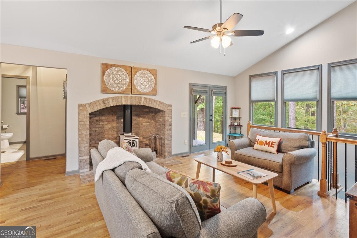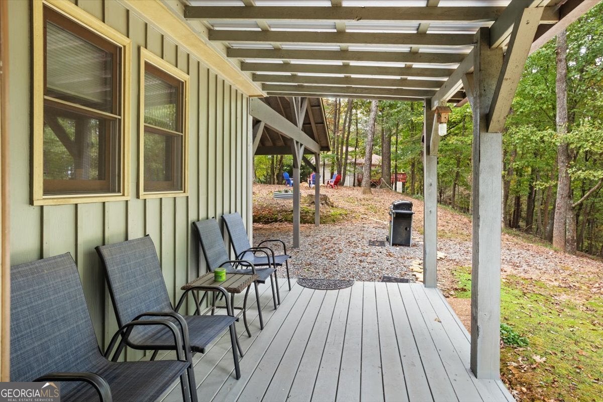 Beautiful modern farmhouse cottage with seasonal mountain views in Coosawattee River Resort awaits you. Turnkey, FULLY FURNISHED, and full of charm - this beautifully appointed modern farmhouse cottage offers the perfect blend of rustic elegance and mountain retreat vibes. Whether you're looking for a full-time home, weekend getaway, or income-producing vacation rental, this 2-bedroom, 2.5-bath home delivers. Set on just under an acre in the highly desirable Coosawattee River Resort, you'll enjoy seasonal mountain views, privacy, and resort-style amenities - all just minutes from the main gate for easy access. Step inside to soaring vaulted ceilings, hardwood floors throughout, and a cozy yet open layout that invites you to relax and stay awhile. The main level features a welcoming family room with an antique wood-burning stove capable of heating the entire home - a truly special centerpiece with character and function. The kitchen is a modern rustic dream, complete with stained cabinetry, stainless steel appliances, and a beautiful tile backsplash. Just off the kitchen, a bonus room (currently used as a dining room) adds extra flexibility for your needs. The primary suite on the main floor includes a private ensuite with granite countertops and a gorgeous oversized tiled shower. A convenient half bath is also located on the main level for guests. Downstairs, you'll find a second living area with a pool table, Cindy Crawford sectional, a spacious second bedroom, and another full bath with granite finishes. There's even a designated owner's closet for secure storage - perfect for Airbnb or part-time use. Outside, enjoy covered patios, a large private yard, and a firepit area ideal for starry nights and mountain air. A 2-car covered carport, additional parking pad, and low-maintenance landscaping complete the picture. As a part of the Coosawattee River Resort, you'll have access to multiple pools, tennis courts, a fitness center, walking trails, river access, and a full calendar of community activities - all tucked within a secure, gated setting. This is the mountain cottage you've been waiting for - fully furnished, beautifully designed, and ready to enjoy or rent right away.