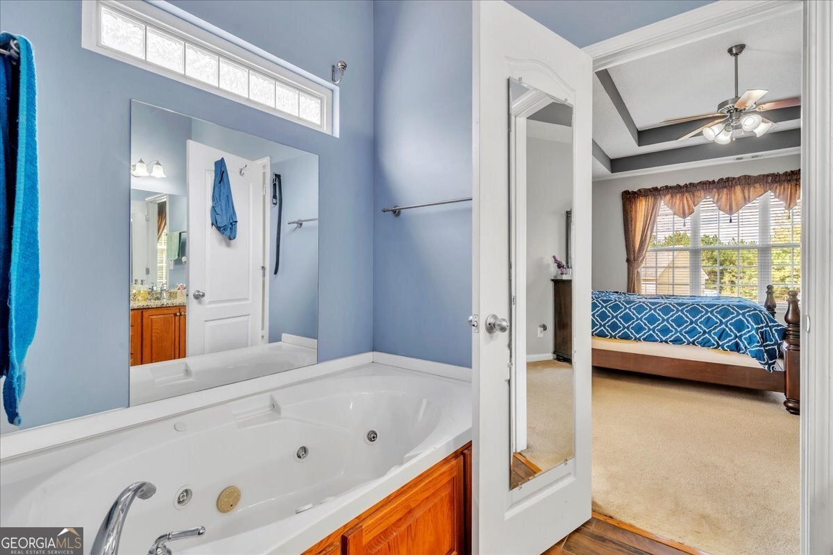 - Interior FeaturesDouble Vanity, High Ceilings, Master On Main Level, Other, Separate Shower, Soaking Tub, Split Bedroom Plan, Tray Ceiling(s), Walk-In Closet(s)