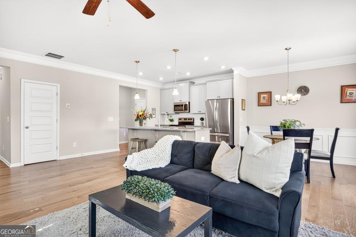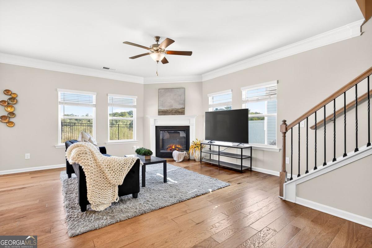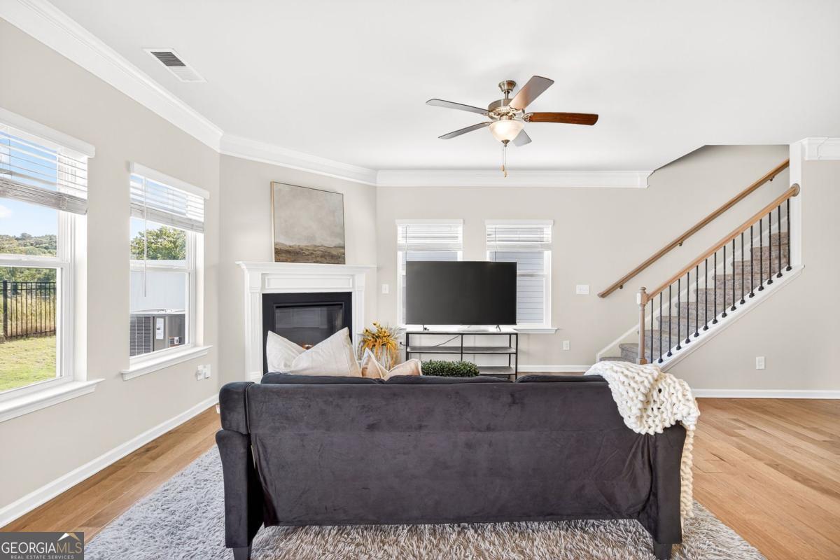 133 Madison Bend- a beautiful townhome in a prime Woodstock location. Welcome to this stunning 5-year-old townhome, perfectly situated just half a mile from Downtown Woodstock, walking distance to the Village Shoppes of East Cherokee, and minutes from local schools and I-575 for an easy commute. Step inside to find an inviting open floor plan featuring 5" hardwood floors, a spacious kitchen with granite countertops, a large island, recessed lighting, and a walk-in pantry. The family room boasts oversized windows, crown molding, and a cozy fireplace, filling the space with natural light. Upstairs, the luxurious master suite includes tray ceilings, a spacious walk-in closet, and a spa-like bathroom with dual vanities, a walk-in shower, and private water closet. Two additional bedrooms share a full bath, and a central upstairs walk-in laundry room adds convenience. Outside, enjoy a level backyard with HOA-maintained landscaping-perfect for low-maintenance living. This home combines modern finishes, an unbeatable location, and move-in ready style. Don't miss your chance to live close to everything Woodstock has to offer!
