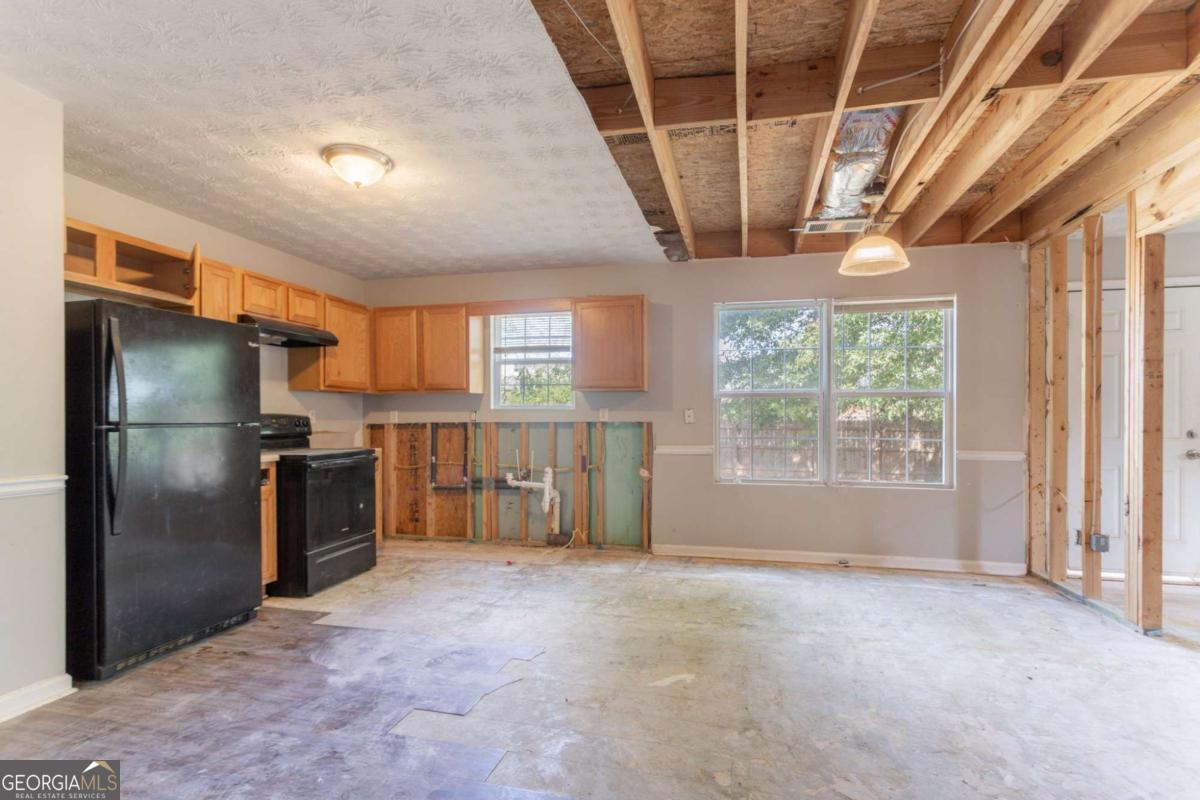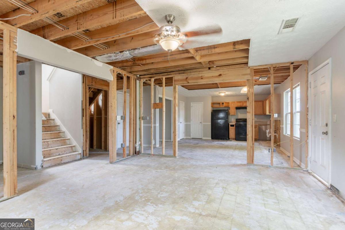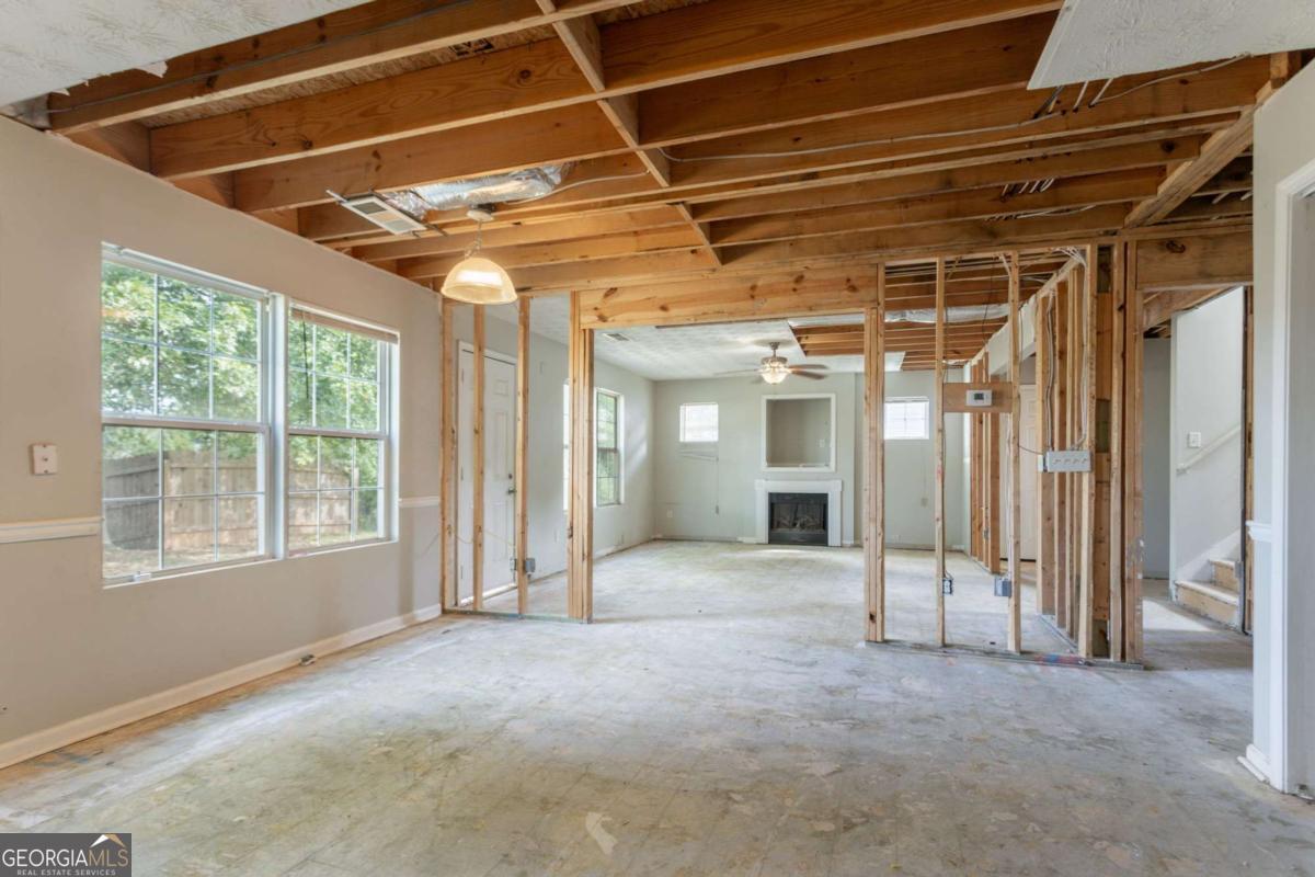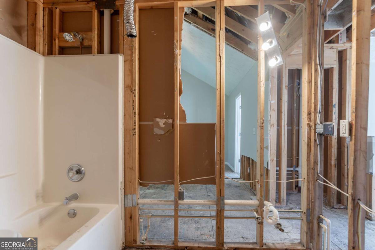 This 2-story home features 3 bedrooms, 2.5 bathrooms, a 2-car garage, and a charming front porch. Inside, you'll find a spacious living room with a cozy fireplace and a primary bathroom with a double vanity, separate tub, and shower. Please note: the home requires significant rehab-flooring has been removed down to the slab, some walls and ceilings are exposed to the wood framing. Toilets are not connected to water supply. This property presents a great opportunity for renovation or investment, offering the chance to fully customize and restore the home to your taste. Schedule your showing today and explore the potential!