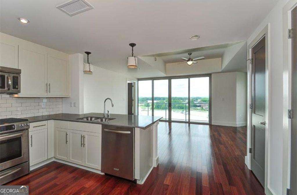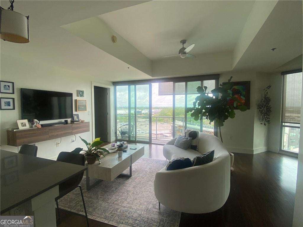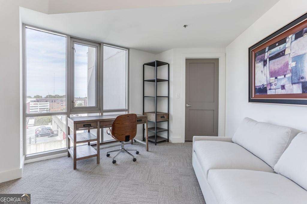 TOP FLOOR UNIT- LENDER INCENTIVE with preferred lender up to $1895 - Experience the best of West Midtown living in this top-floor condo at 1100 Howell Mill Rd NW #917! This rare 2-bedroom, 2-bath residence sits on the penthouse level with no neighbors above and only a few exclusive units on the floor-offering exceptional privacy and a peaceful atmosphere. Step inside to a bright, open-concept living and dining area featuring floor-to-ceiling windows that flood the space with natural light and showcase breathtaking sunset views over the city. The modern kitchen boasts KitchenAid appliances (including a recently upgraded oven), Silestone countertops, subway tile backsplash, and hardwood floors that flow seamlessly through the main living areas. Both bedrooms feature remote-control window shades for convenience and comfort, with cozy carpeting underfoot. Enjoy the view of the pool deck and expansive patio right from your living room-a perfect backdrop for entertaining or relaxing at the end of the day. The building itself has been recently renovated, including updated common areas and a refreshed pool deck, giving it a polished, contemporary feel throughout. Located in one of Atlanta's most sought-after neighborhoods, this residence is within walking distance of West Midtown's premier restaurants, boutique shops, and nightlife. You'll also enjoy easy backroad access to Buckhead, Smyrna, and Vinings, plus close proximity to Georgia Tech-ideal for anyone seeking both convenience and connectivity. Comes with two assigned parking spaces. Originally owned since 2013, this home has been lovingly maintained and is currently tenant-occupied through February 2026, making it an ideal investment opportunity or future personal residence.