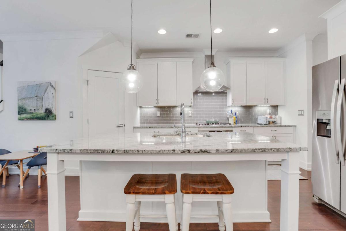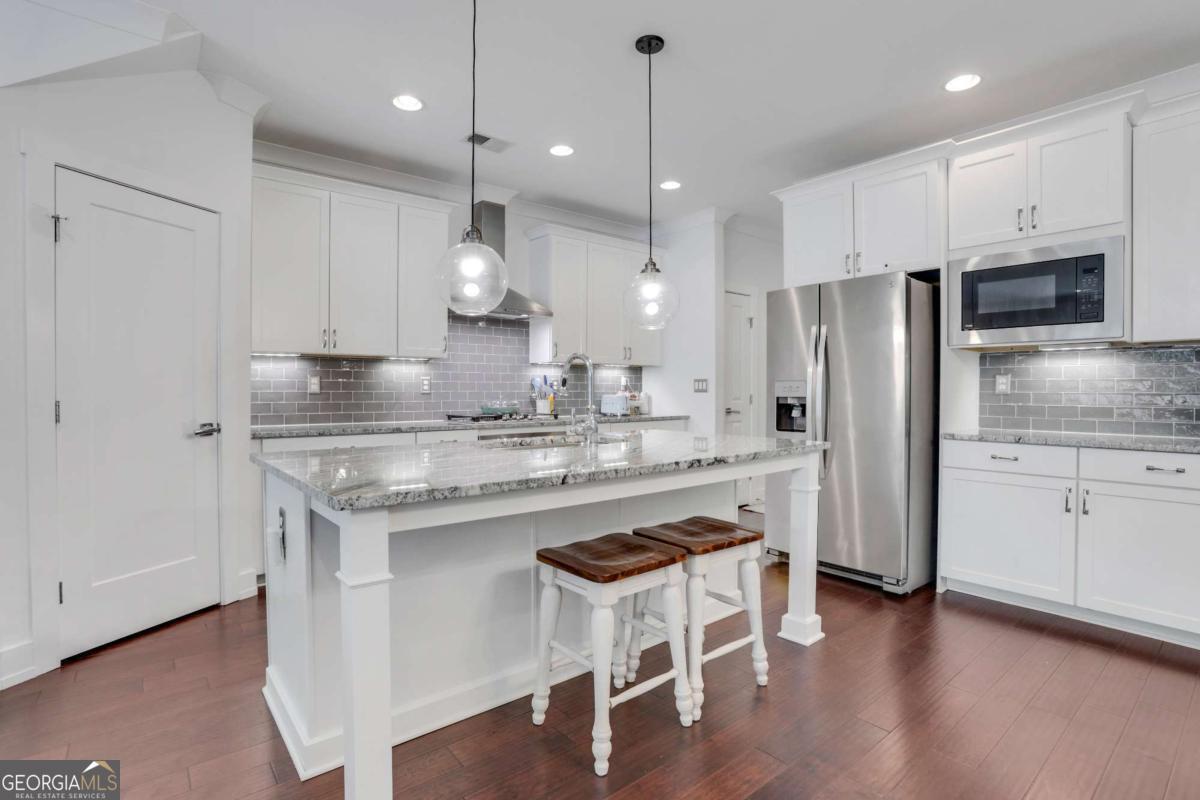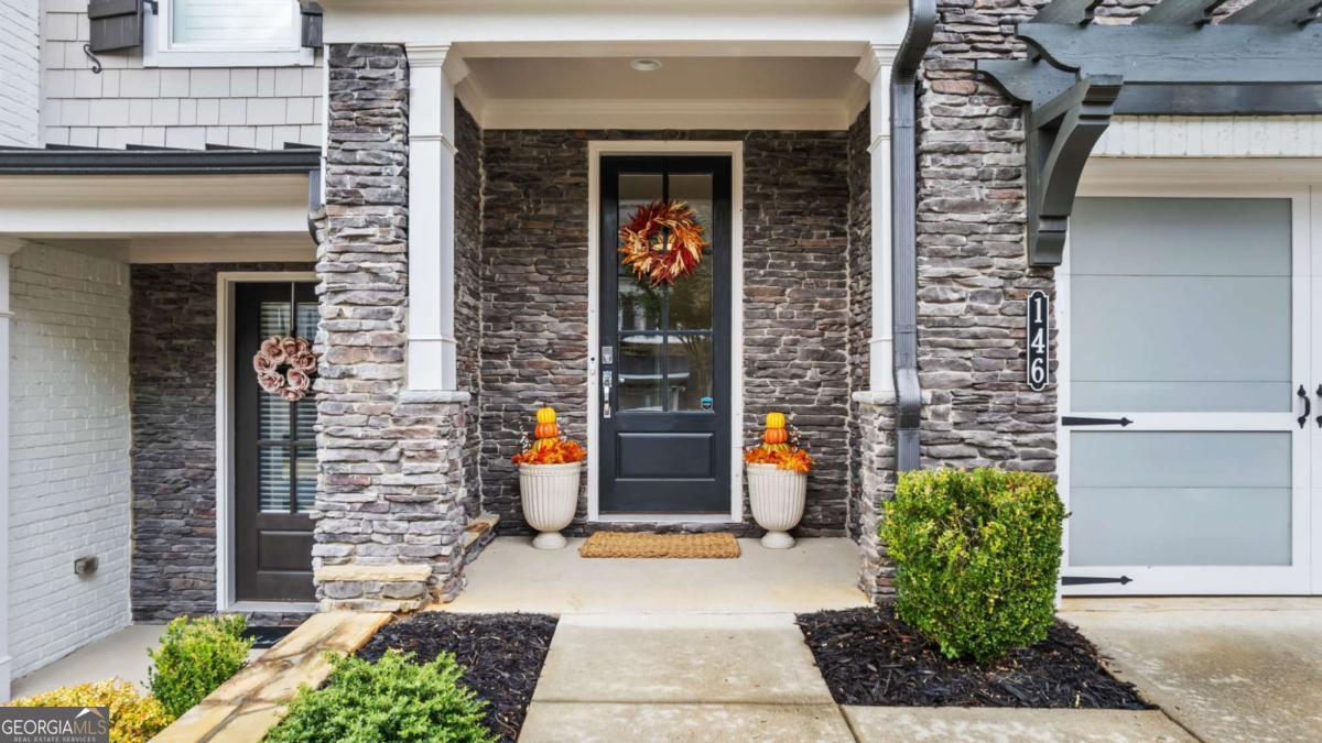 Welcome to your amazing new home in the Bellehaven community where we are now offering $10,000 SELLER PAID CLOSING COSTS towards a 2/1 Rate Buydown to help you enjoy your new home with monthly savings or less money out of pocket upfront. When you close before the end of the year, you will enjoy amazing tax benefits including filing for your homestead tax exemption this year and writing off your closing costs on your 2025 taxes. Call me for more information! This is a significant savings you do not want to miss out on! As you pull into your new home you will love the long driveway for all of your guests. The craftsman style stone exterior with board and batten are stunning. As you enter the home the foyer offers a great entry point and privacy with the hallway that leads to the completely open floor plan. You will love entertaining and relaxing in this great space. The Kitchen includes white cabinetry, Stainless Steel gas cooktop, built-in oven, vent hood, Stainless Steel Refrigerator, microwave, large island with beautiful granite countertops, subway tile backsplash and pendant lights. The open floor plan features a great room with a gas fireplace, built-in cabinetry and wood shelving for the perfect area to decorate. The large 3-panel slider doubles your living space to your private patio area and fenced in backyard. This space is ideal for cookouts, letting the dog out or watching the birds with the private woods behind. The custom finishes inside do not end! The powder bath is perfectly tucked away with new lighting, a new mirror and Serena and Lily wallpaper. The mudroom area as you walk-in from the garage area with hooks and cubbies is a great drop spot as you enter. The 1-car garage is ideal for parking and storage with 2 new hanging racks from the ceiling. The long driveway allows parking for multiple cars. There is more great storage inside with a coat closet and pantry. Upstairs you will find a stunning owner's retreat with windows that enjoy a private wooded view. The owner's retreat also features a barn door to the owner's bath. The owner's shower features tile walls, built-in niches, shower bench, a rain shower head and wall shower head. The soaking tub is oversize and a great place to relax. The owner's bath has been upgraded with quartz countertops, new lights and new mirrors. The walk-in closet is stunning with new Elfa storage drawers and shelves for that custom touch you have been looking for. The laundry room is a dream with built-in upper cabinetry, a hanging space, a center storage cabinet and a long storage cabinet on the side. The two secondary bedrooms are a great size and tucked away nicely on the front of the home. The hall bath upstairs features upgraded tile and quartz countertops. There is even more storage in the attic with pulldown stairs and new flooring recently added. This location and low-maintenance lifestyle with high end finishes is exactly what you have been looking for. Conveniently located off 92 in Woodstock, this amazing community features a dog park, walking trails, grilling area and outdoor clubhouse. Come by 146 Bellehaven Drive to find your new home today